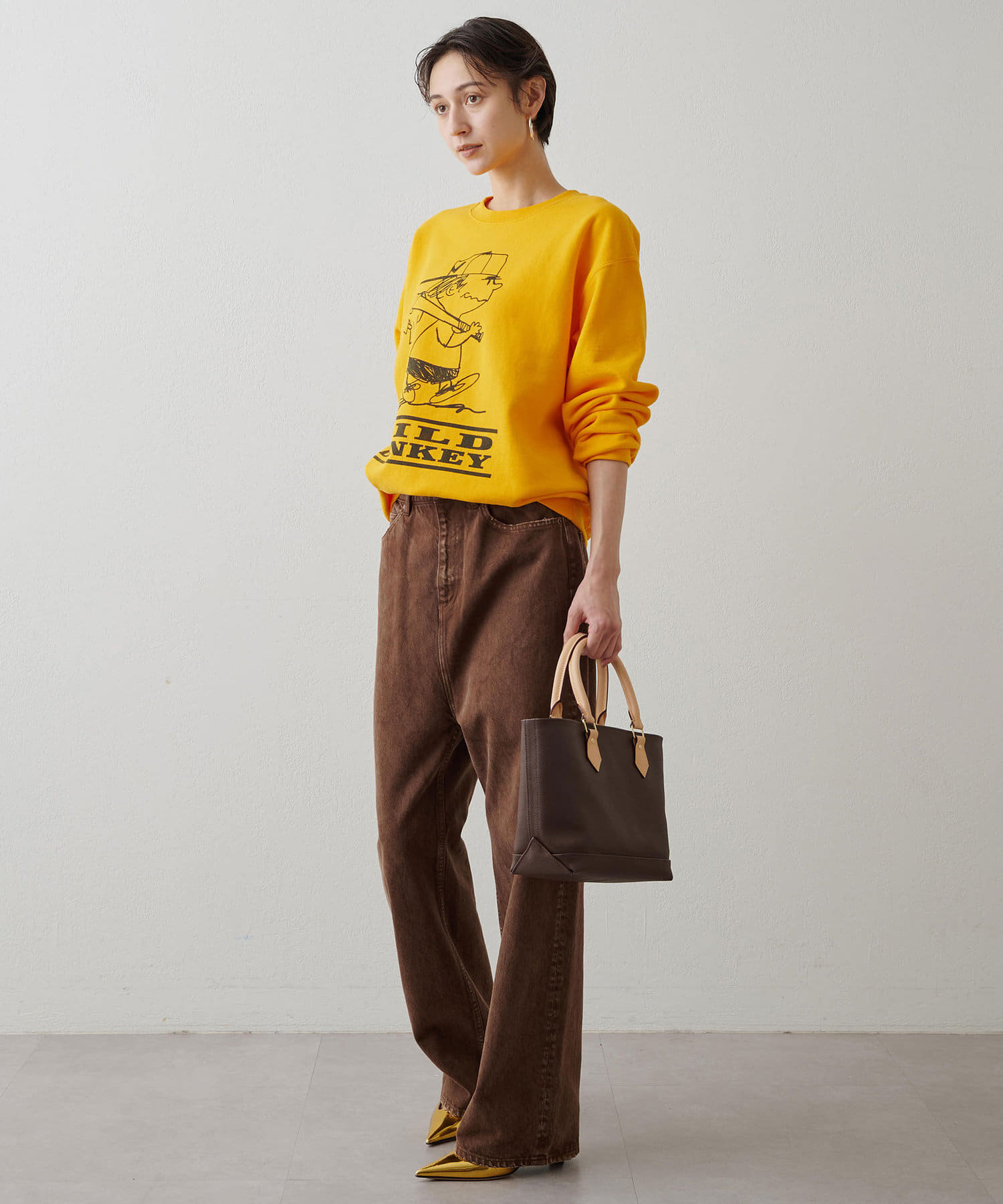 ■ブラウンとインディゴそれぞれ異なる素材を使用し加工の表情を変えたデザイン。