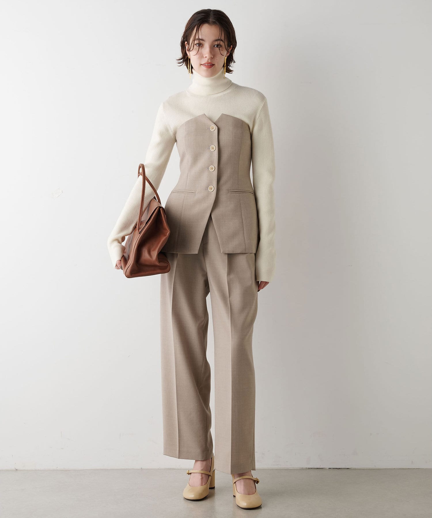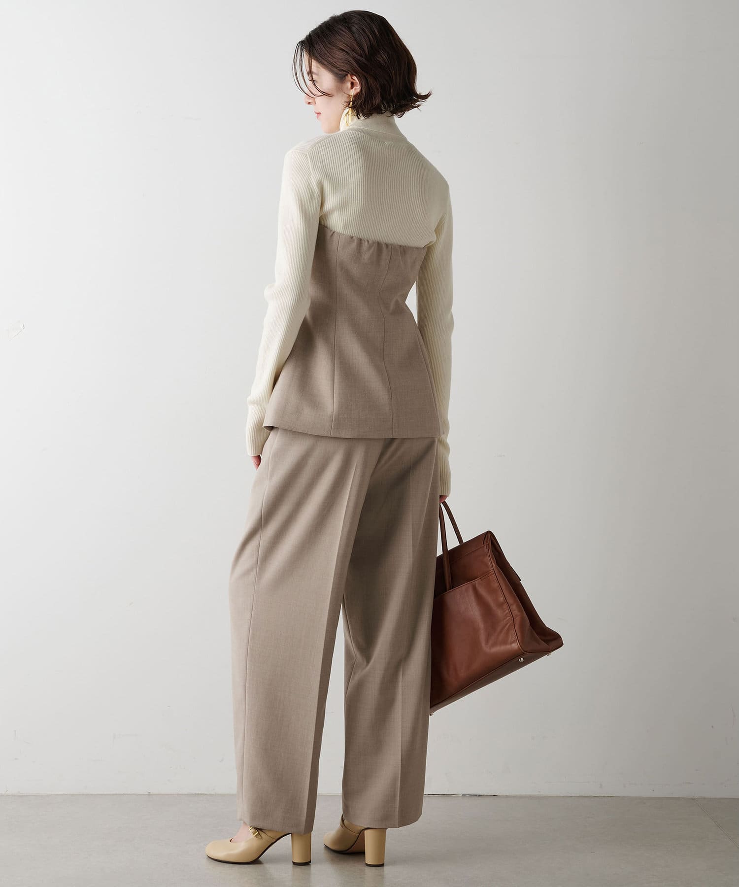 ■同素材の平織りタックパンツ(>>ブランド品番:WGZ1042402A0004)とのセットアップも新しい見え方になりおすすめ。