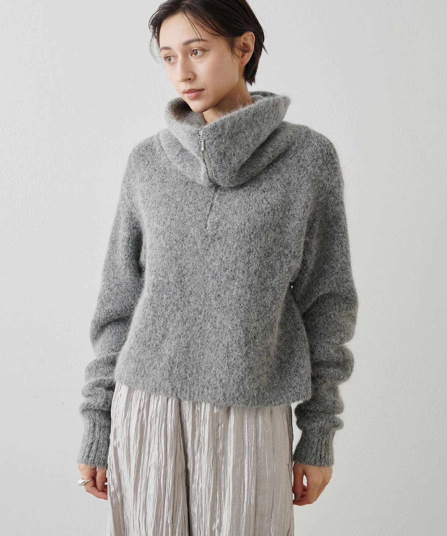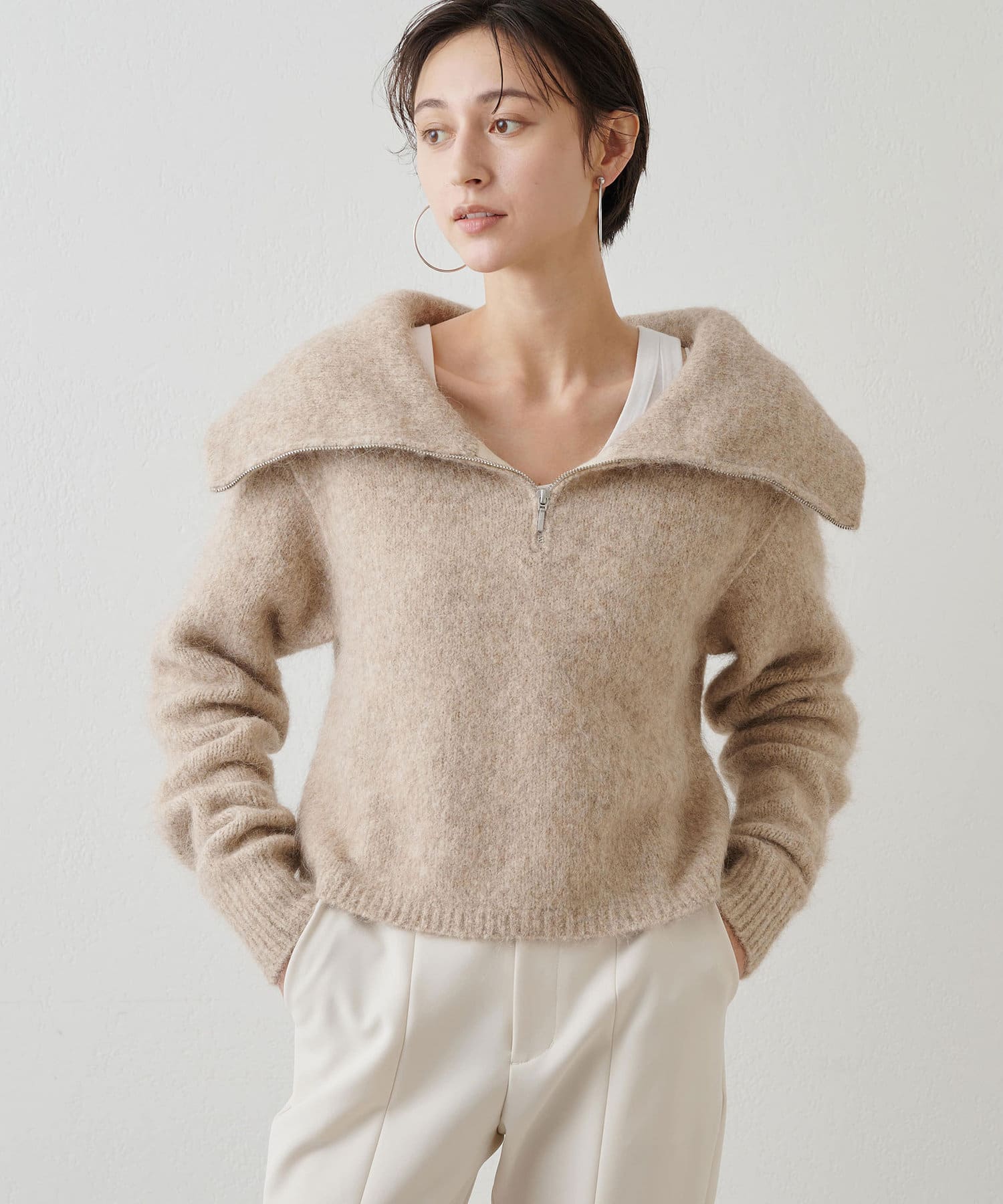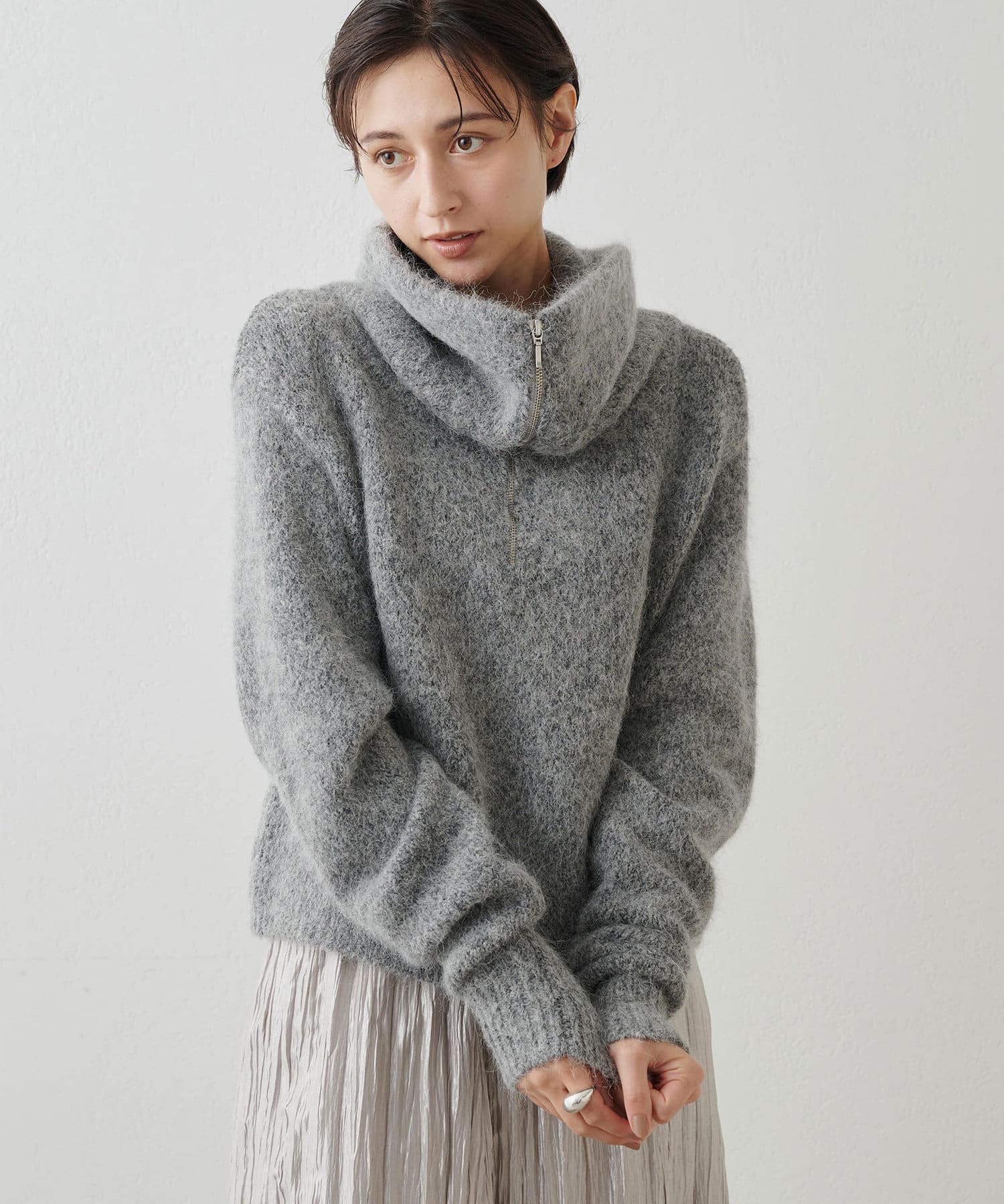 ジップのアレンジで雰囲気の違いを楽しめるニットトップス