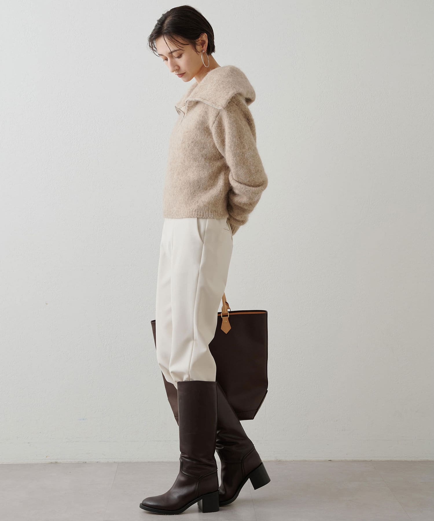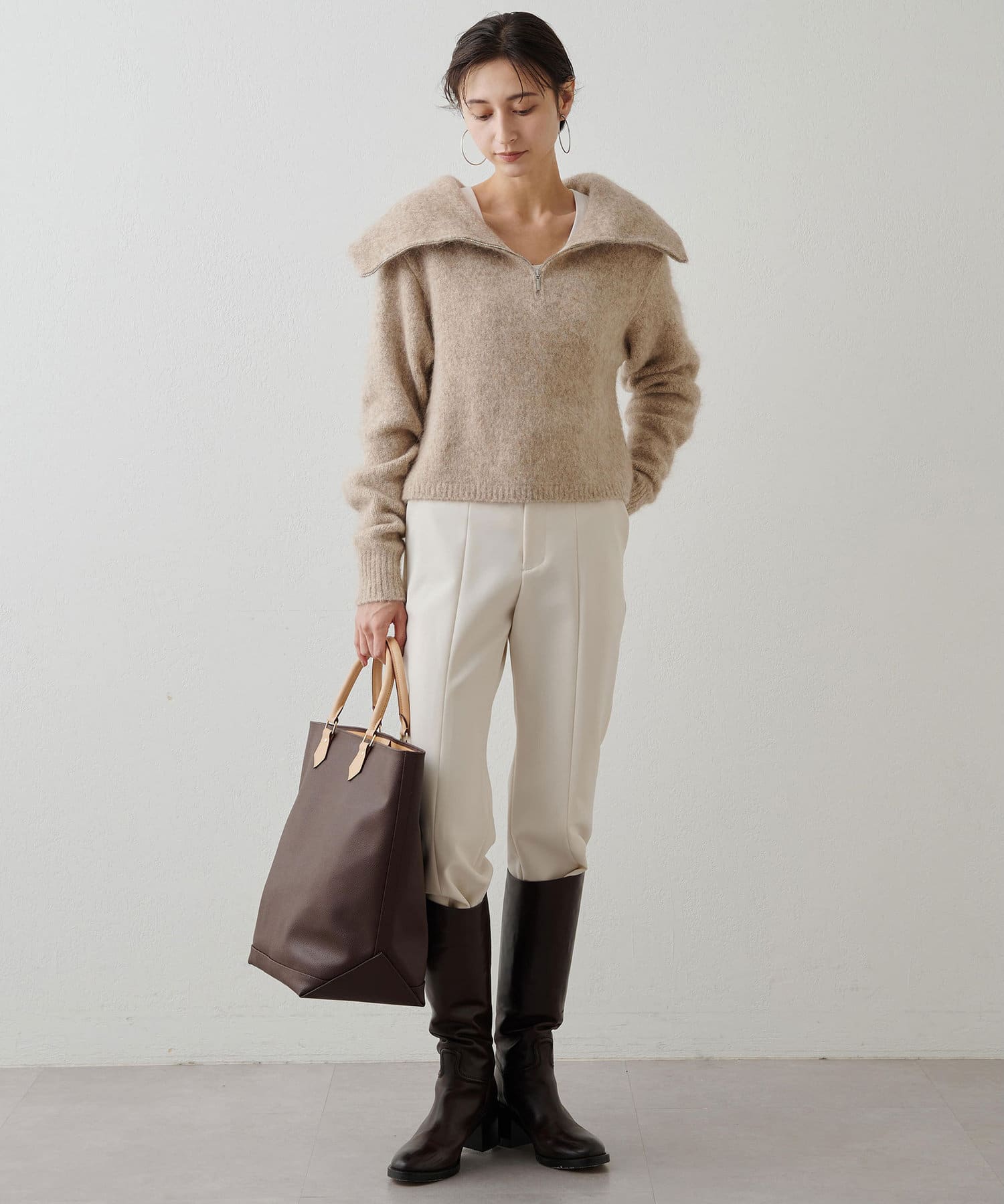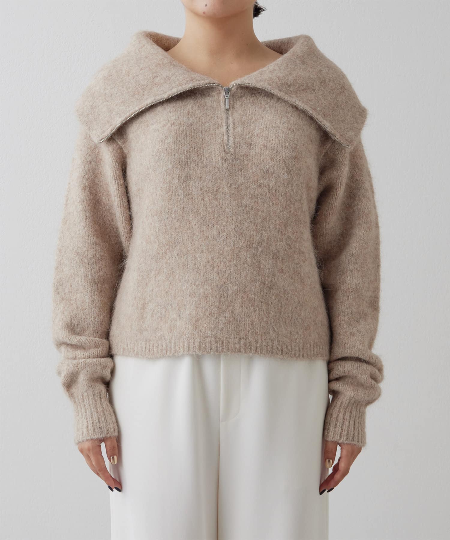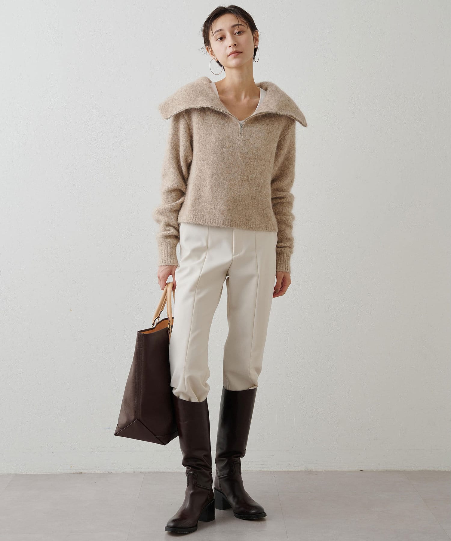 ジップのアレンジで雰囲気の違いを楽しめるニットトップス