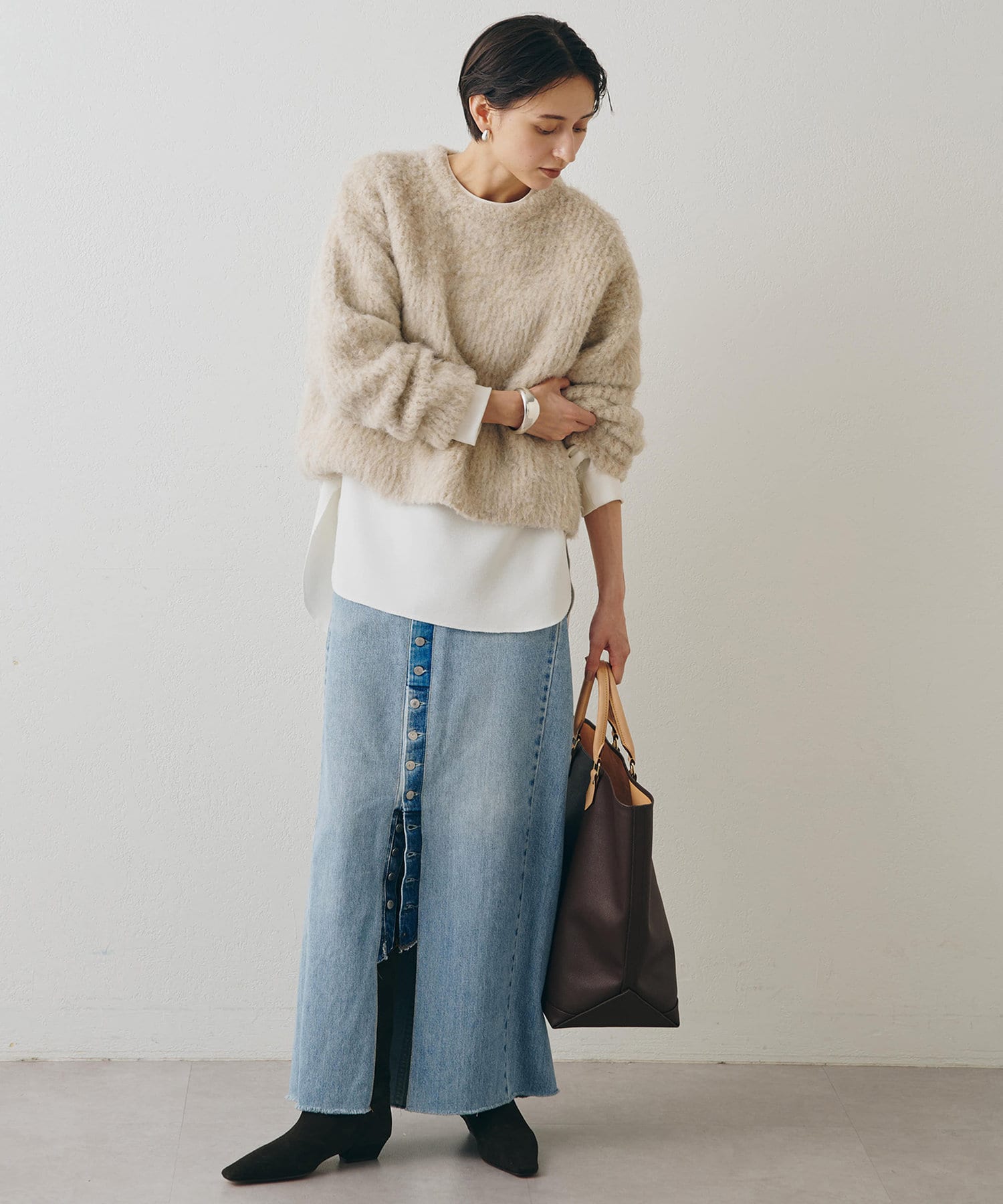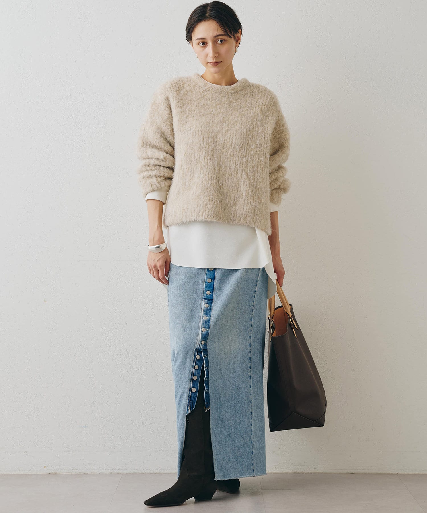 柔らかく軽さのある生地で着心地も良いです!ゆったりとしつつも着丈はあまり長くないのでボトムを選ばず、バランスが取りやすいですよ。シャツやタートルをレイヤードするのもおすすめです。