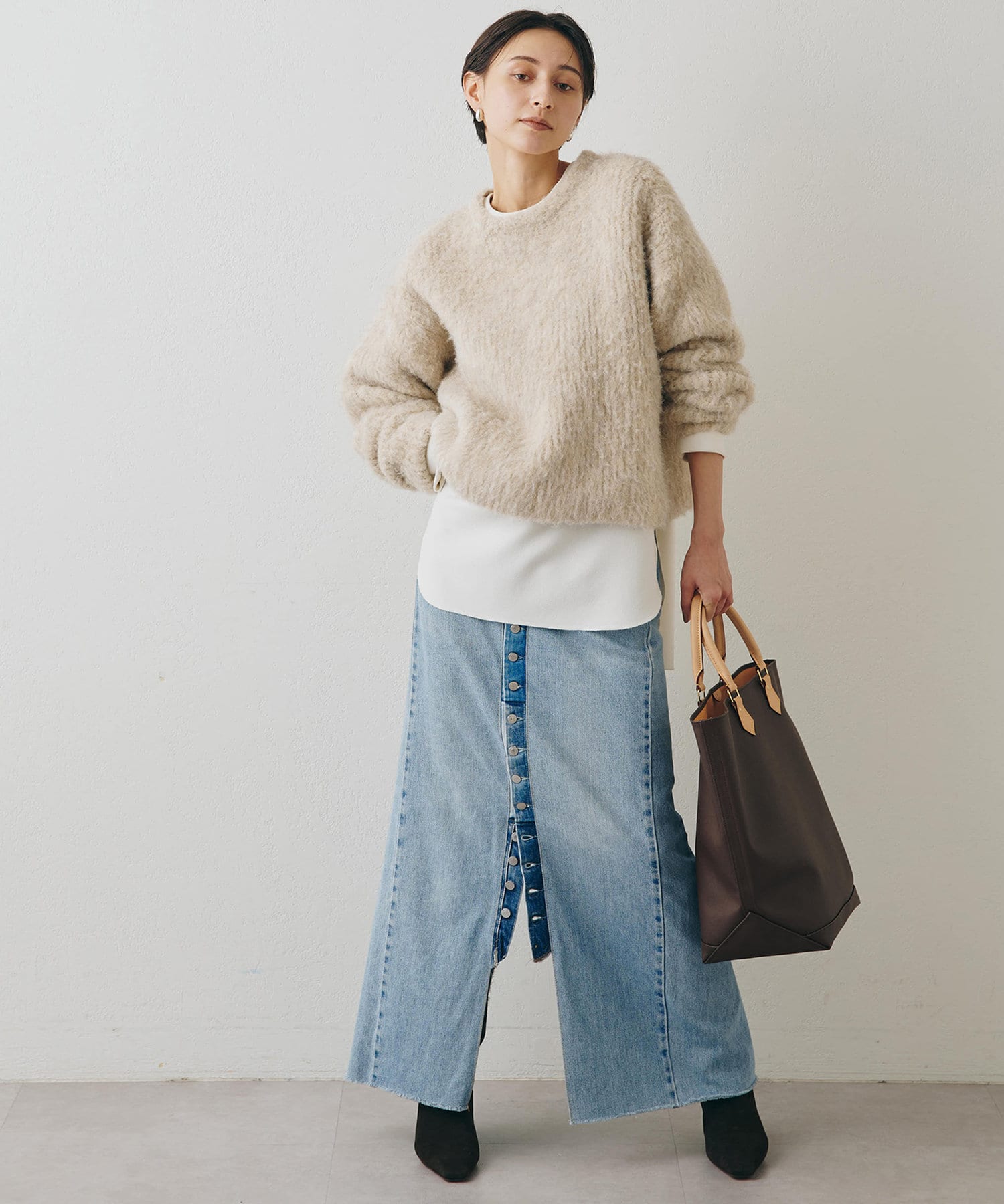 素材感がアクセントになる、エアリーなニットプルオーバー