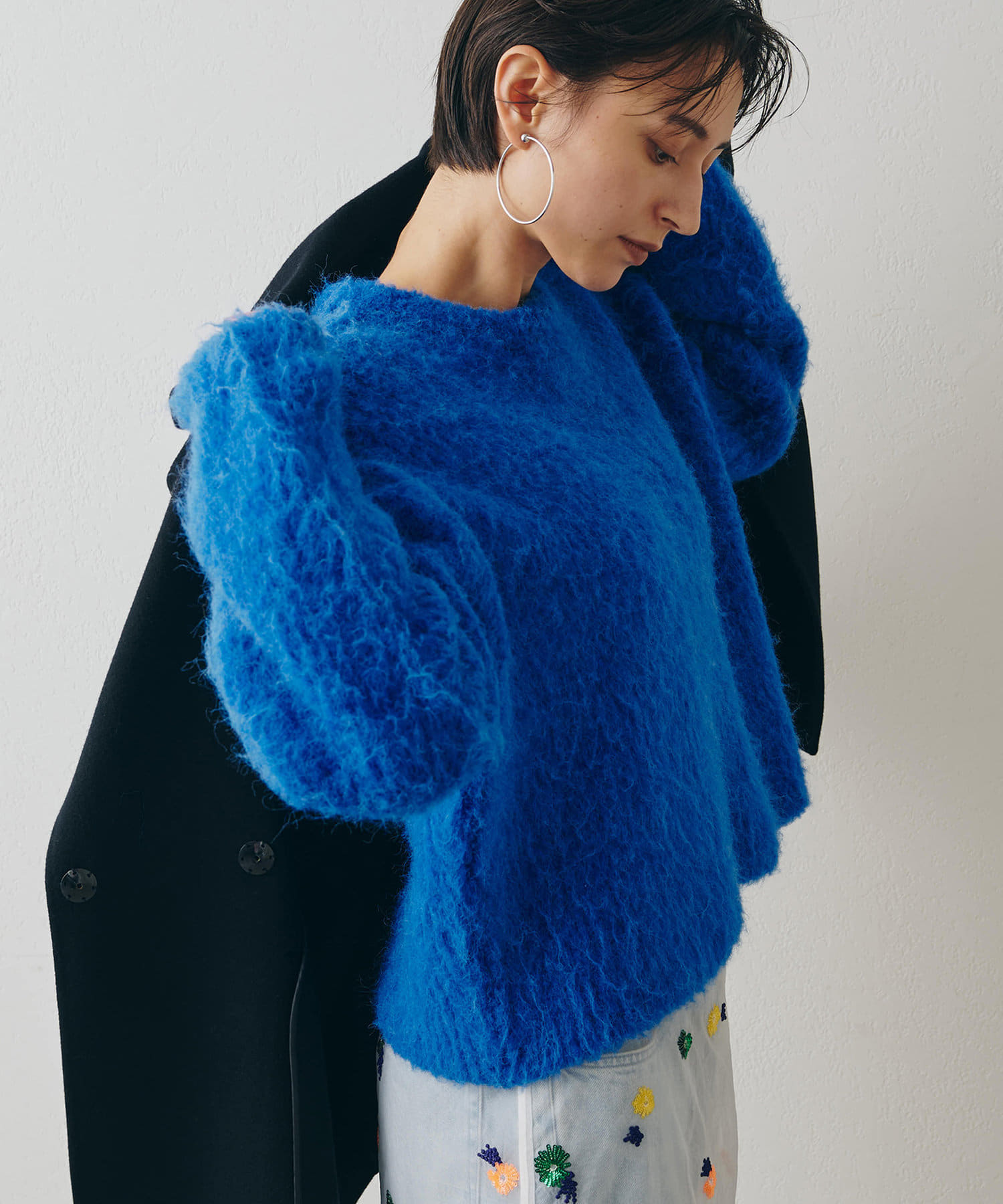 ふっくらとボリュームがあるのに、本当に軽いニット!パキっとしたカラーも特徴です。着丈が長すぎず、着ぶくれせずに着やすいです。
