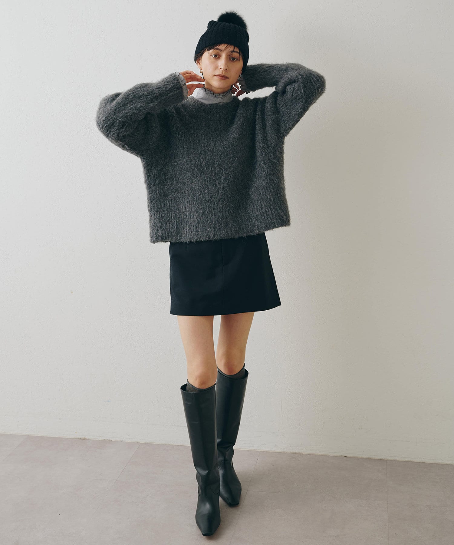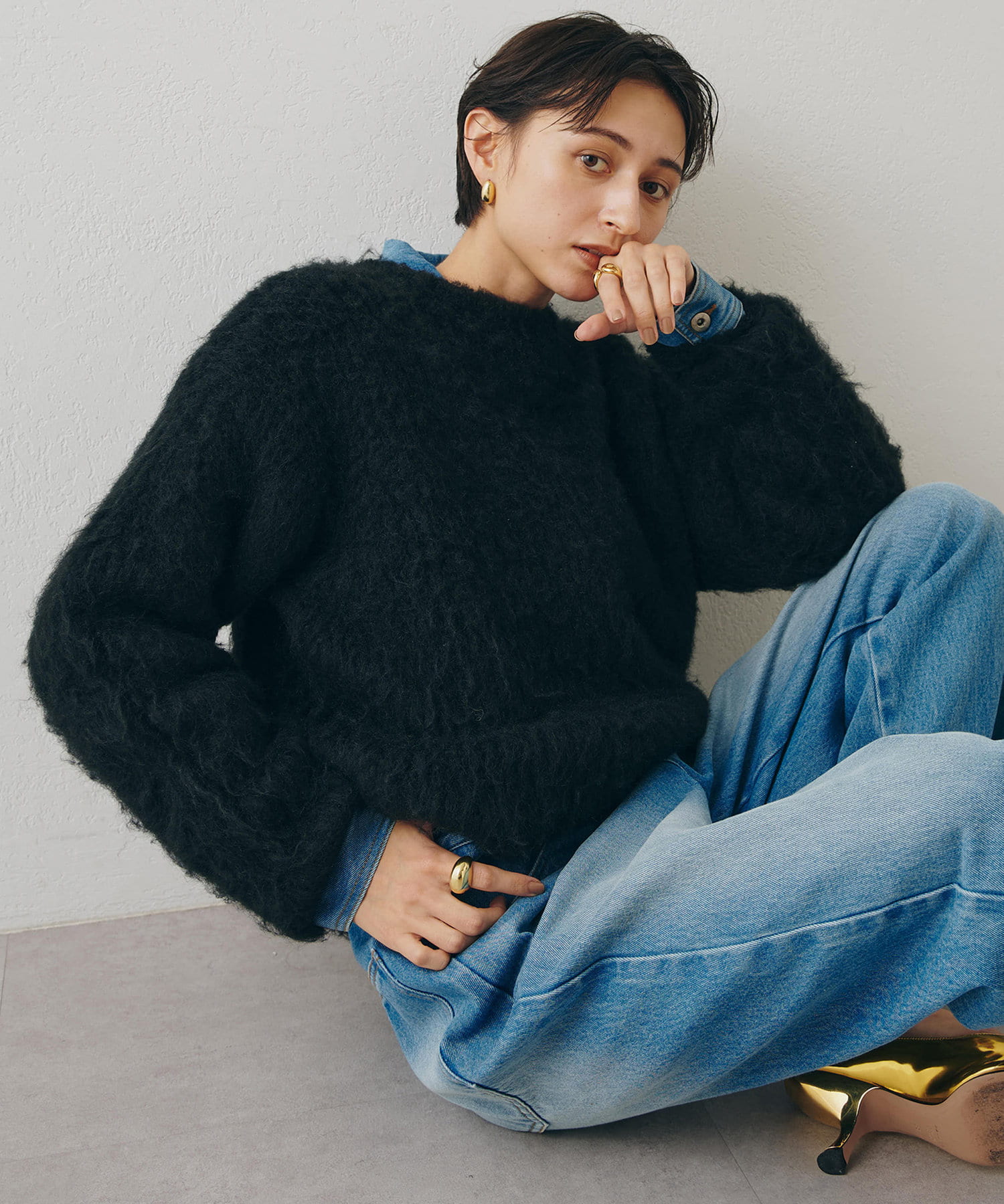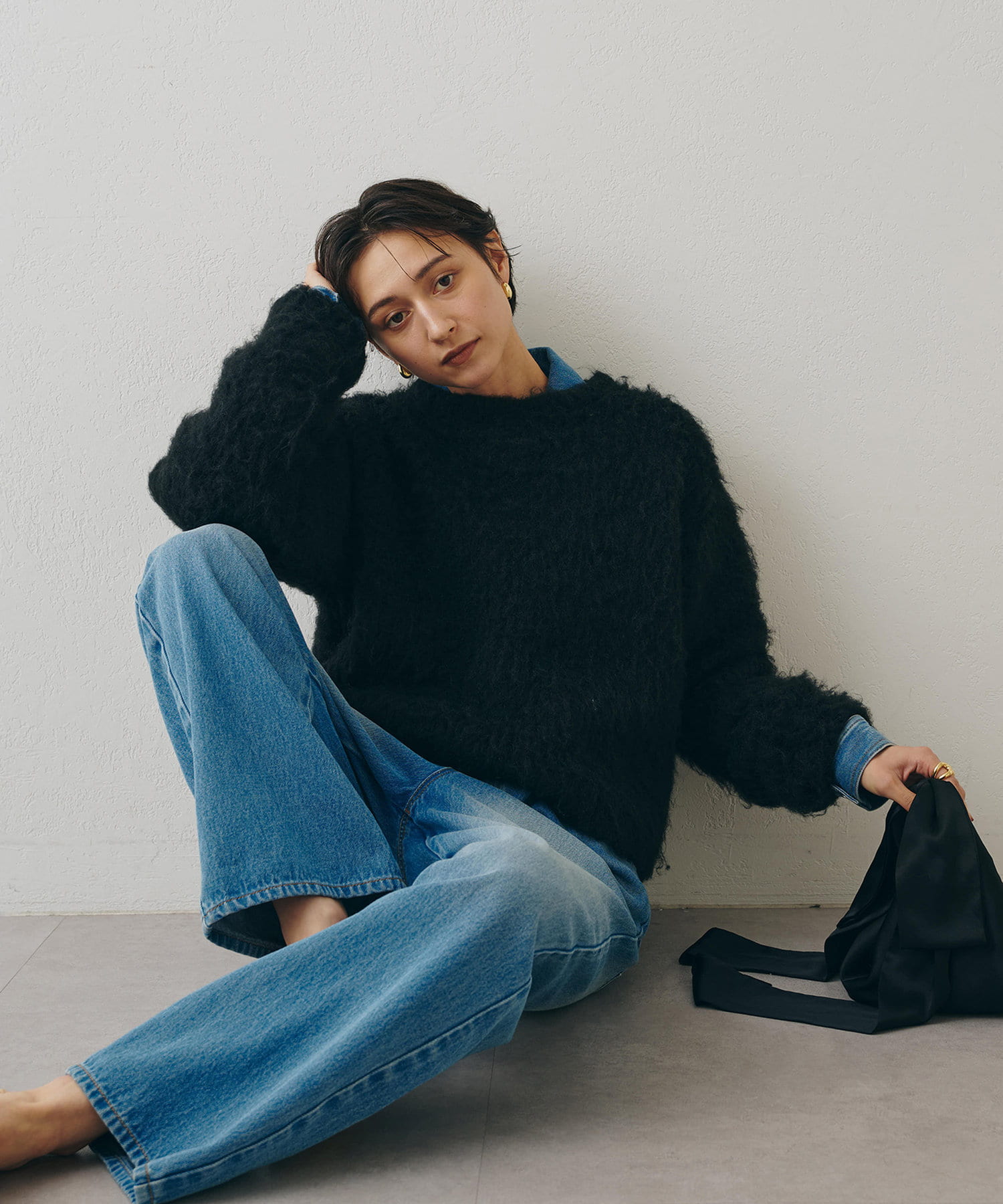 ブラック:ニットのほっこりした印象を抑えモードにまとまるブラック。★WEB限定カラー