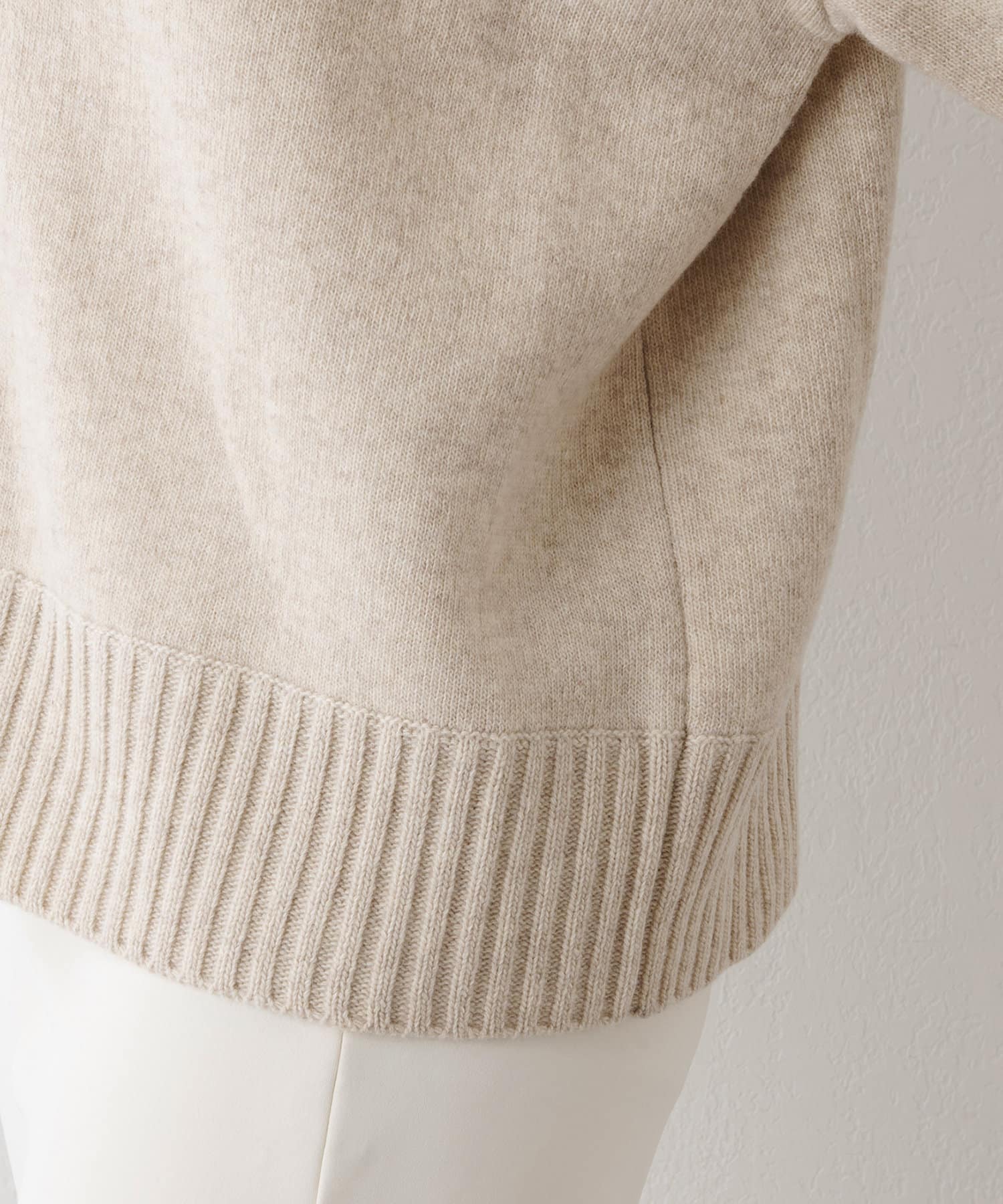 ■編地は接結編みにすることで立体感が生まれ、カジュアルながらも大人の定番ニットに。