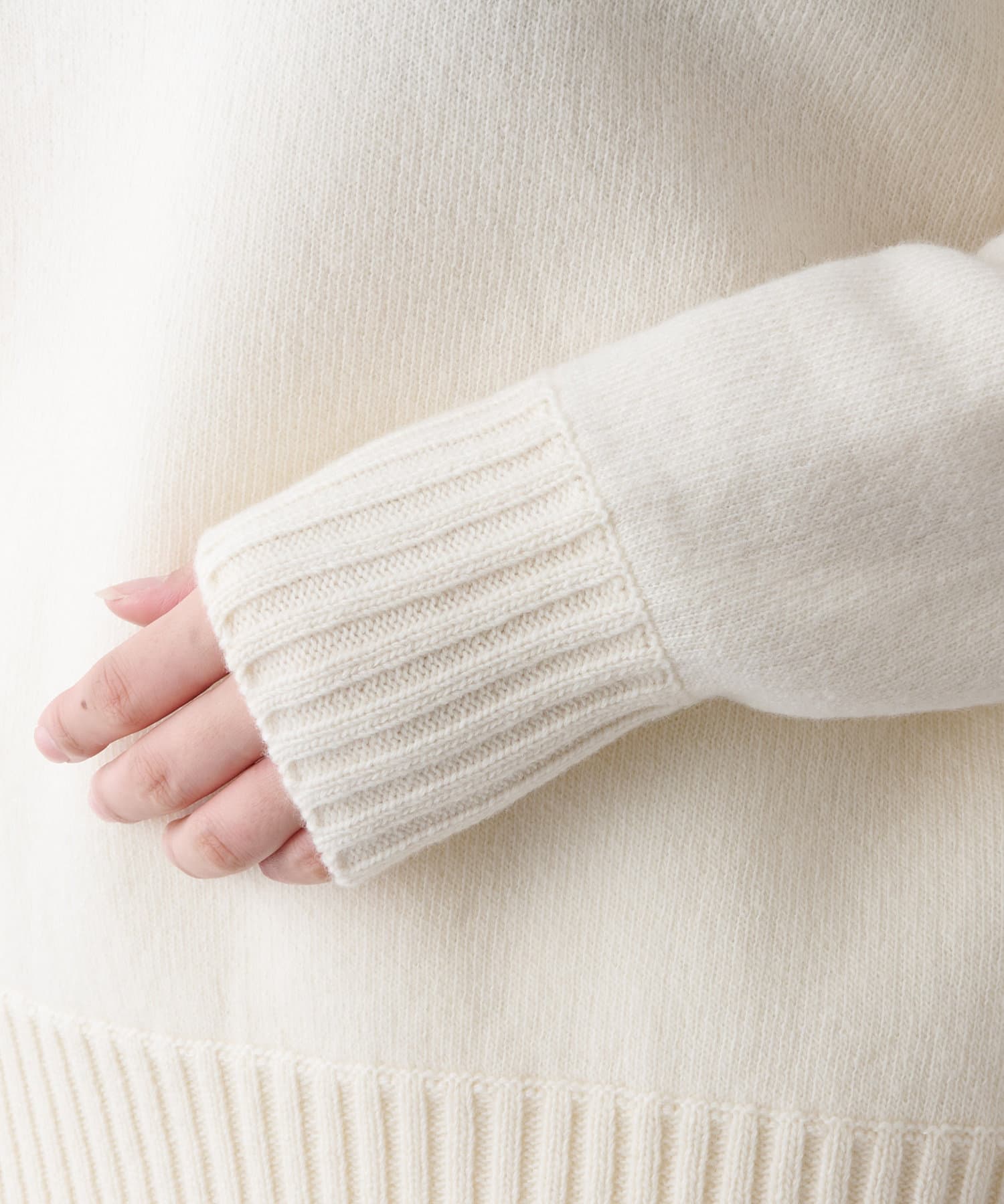 ■編地は接結編みにすることで立体感が生まれ、カジュアルながらも大人の定番ニットに。