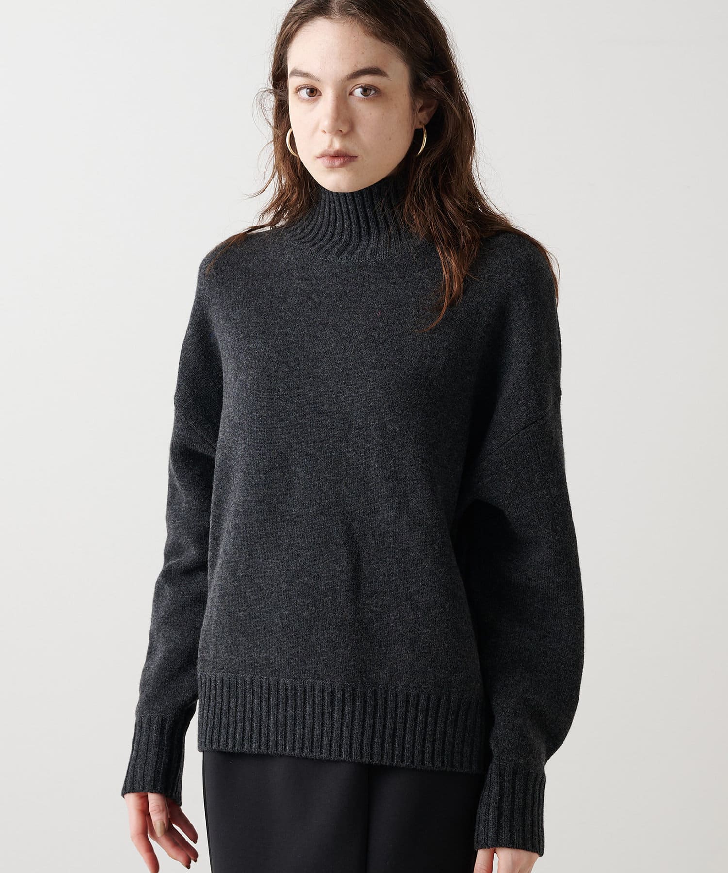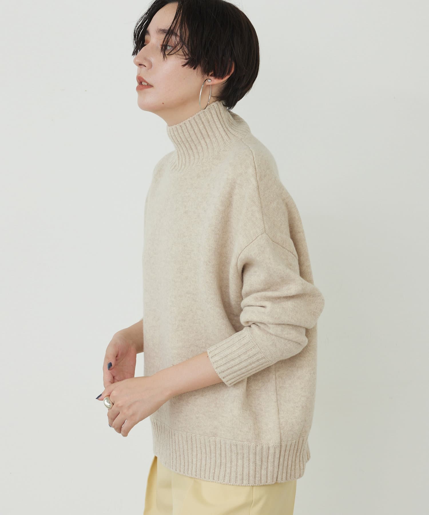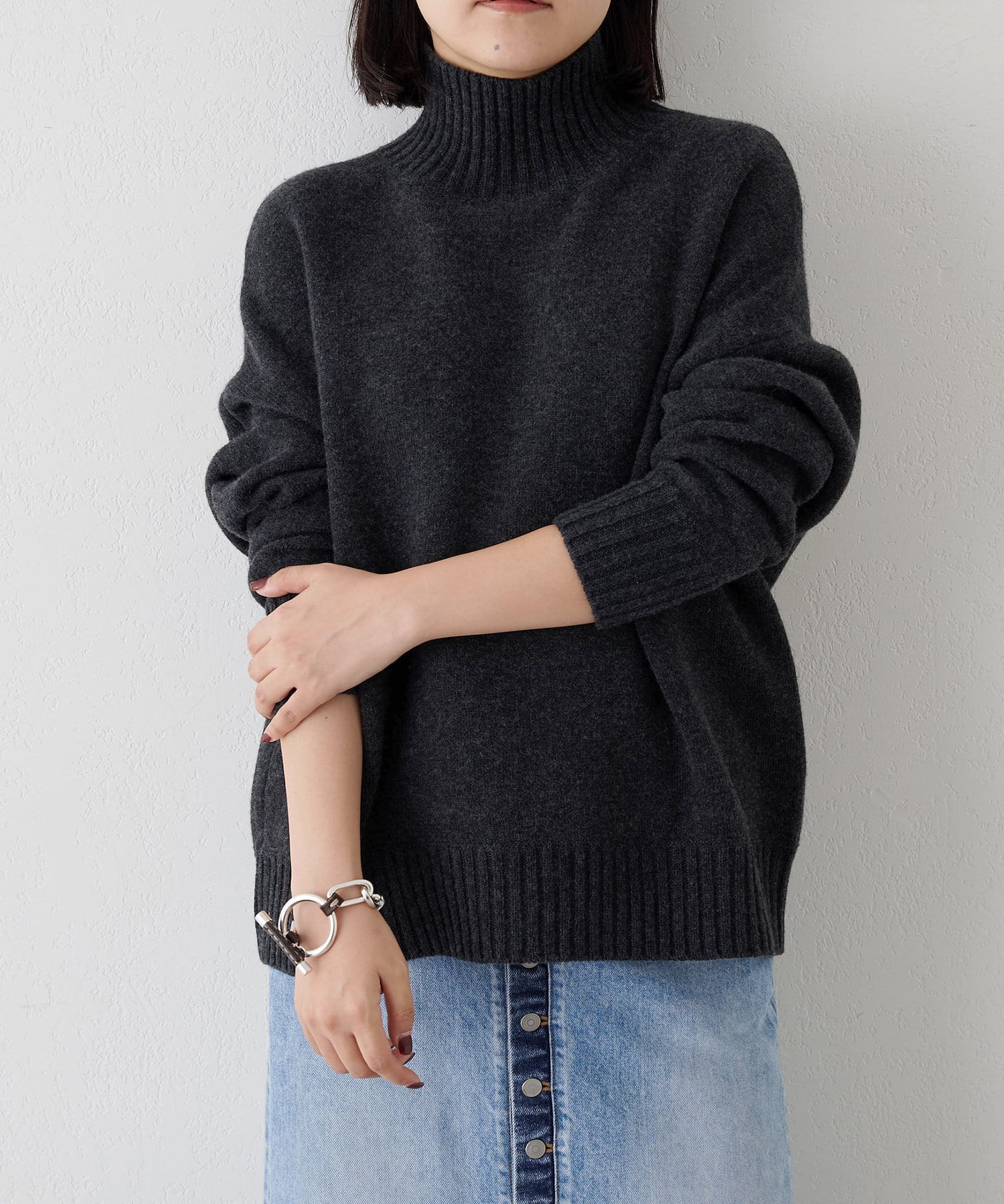 ■程よいワイドシルエット+自然なタートルネックは一枚でもサマになり、シャツやカットソーをレイヤードしても◎