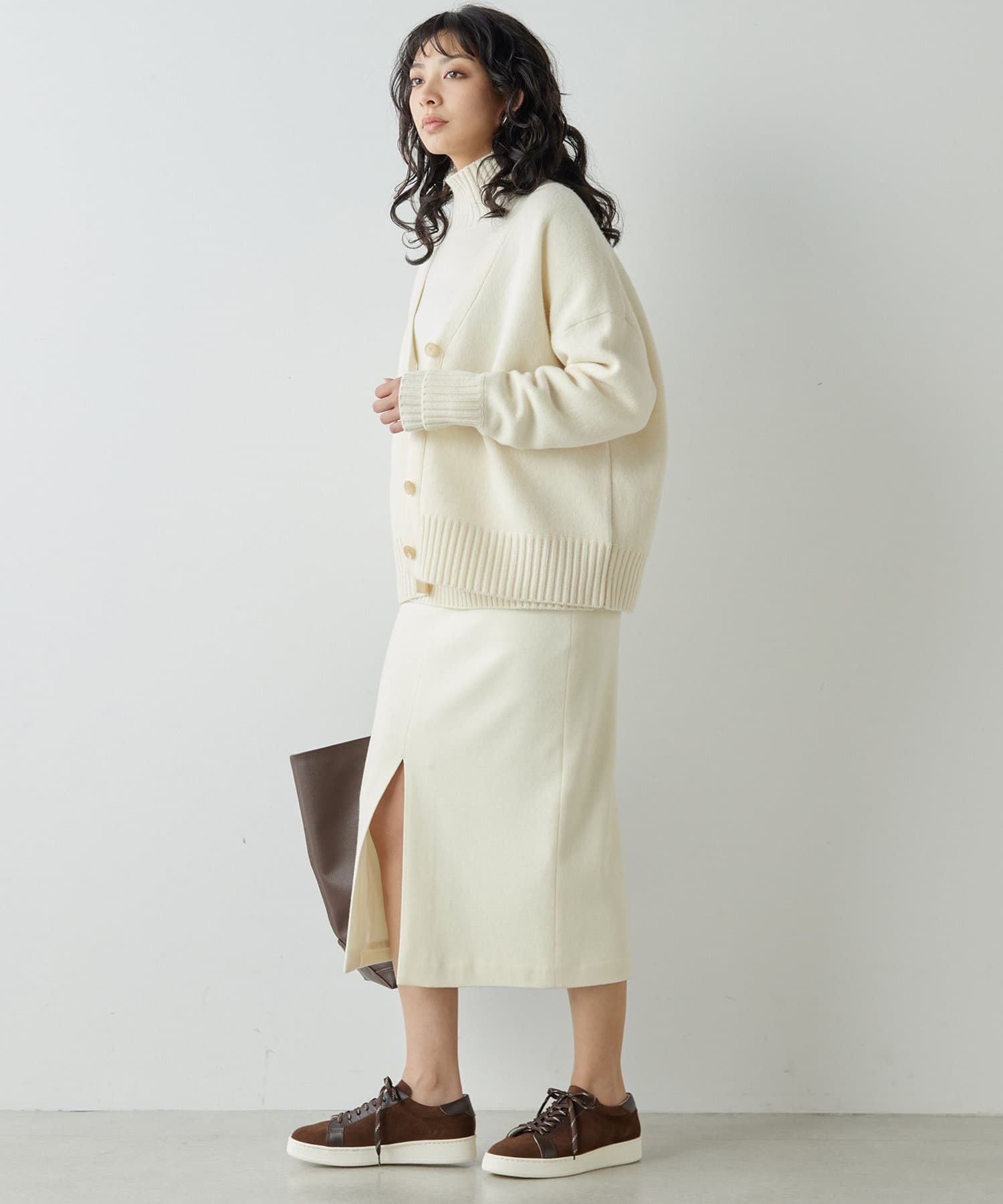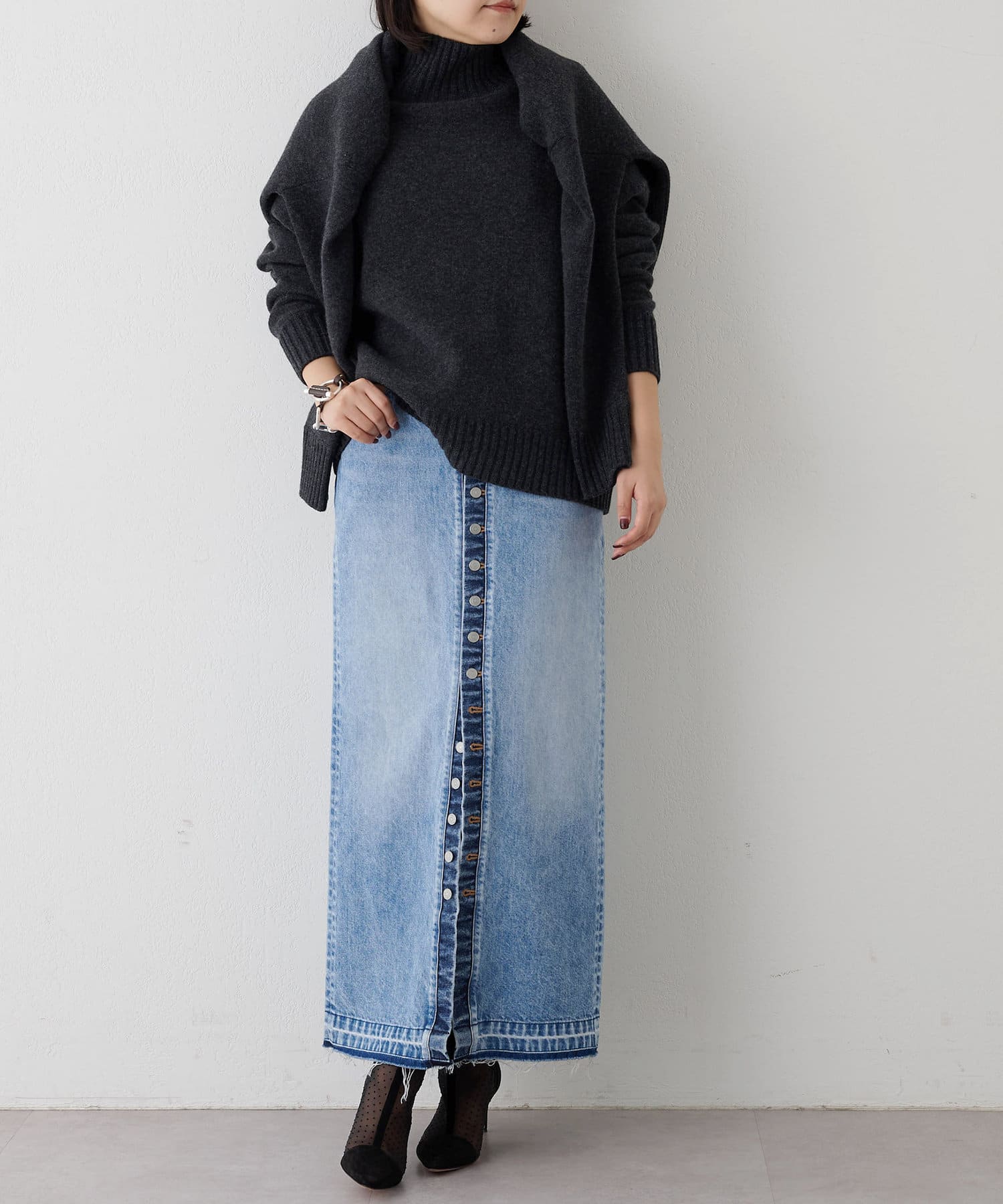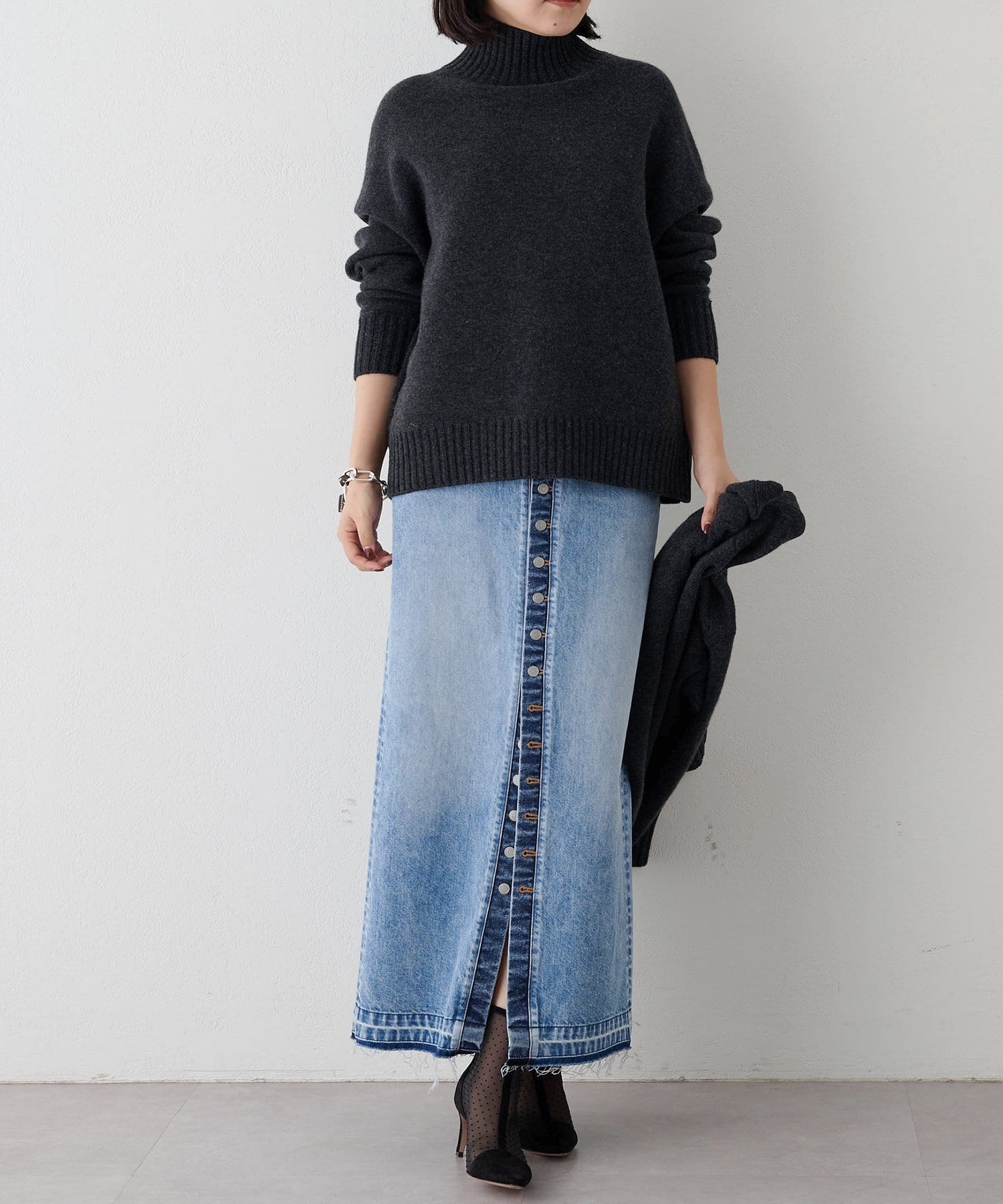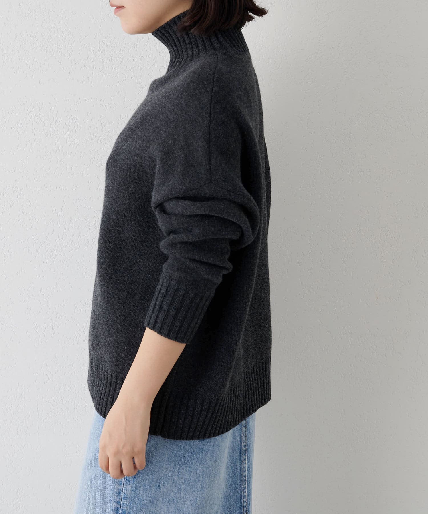 ■程よいワイドシルエット+自然なタートルネックは一枚でもサマになり、シャツやカットソーをレイヤードしても◎