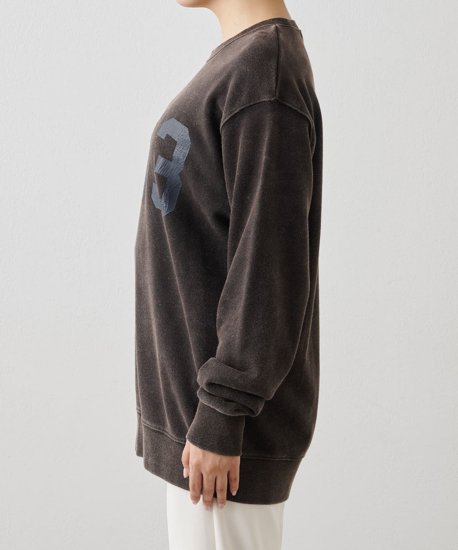 ナンバーロゴがアクセントになる、ヴィンテージ風スウェット