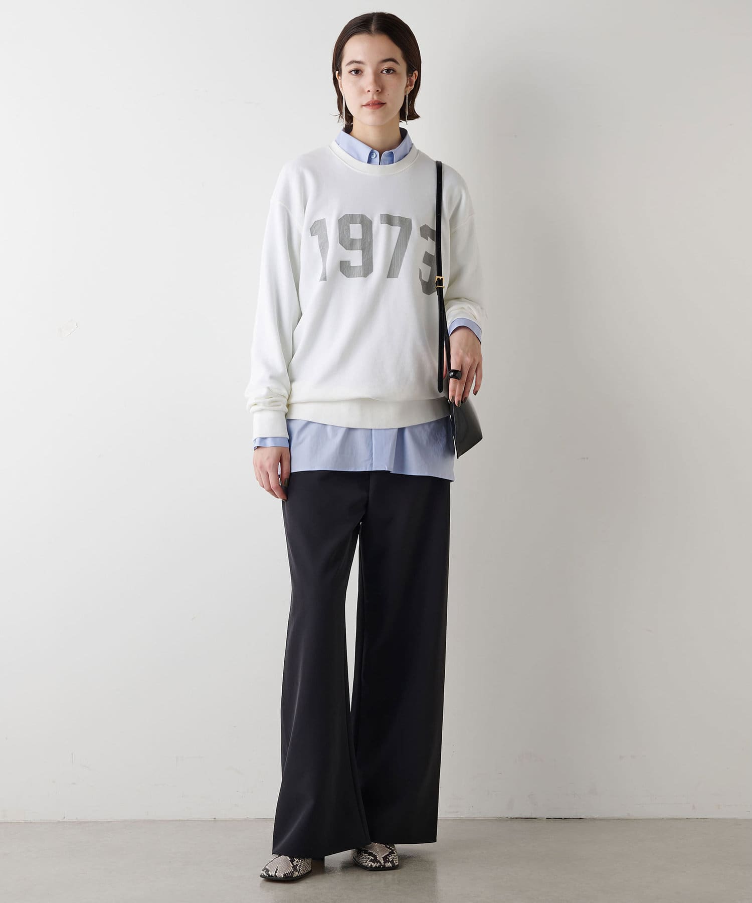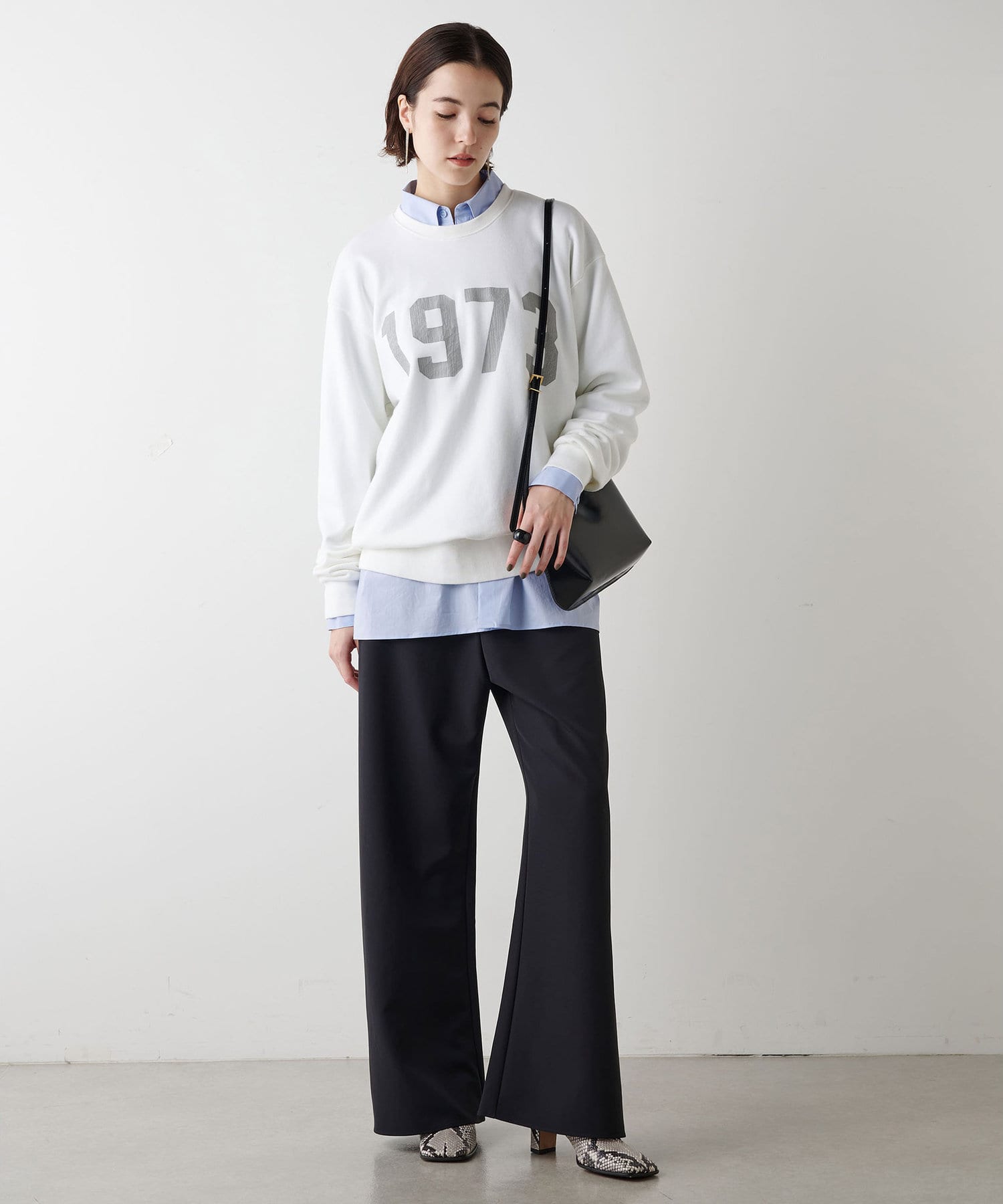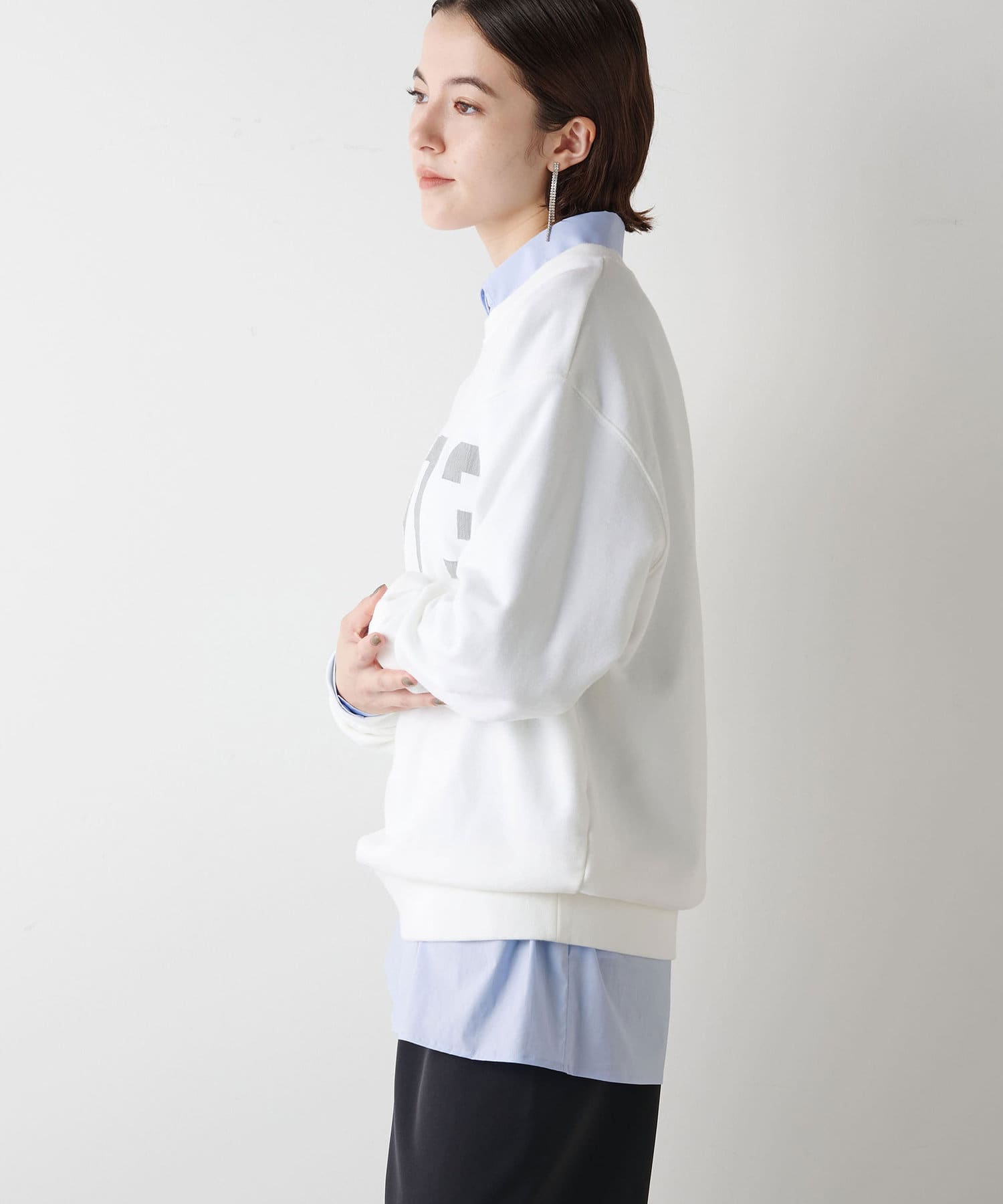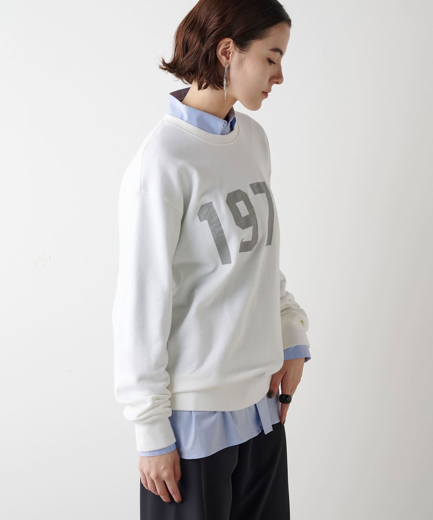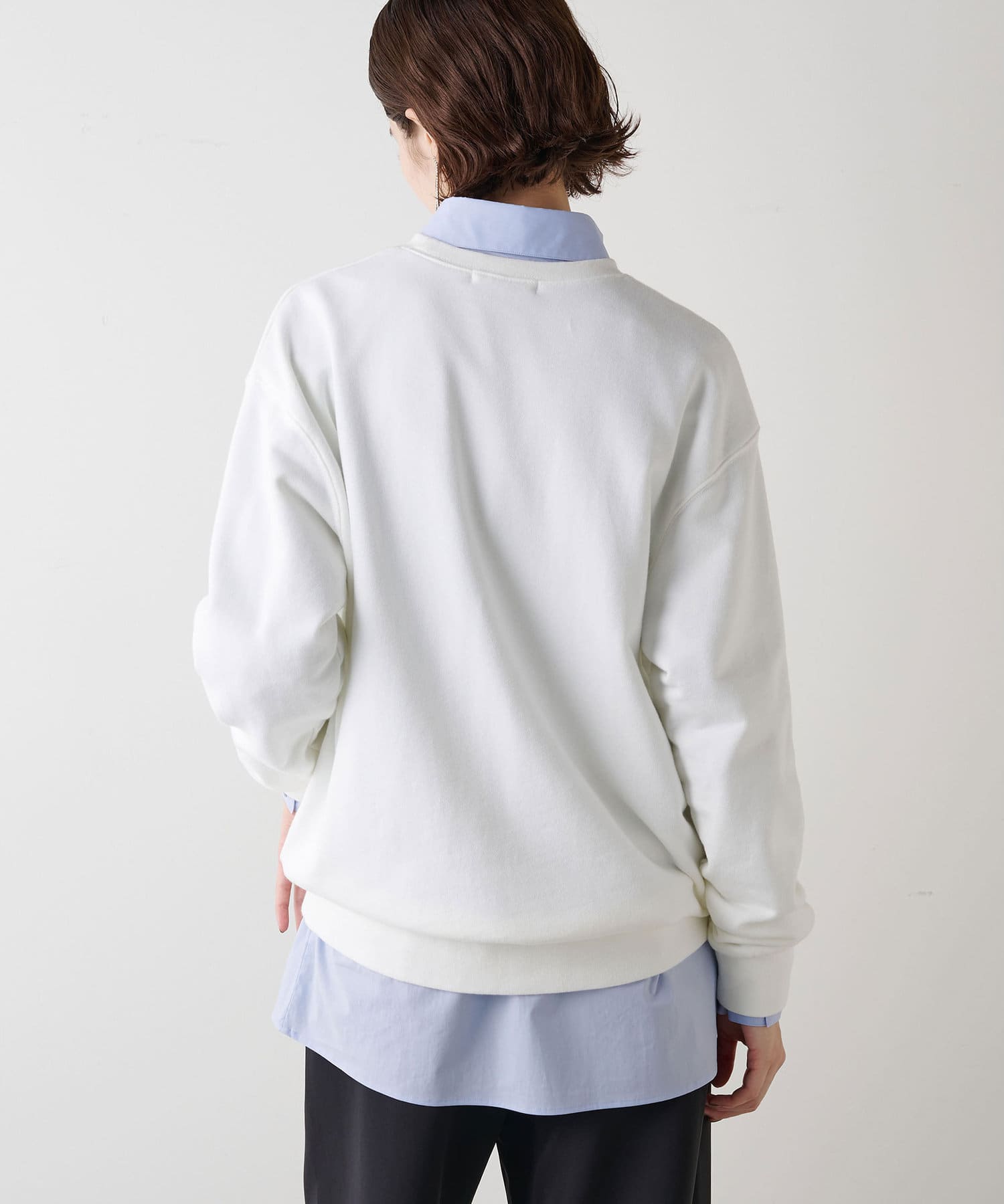 スッキリとしたシルエットのスウェット。丈感も程よく着回し力のある一枚。ナンバーロゴがポイントになる大人カジュアルアイテムです。