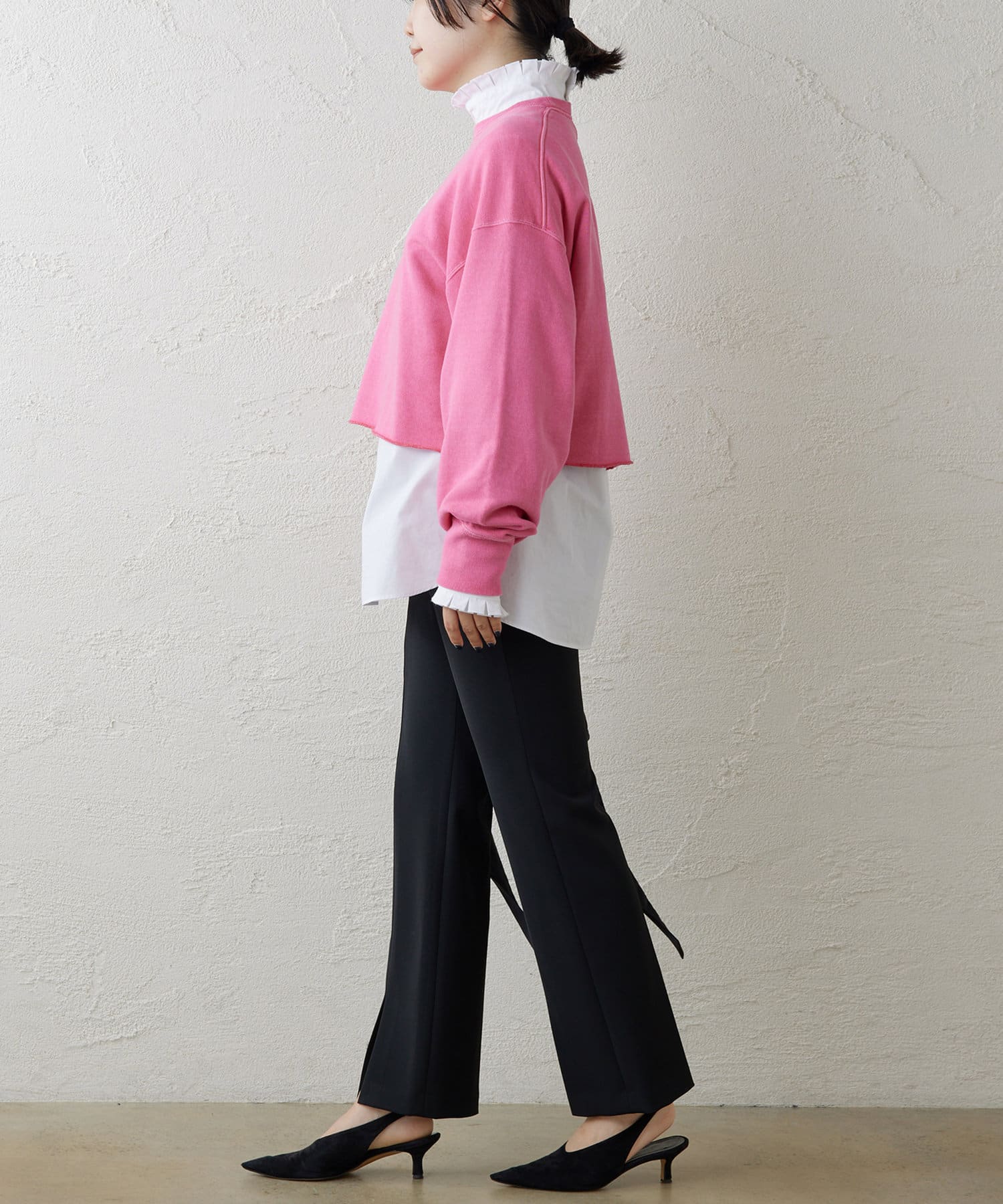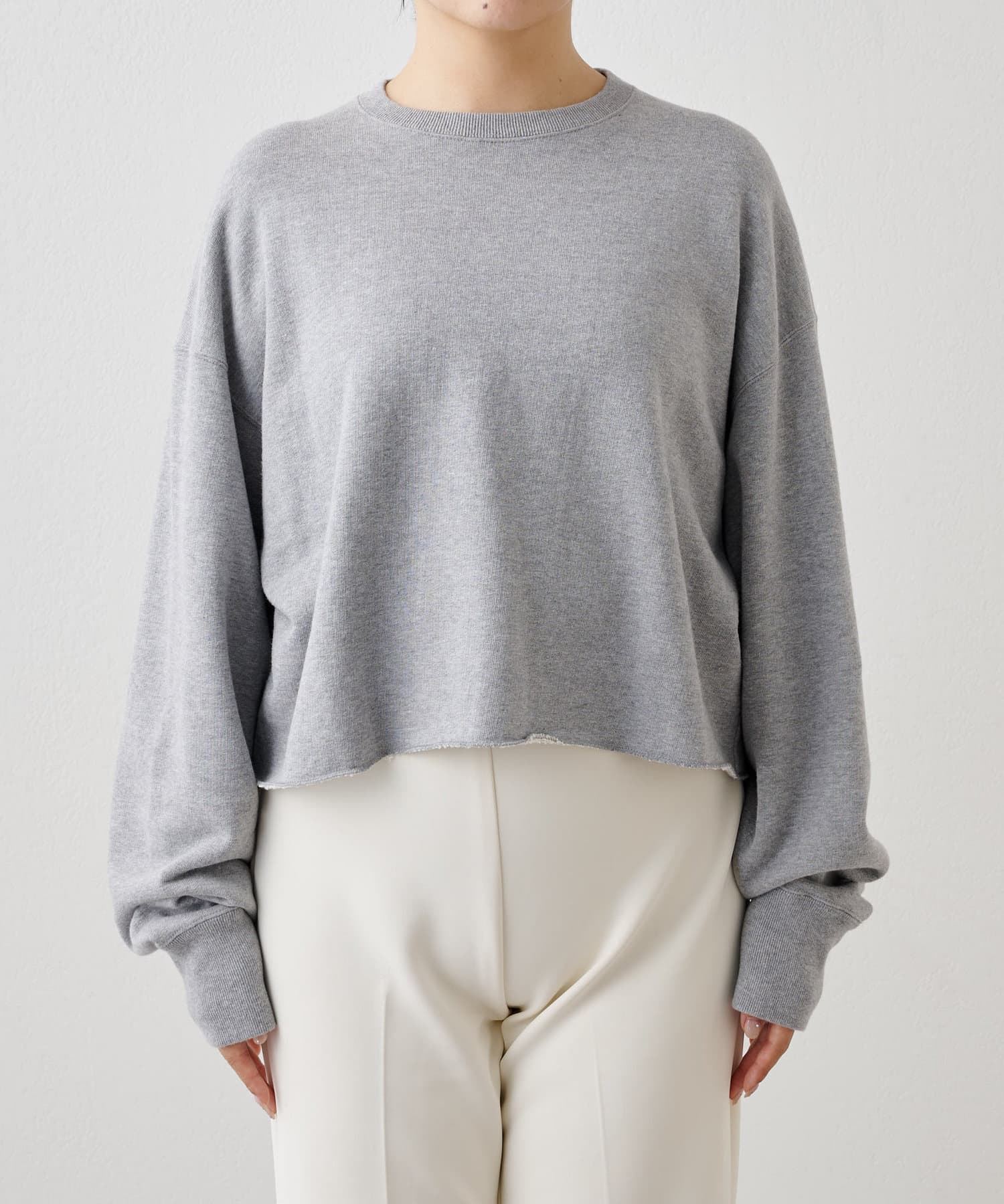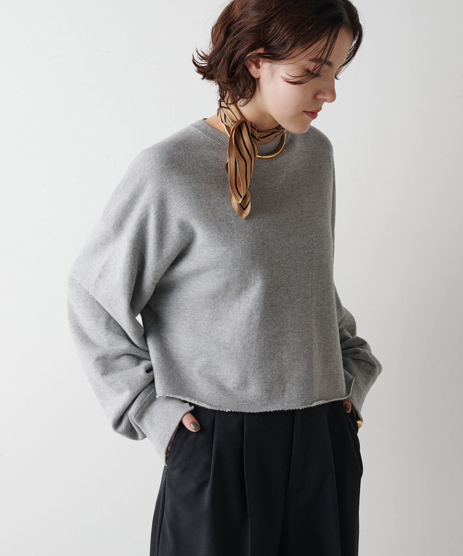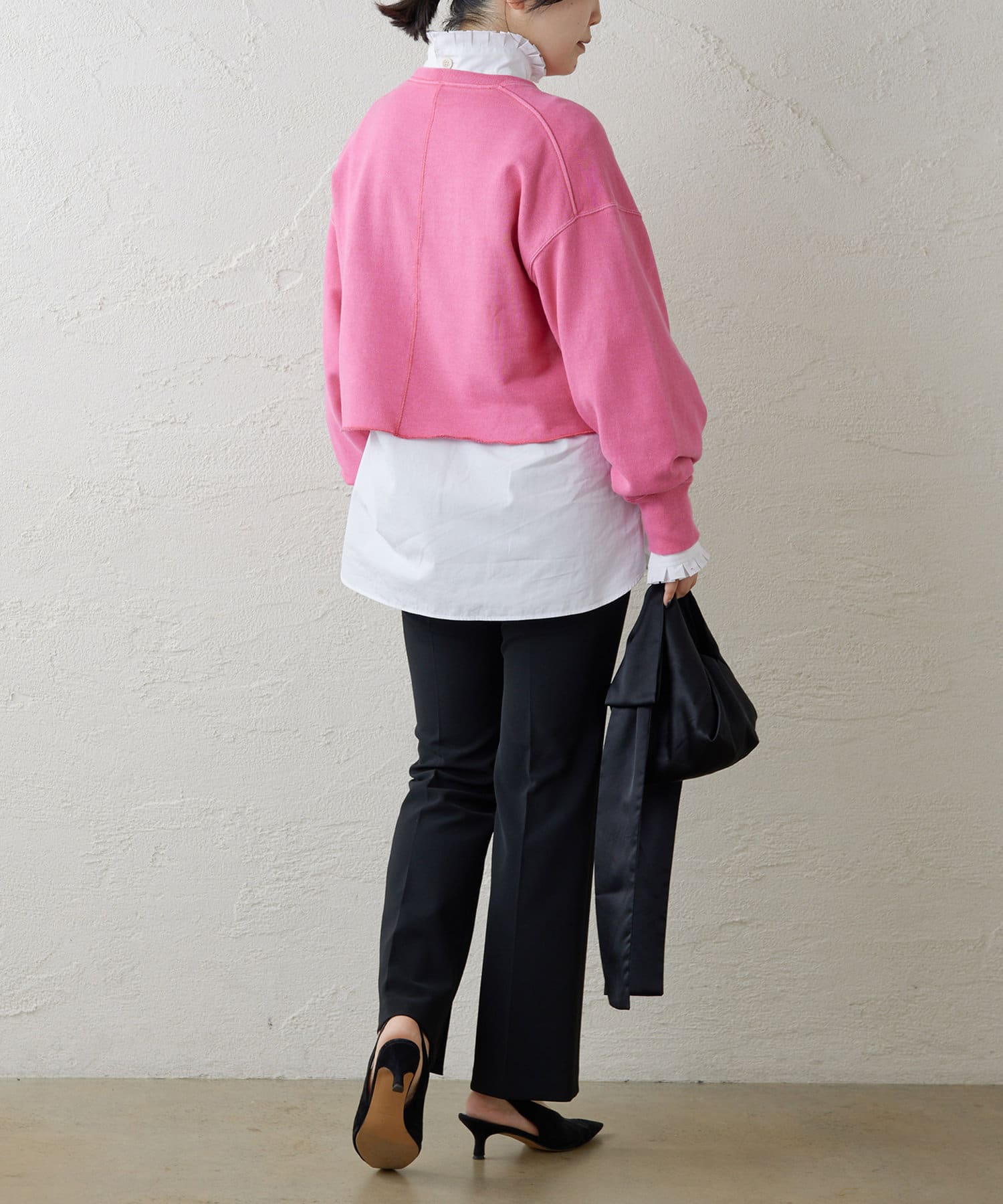 着回しが効くシンプルスウェット。子供っぽくならないようにシルエットが絶妙なバランス。肌寒い季節でも温度調節に優れ長く愛用できます◎。