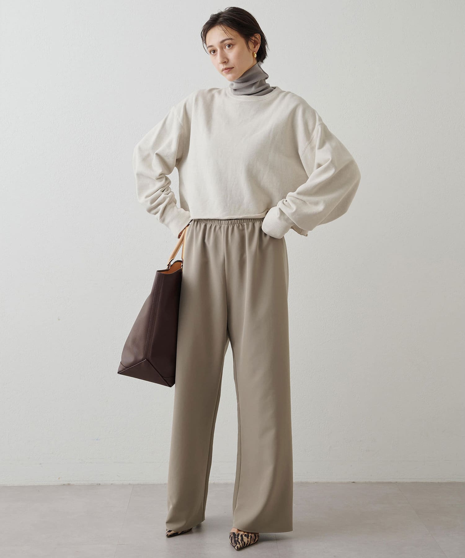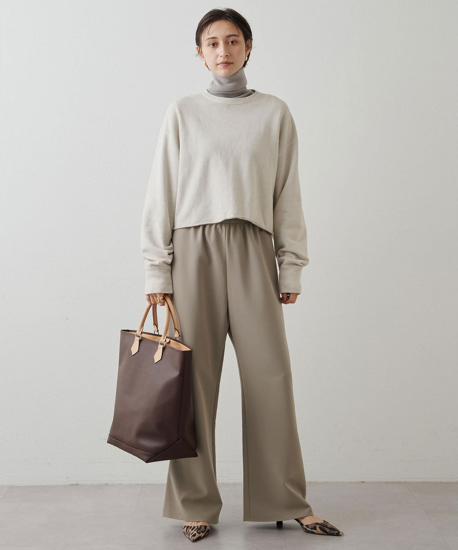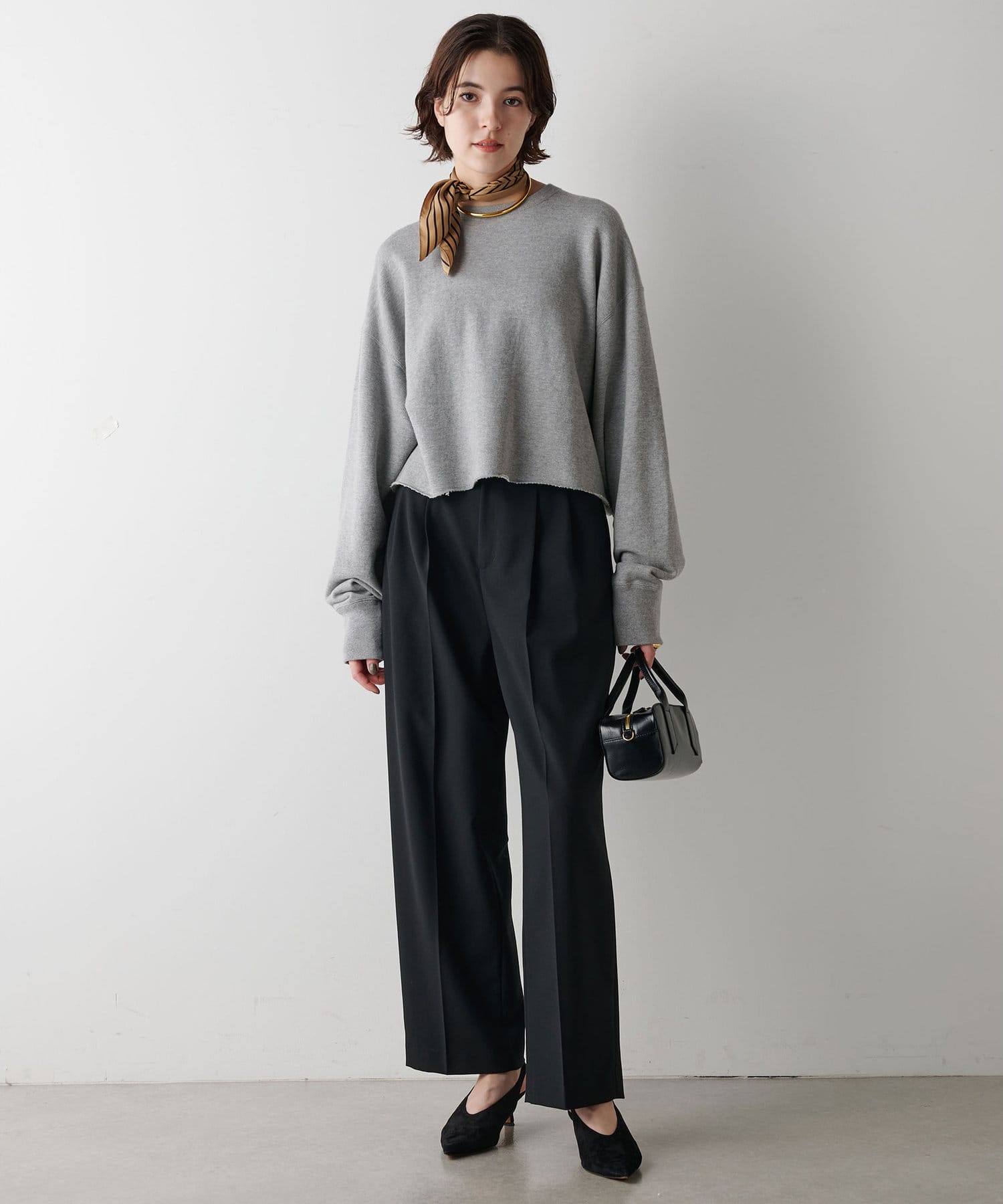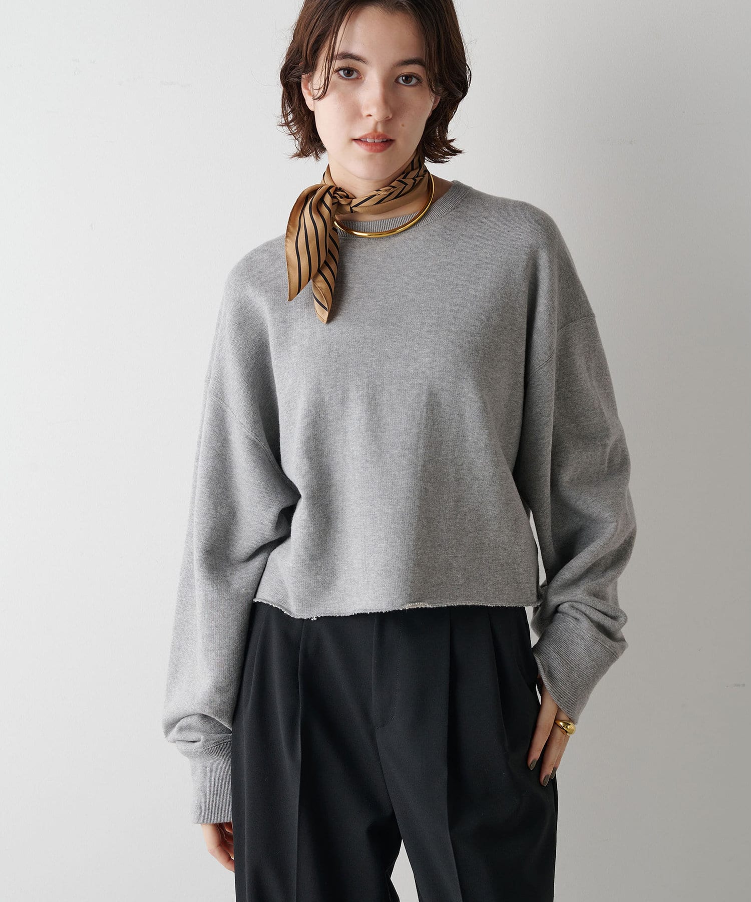 着回しが効くシンプルスウェット。子供っぽくならないようにシルエットが絶妙なバランス。肌寒い季節でも温度調節に優れ長く愛用できます◎。