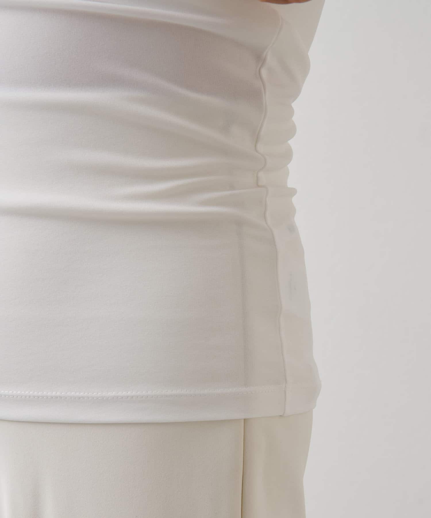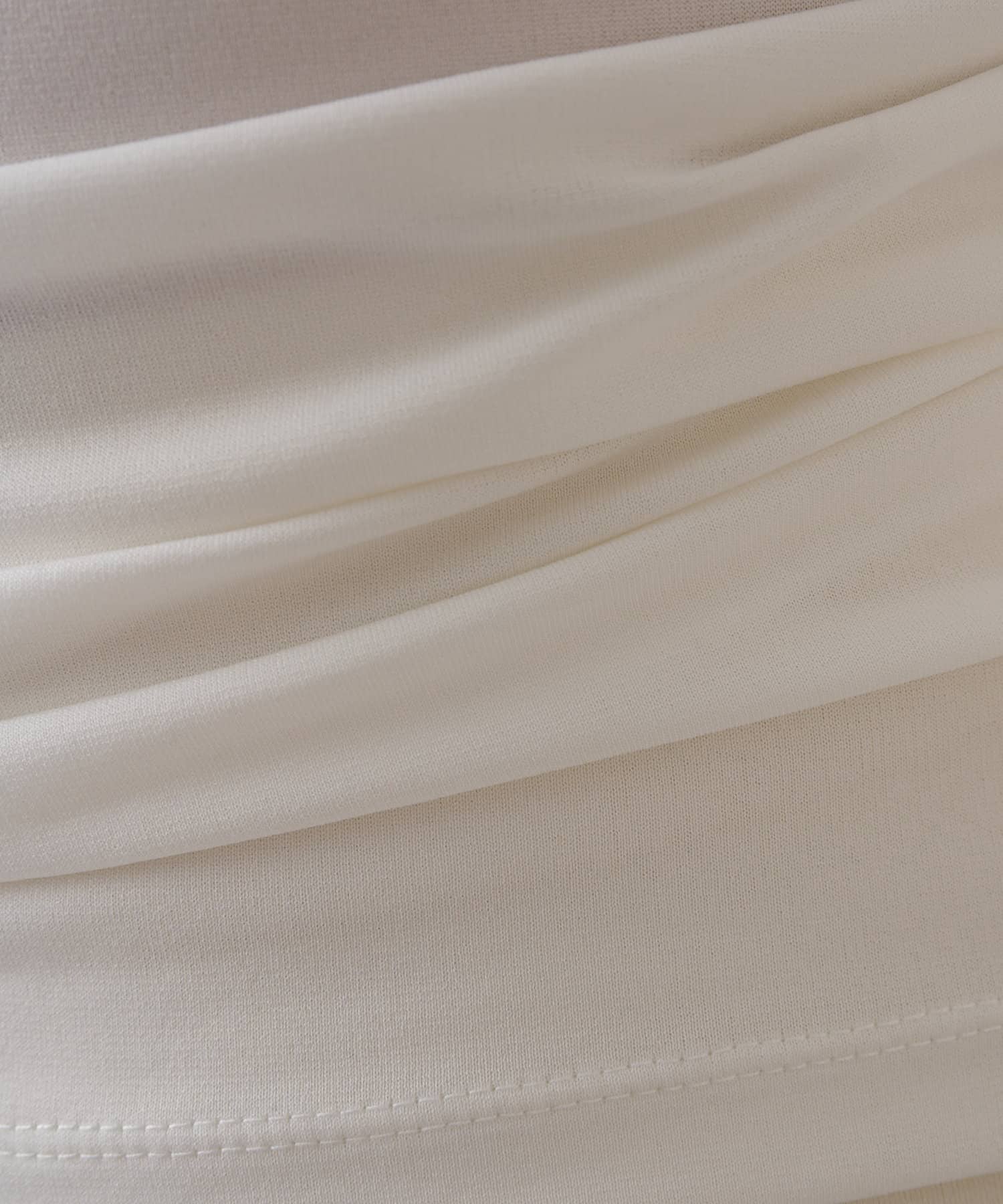 ■フロントはストレートのベアシルエットのため胸元を上品にカバーできるのもポイント。