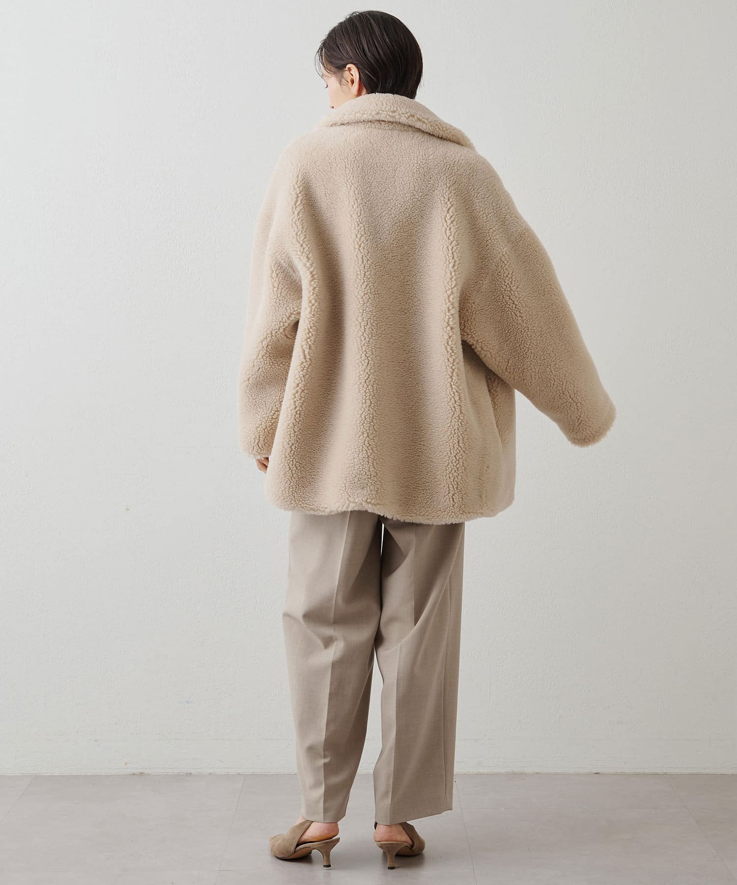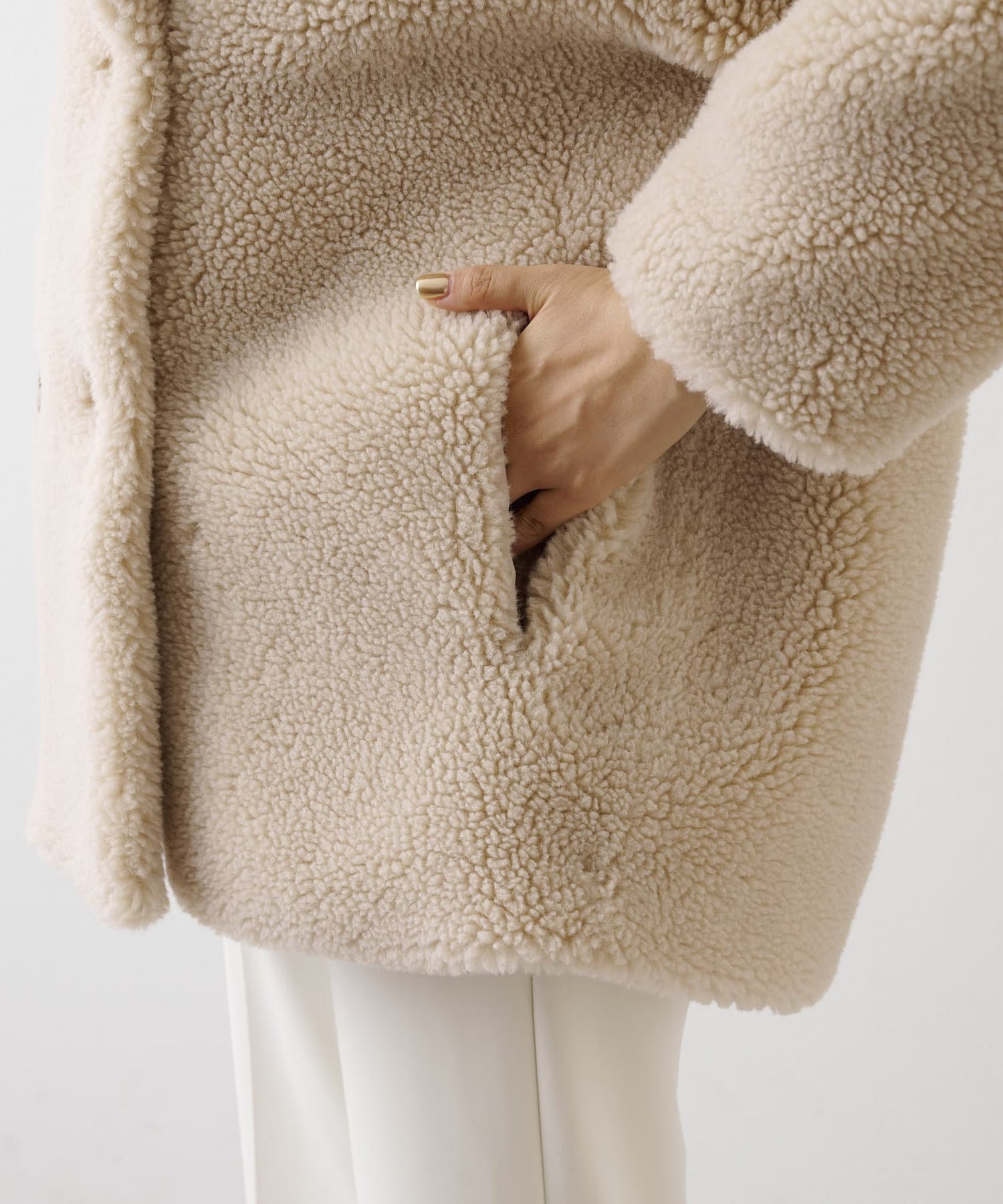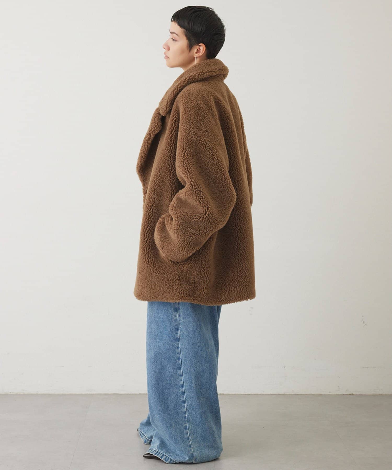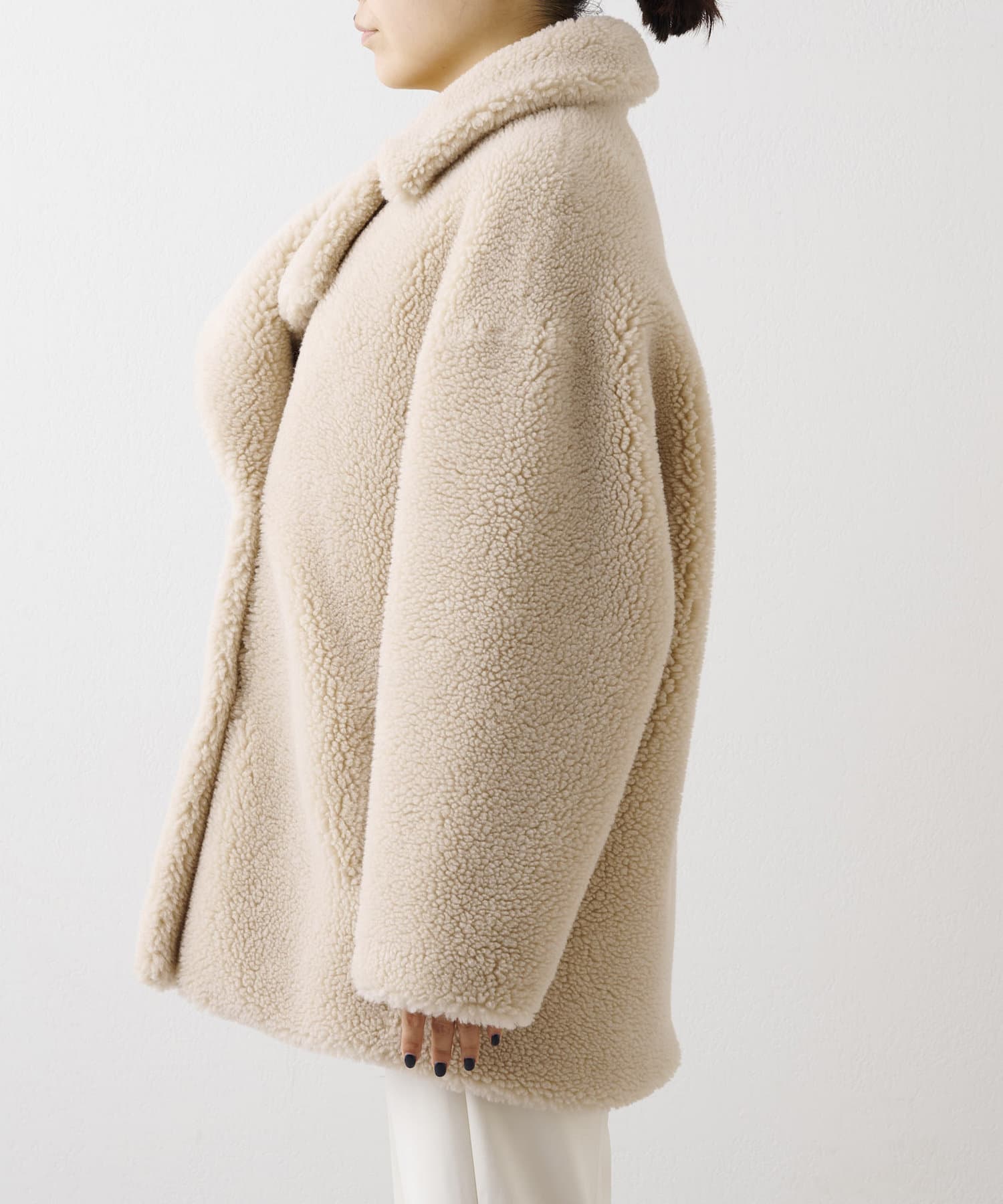 もこもことした素材感が大人可愛いミドルボアコート