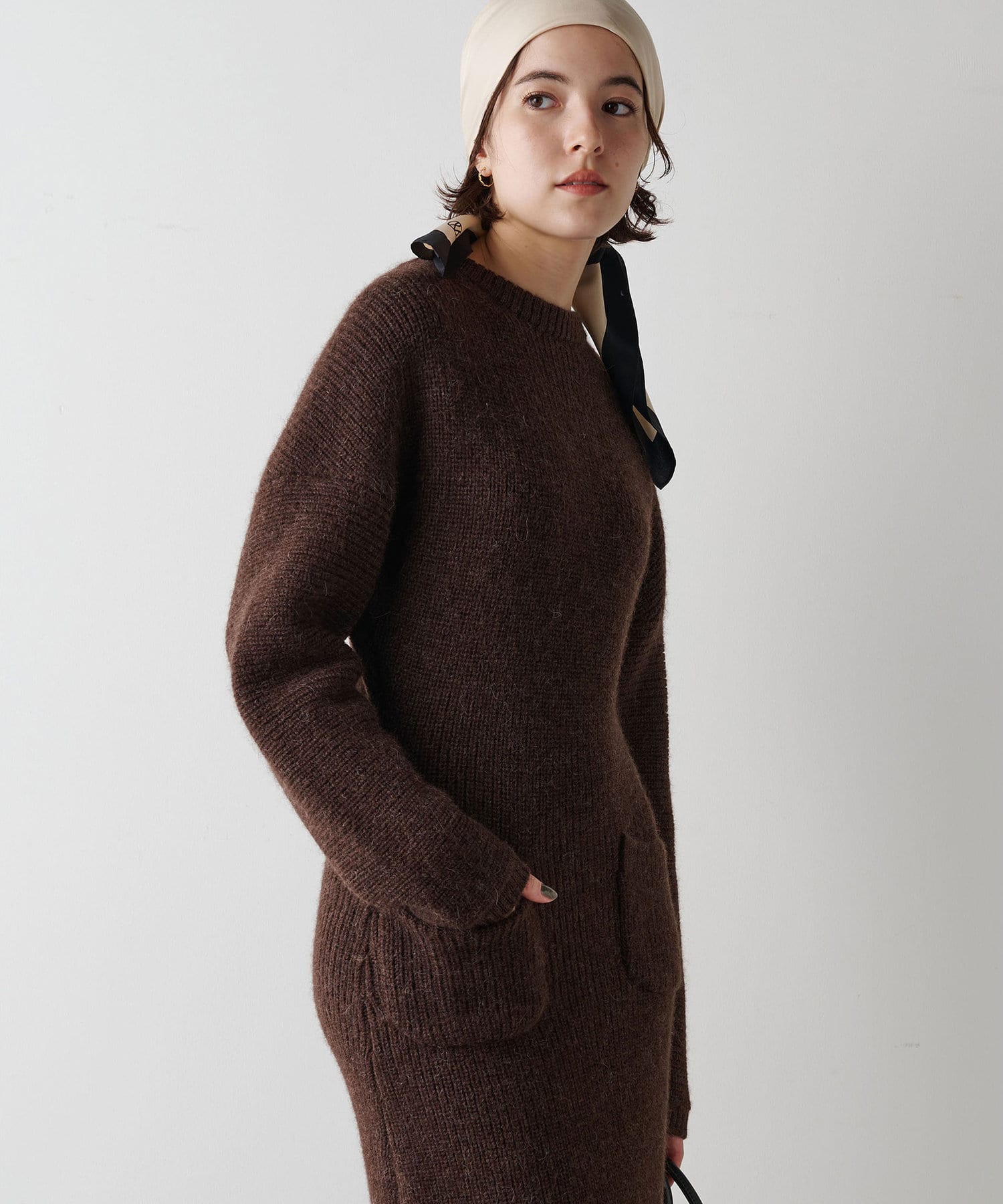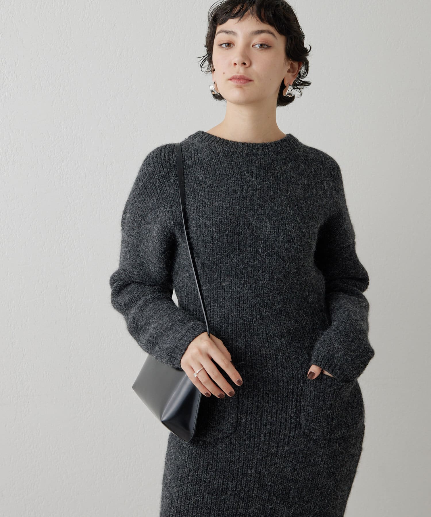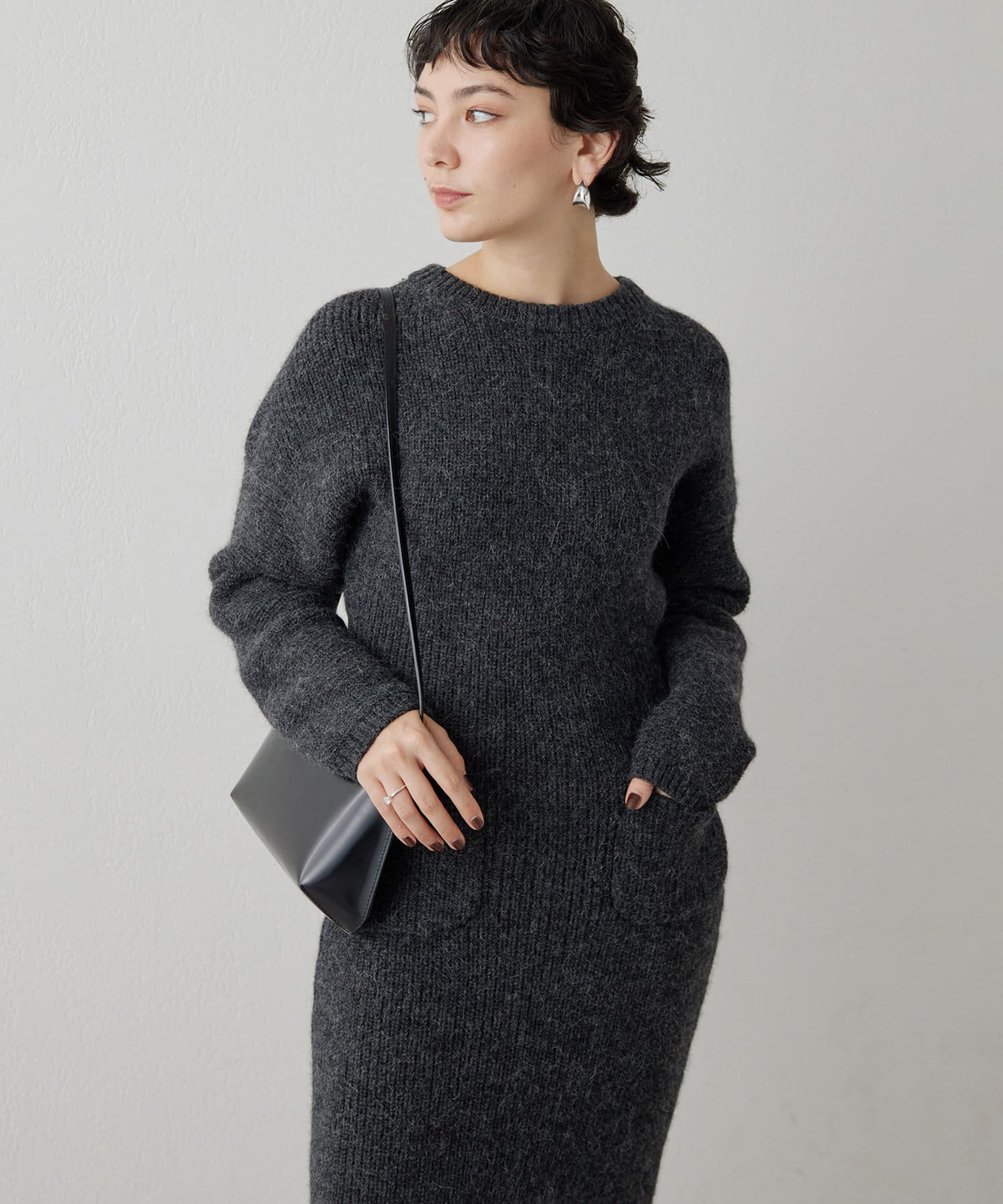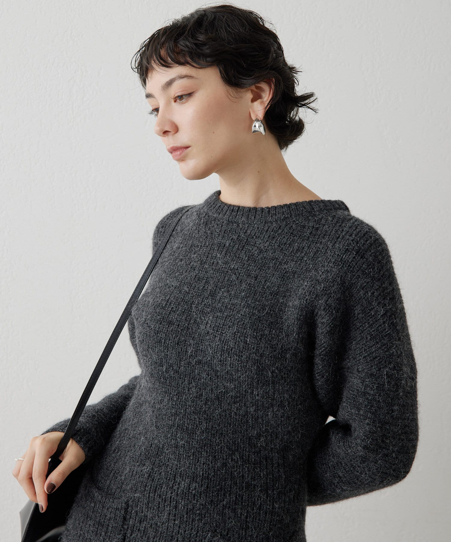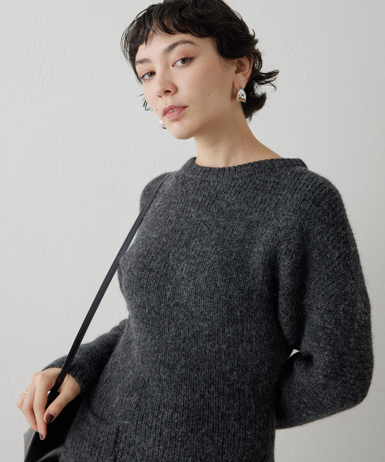 ■身幅はたっぷりとウエストで引き締め、美しい構築的なシルエットの女性らしいフォルムに編み立てた一枚。