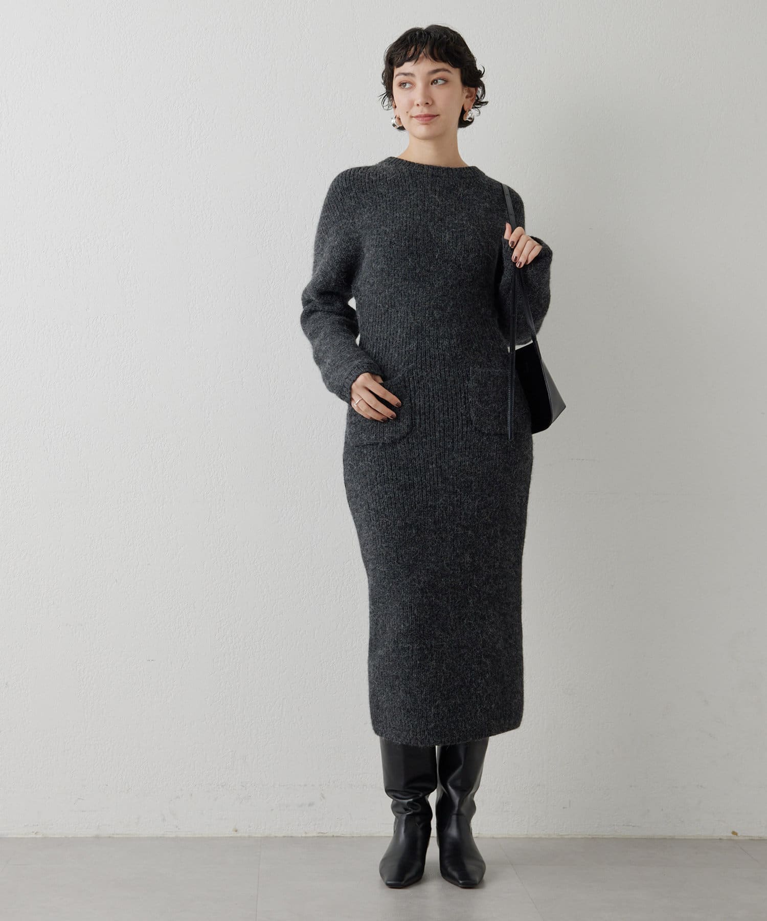 女性らしさが引き立つ、立体シルエットのニットワンピ