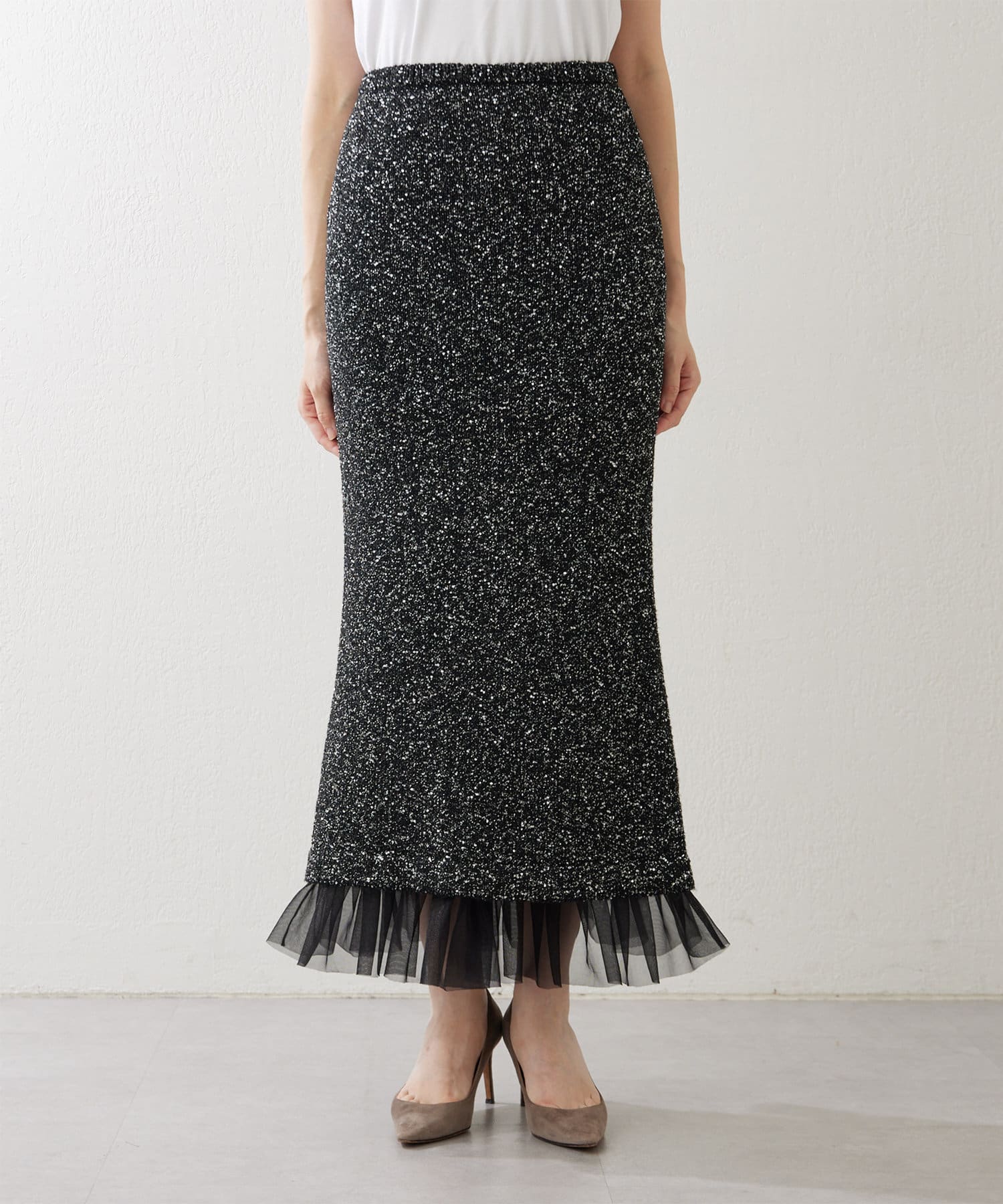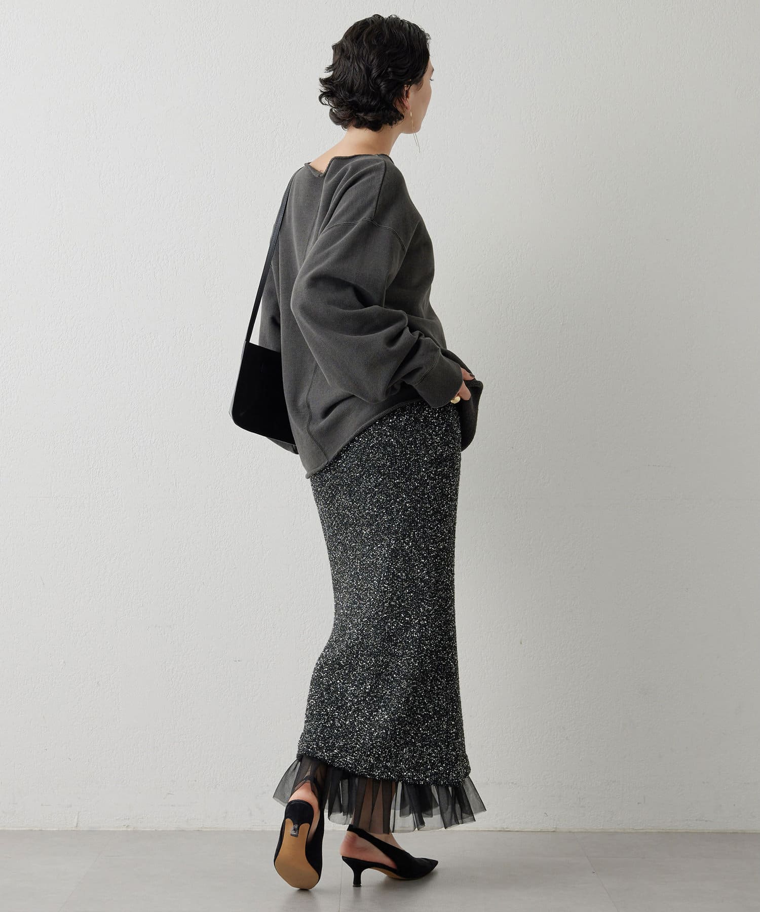 着方のアレンジを楽しめる、スパンコールニットスカート