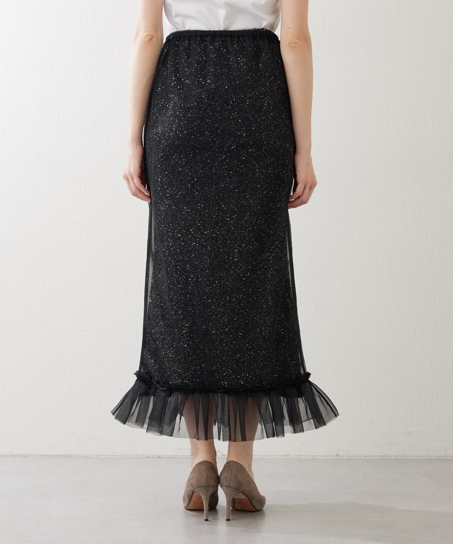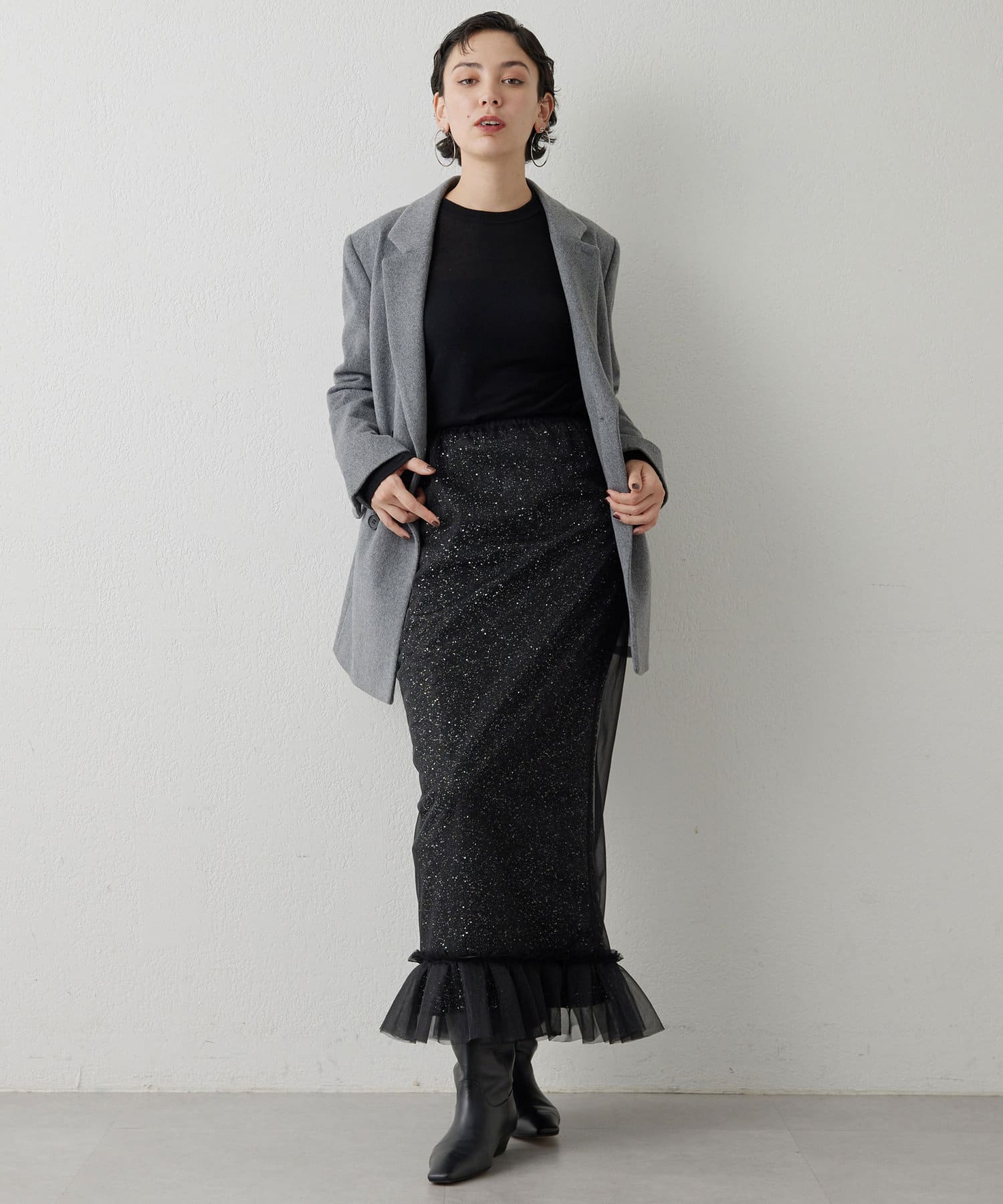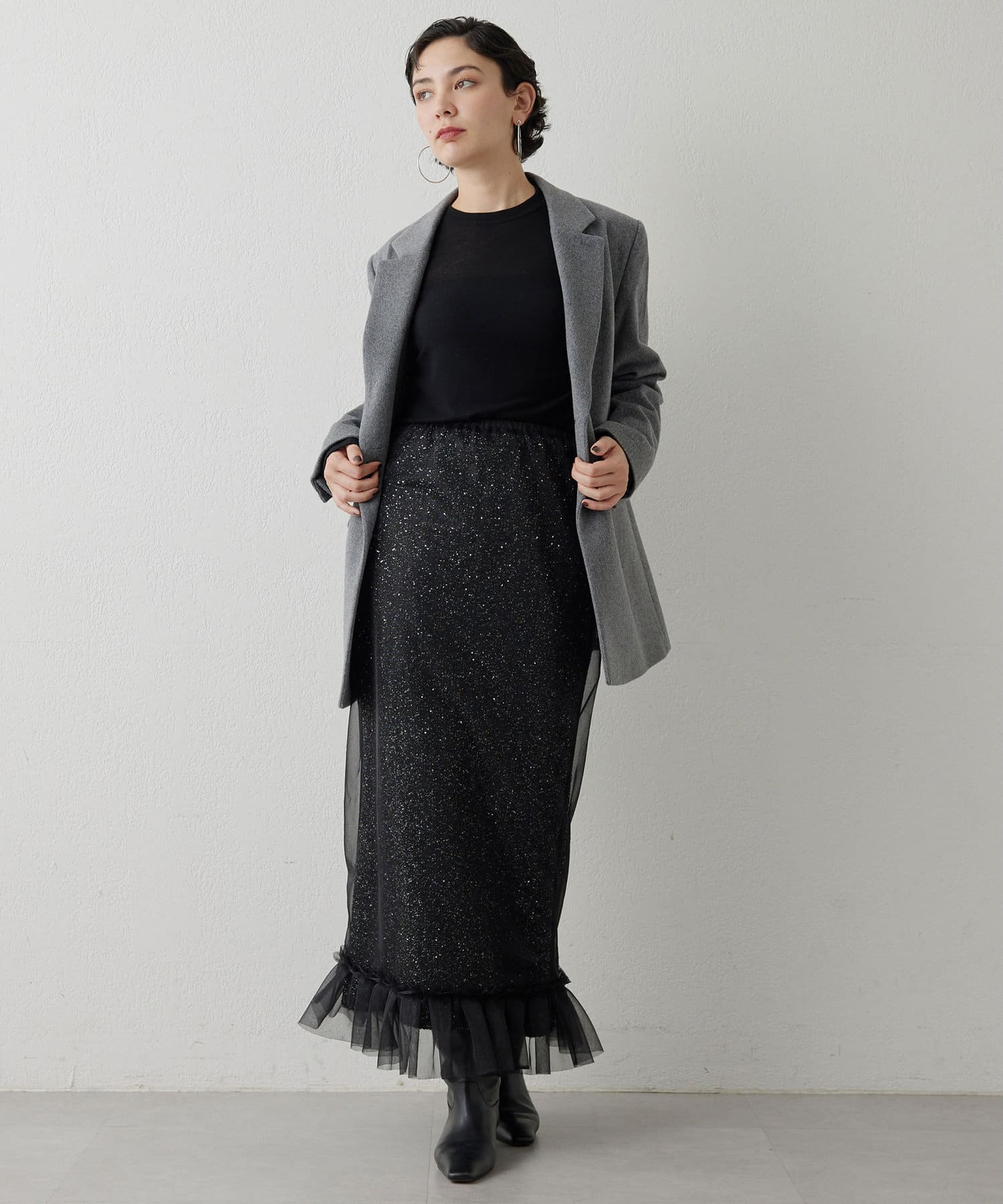 ■オーガンジーのフリルを裾から覗かせたり、オーガンジースカートをニットスカートの上に重ねても◎。
