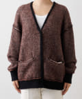 シャギー糸を混ぜているので表情があり、羽織るだけでこなれて見えます!ヒップをカバーする着丈で程よくゆるっと着られます。上からアウターは羽織れるくらいなので、真冬まで着られますよ。少し辛口なデザインなので、女性らしいアイテムに合わせるのがおすすめです。