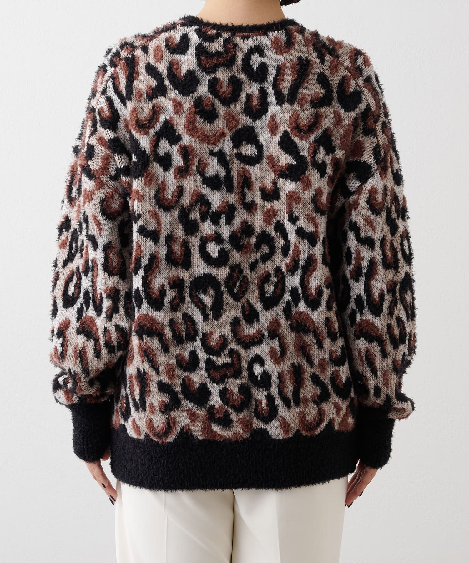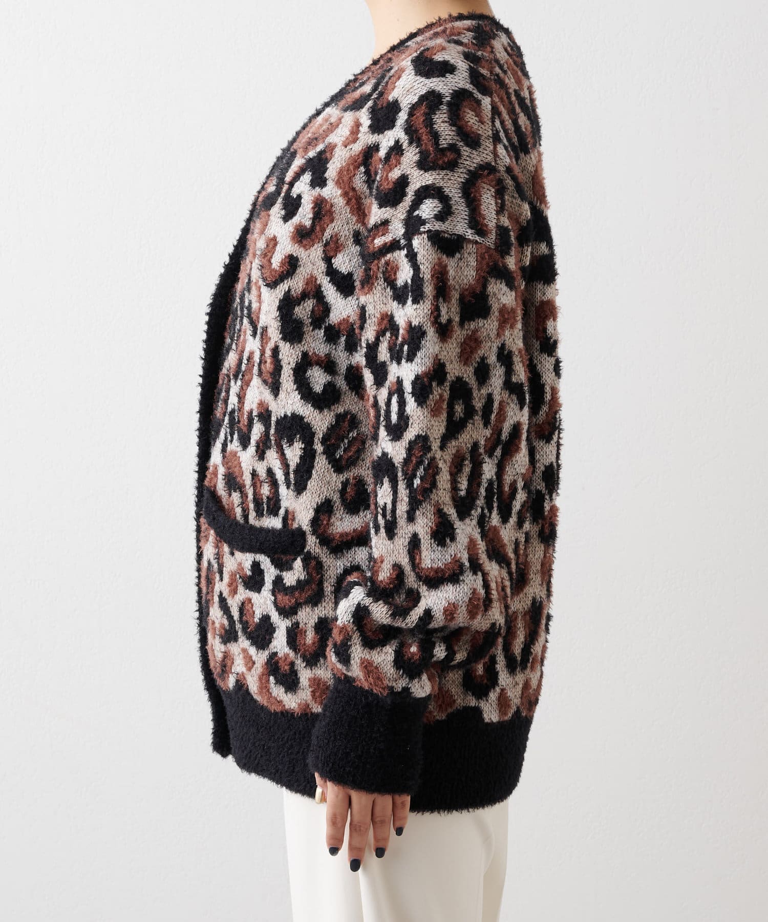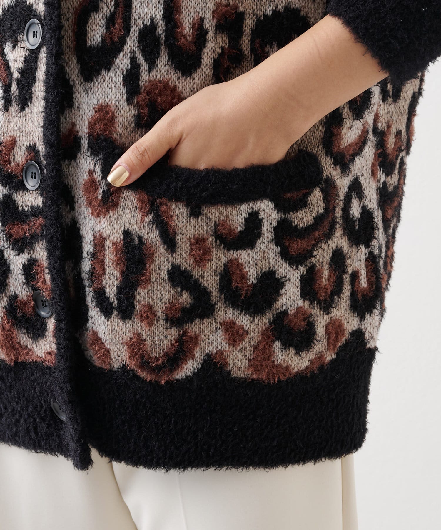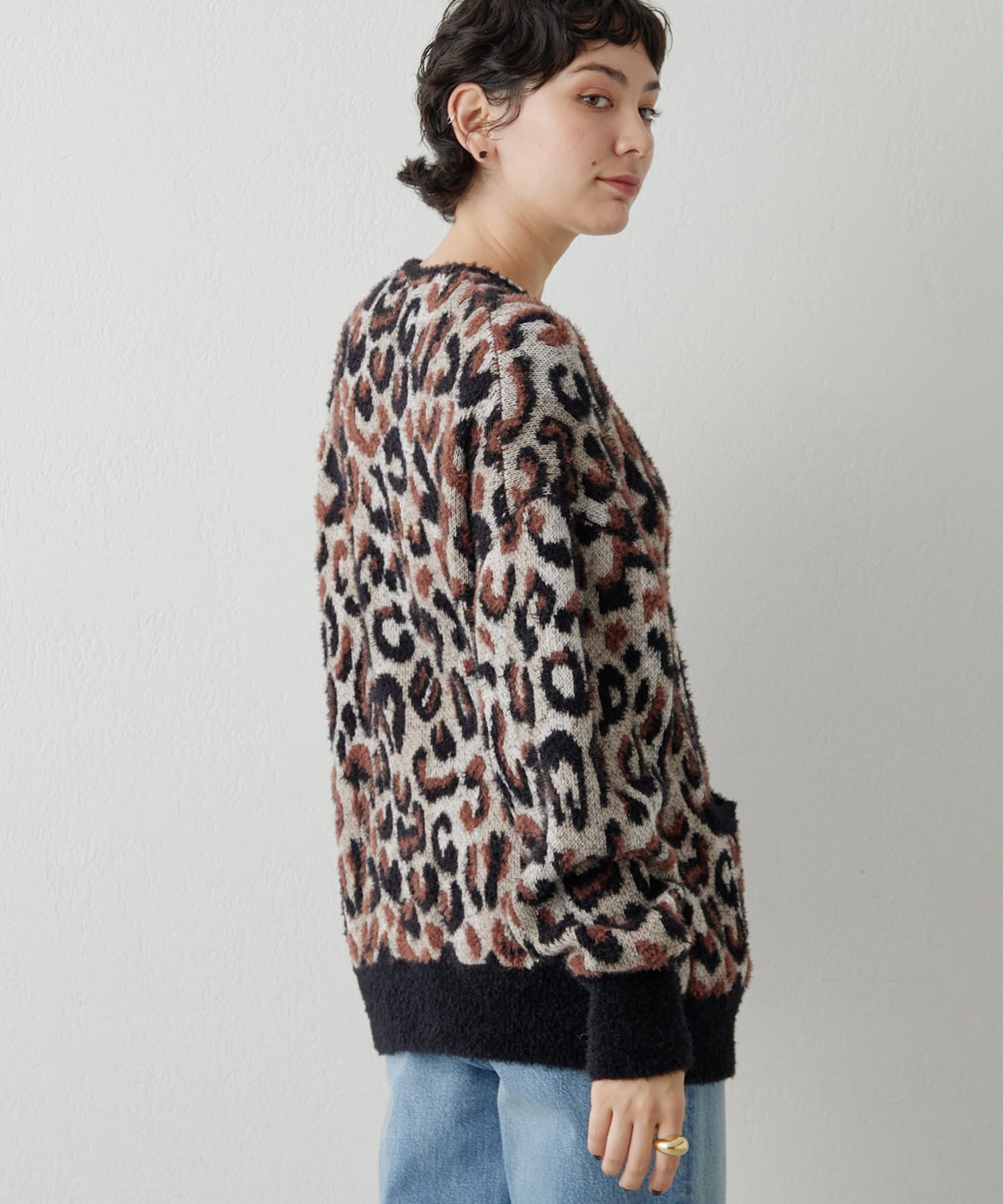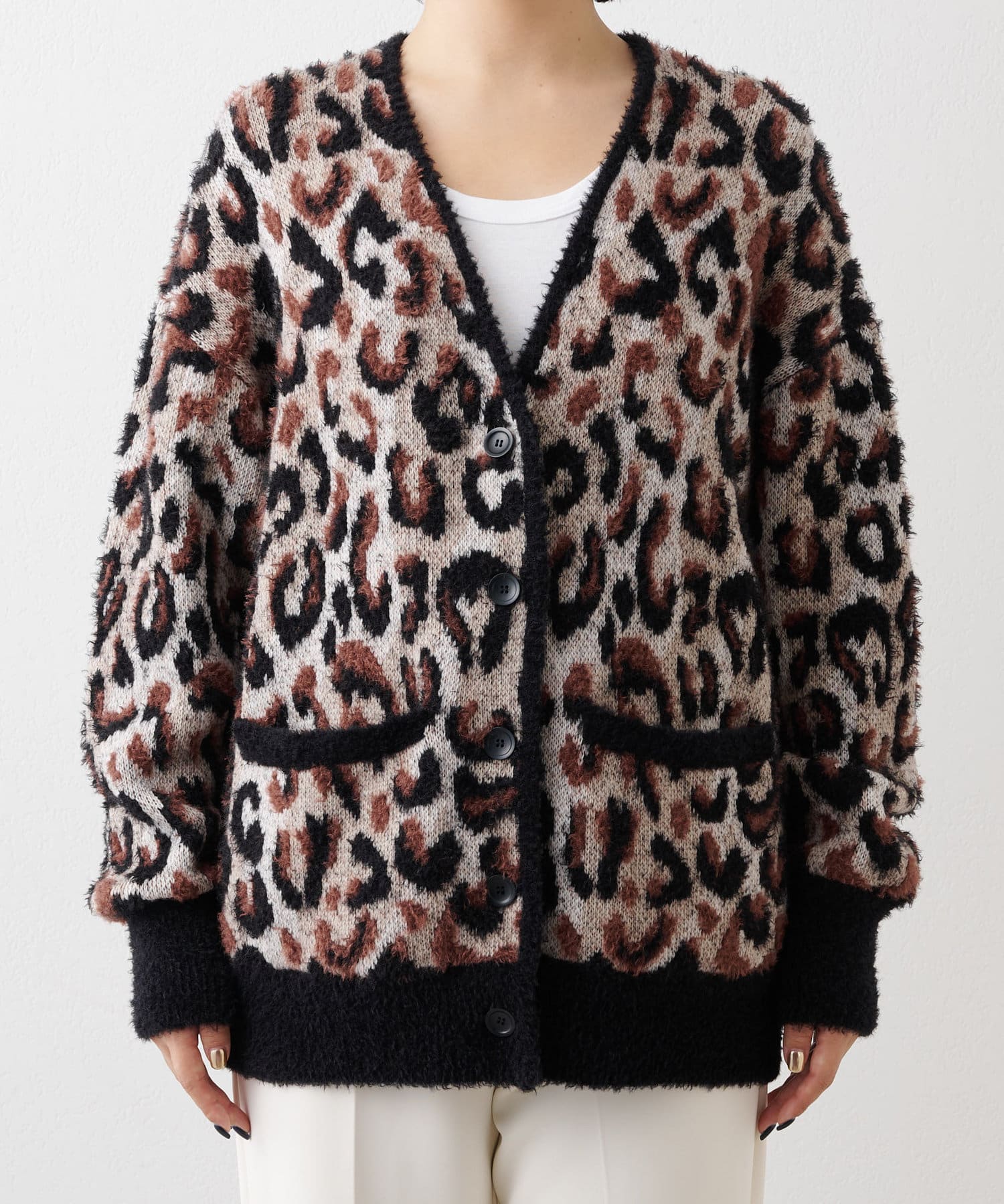 ■大柄のレオパード柄がポイントのニットカーディガン。