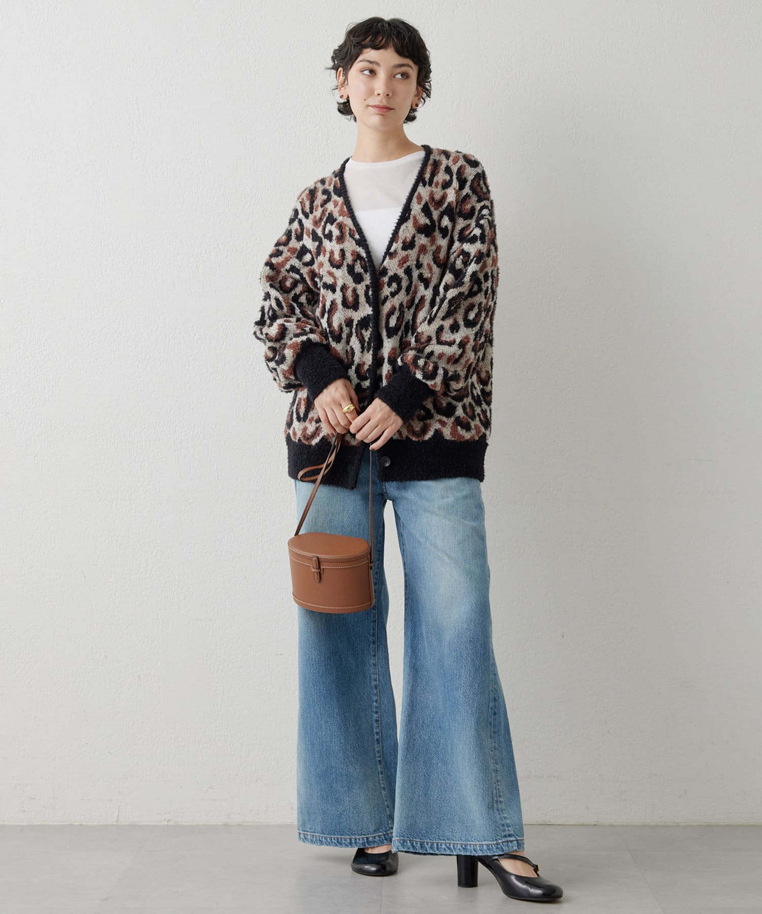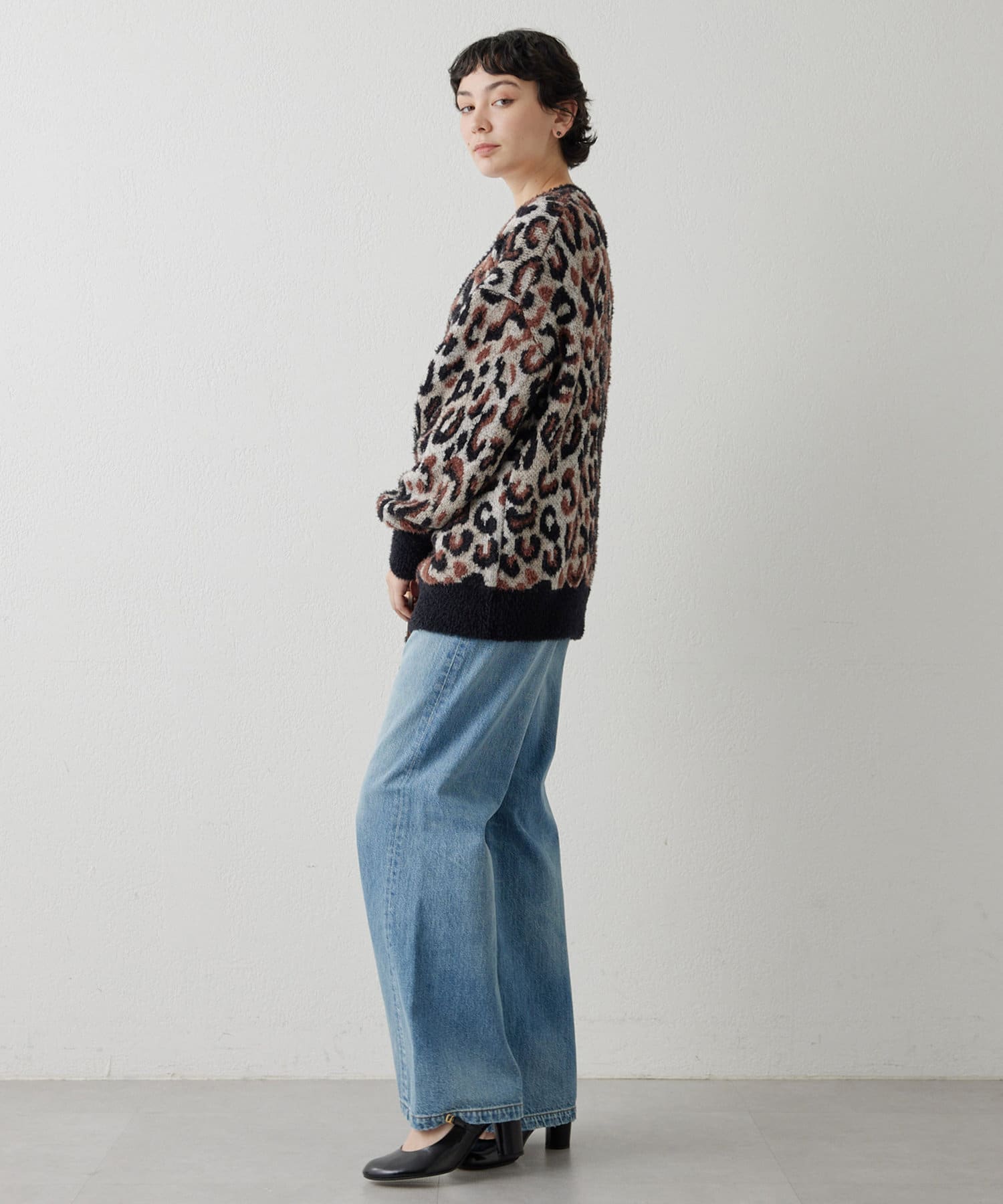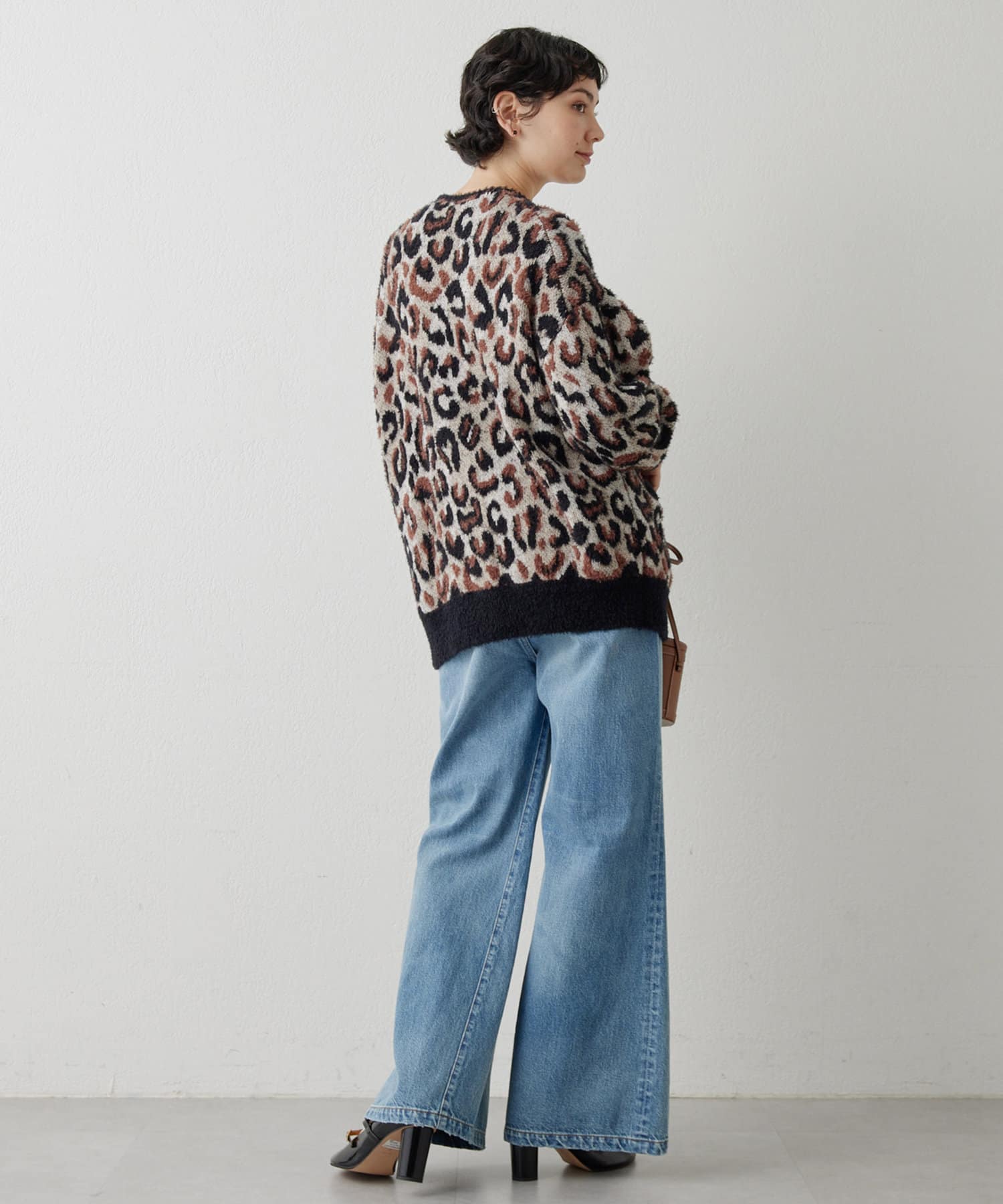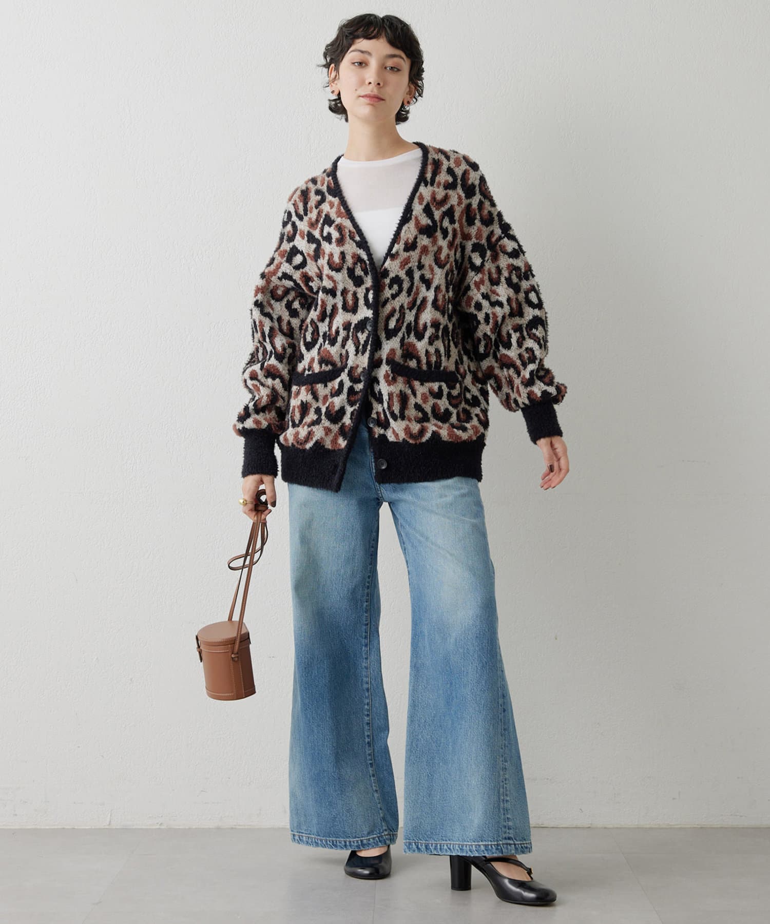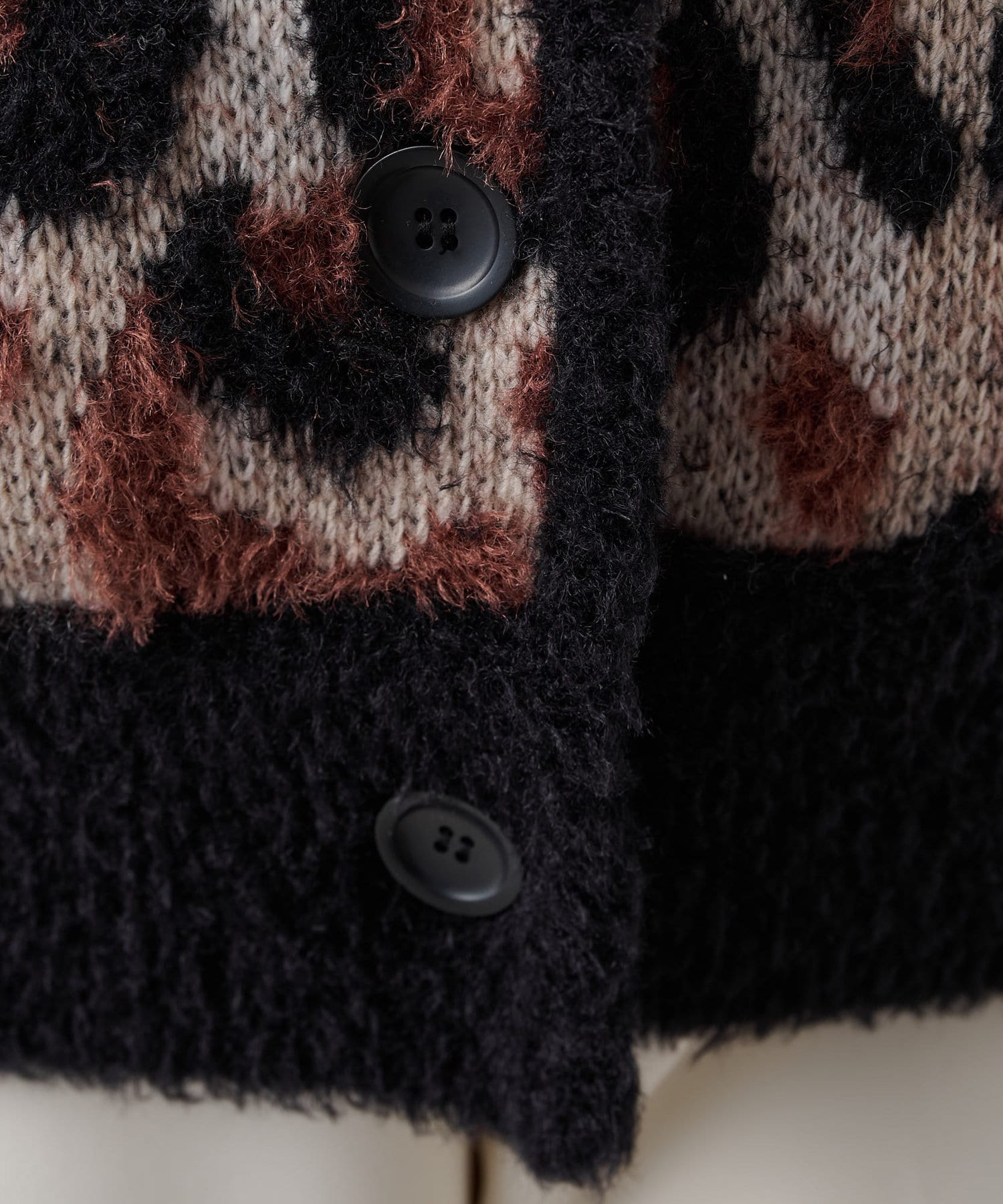 ■大柄のレオパード柄がポイントのニットカーディガン。