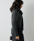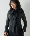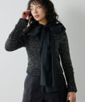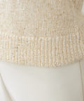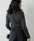 スパンコール入りのペーパーモール・ウール混のループ糸・ストレッチ性の強いポリエステル糸それぞれ特徴の違う3素材を引きそろえて編んでいるニット。