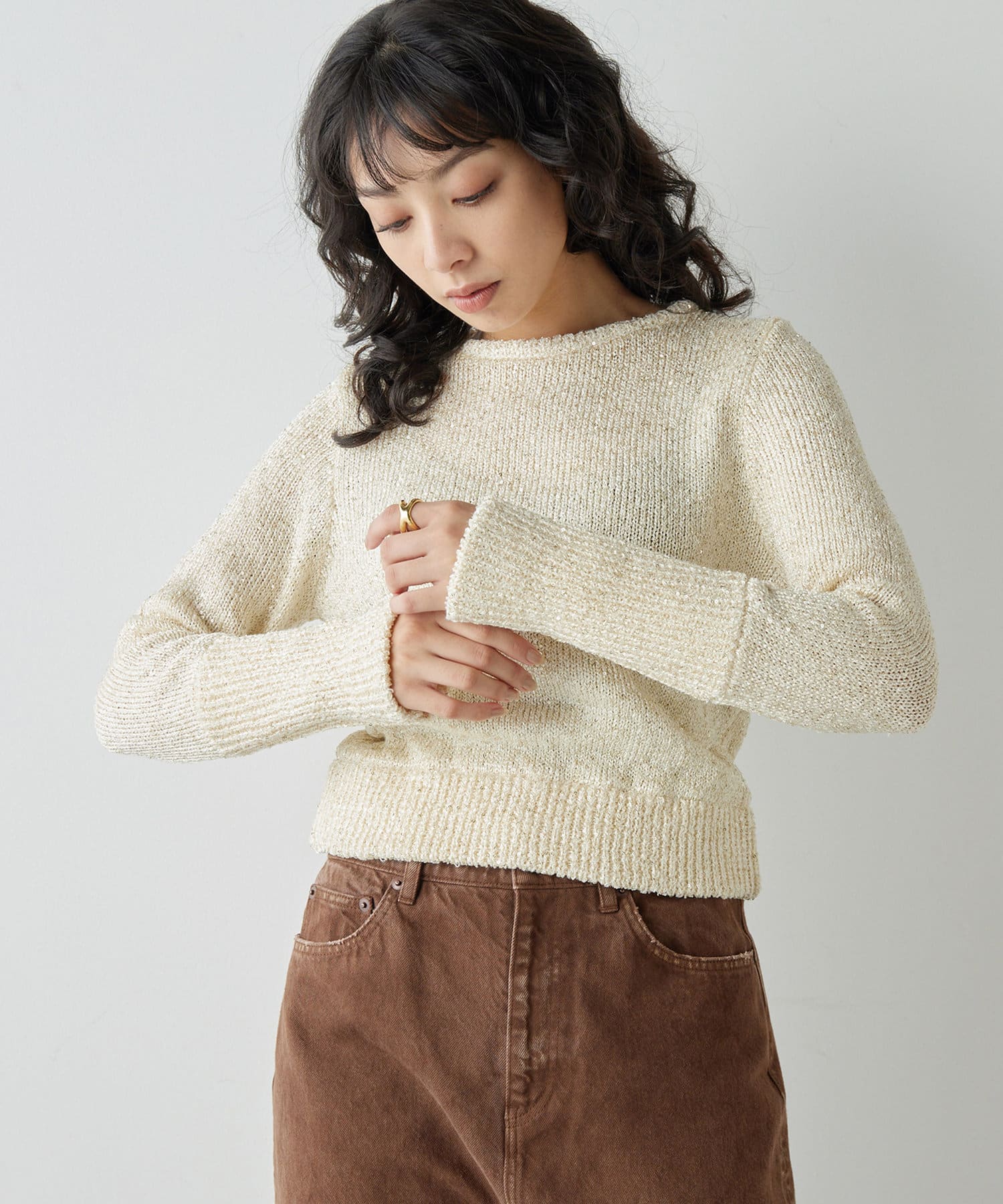 ■スパンコール入りの編地がポイントのニットプルオーバー。