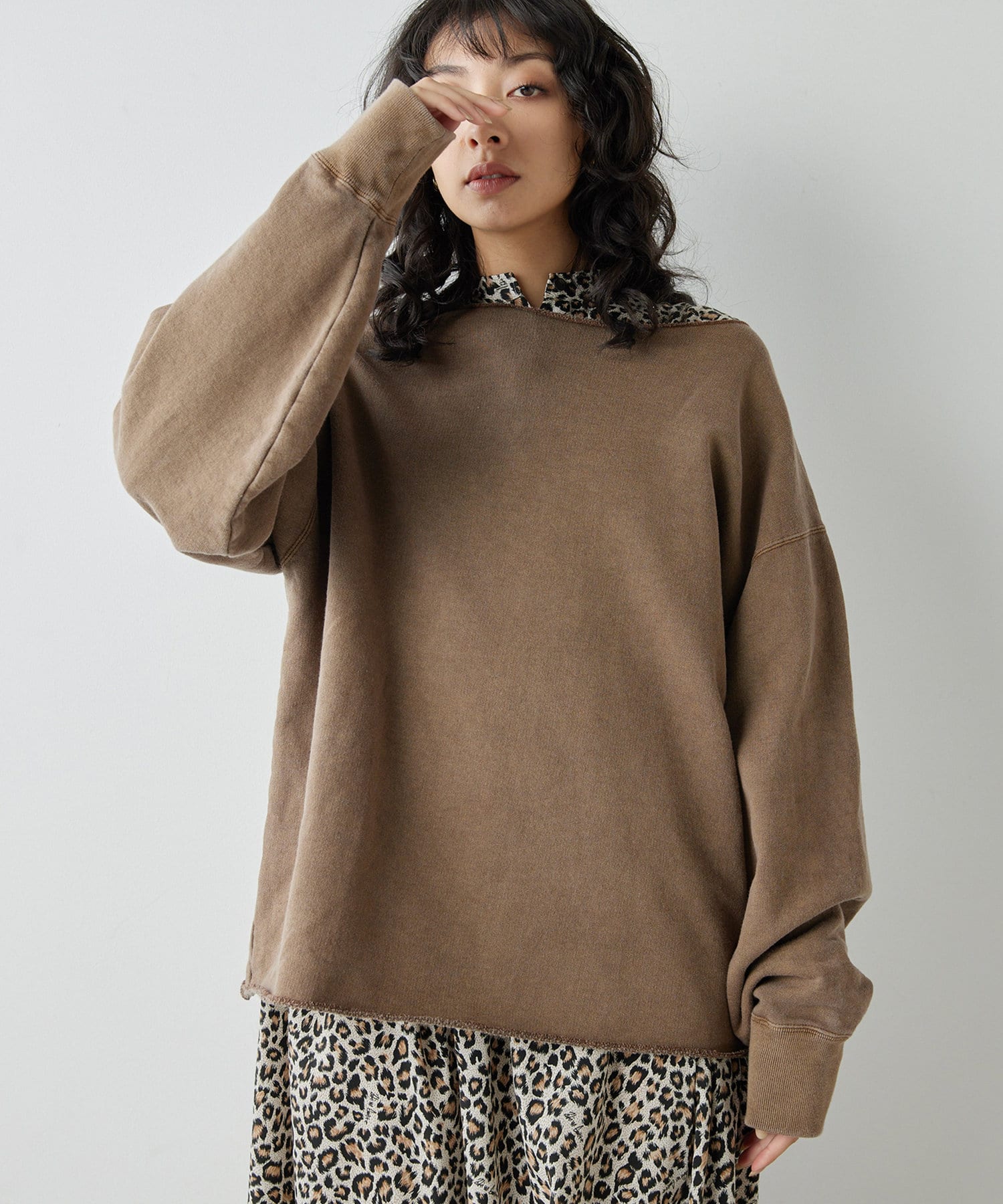 ■ピグメント加工によってヴィンテージ感を表現した裏毛プルオーバー。