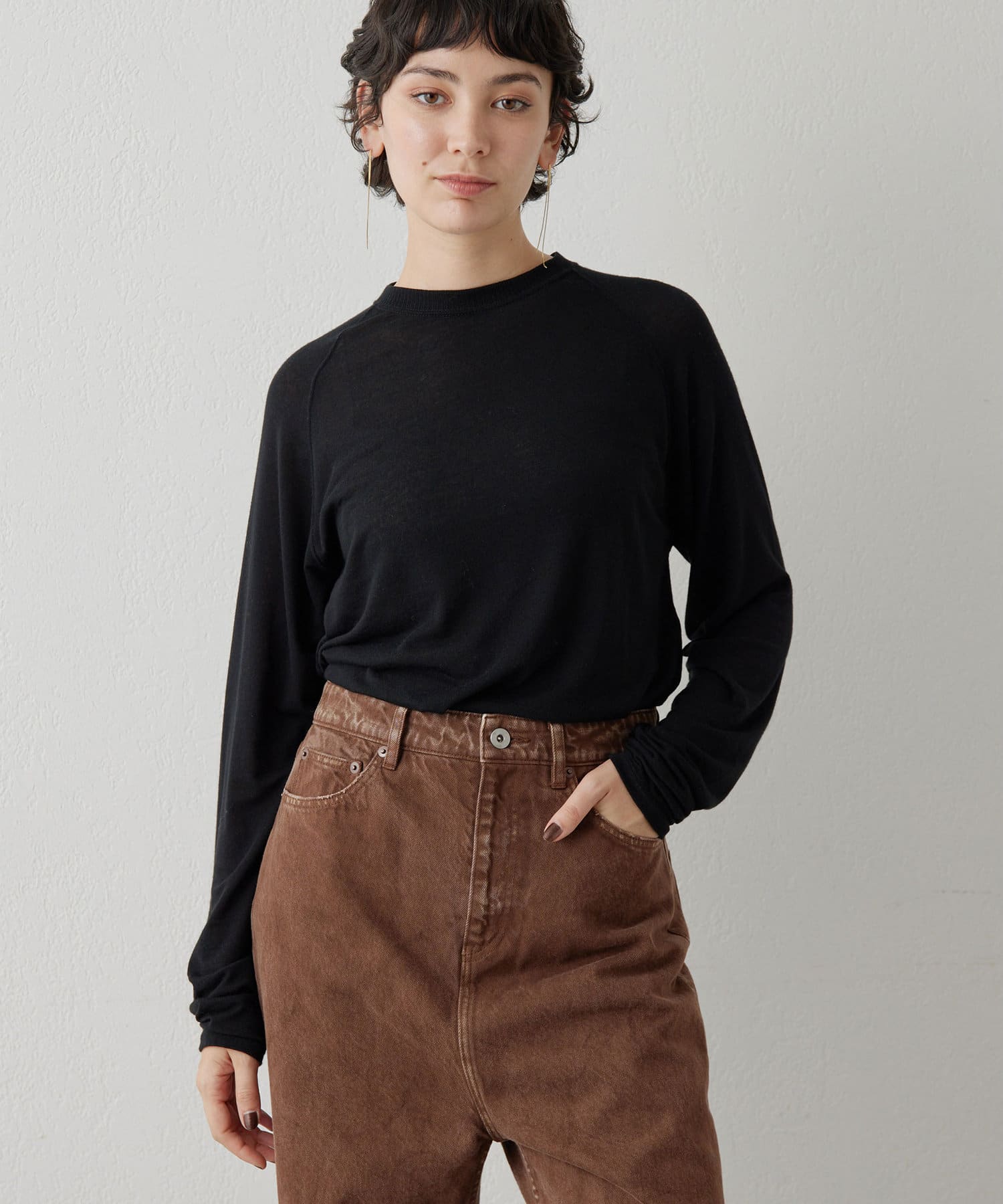 カットソー以上、ニット未満、という感じでしょうか。一枚着としても完成度が高く、インナーにもできる万能トップスです。肌触りの良さにも感激しました。
