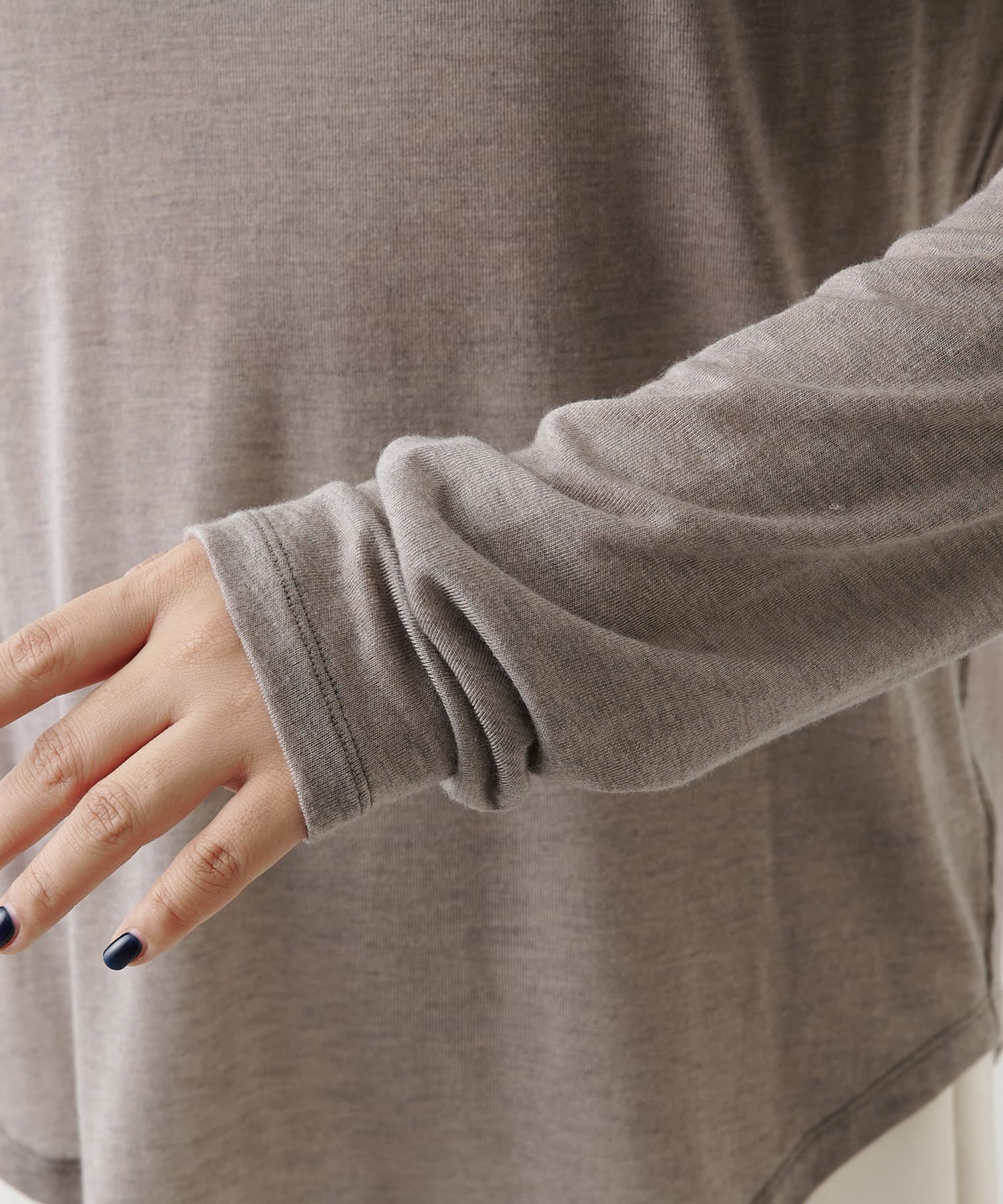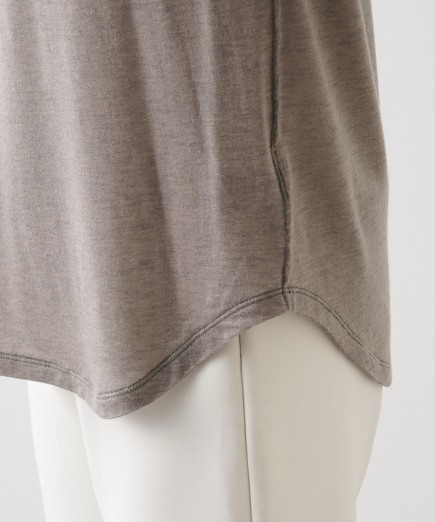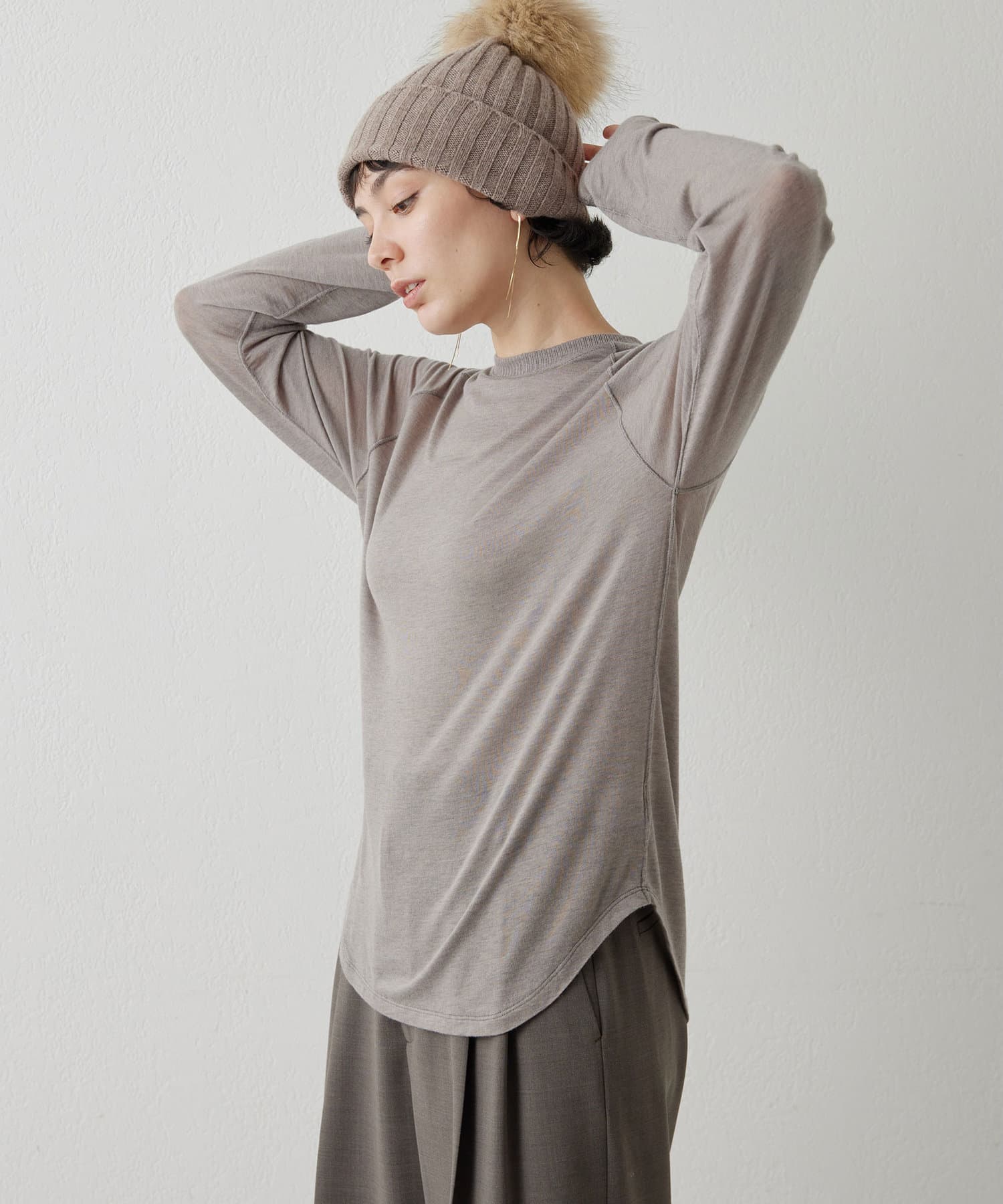 カシミヤとシルクをブレンドした素材でシンプルながらもシルエットの奇麗さと着心地の良さが魅力のカットソー。一枚でもインナーやレイヤードとしても大活躍しそうな一着です。