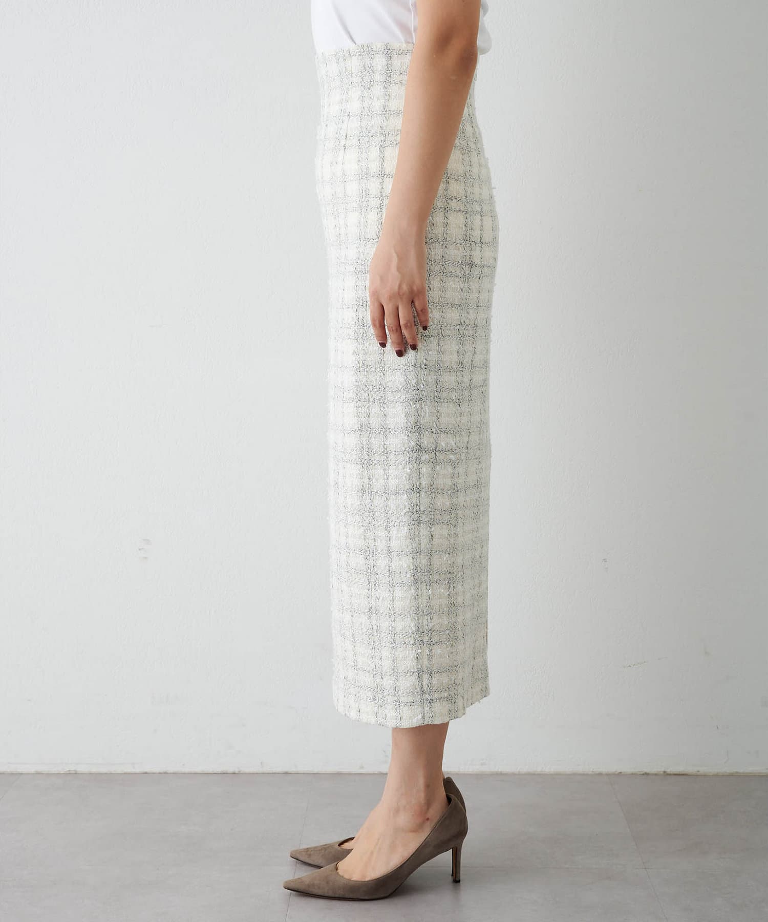 ■スタイルアップを叶えるハイウエストに、深めのバックスリットが抜け感をプラス。
