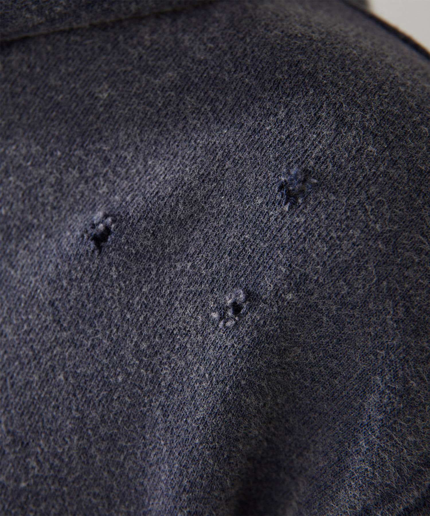 ■パウダーフロスト加工+ グラインダーダメージ加工を施し、部分的に一点一点手作業でリアルなヴィンテージ感を表現。