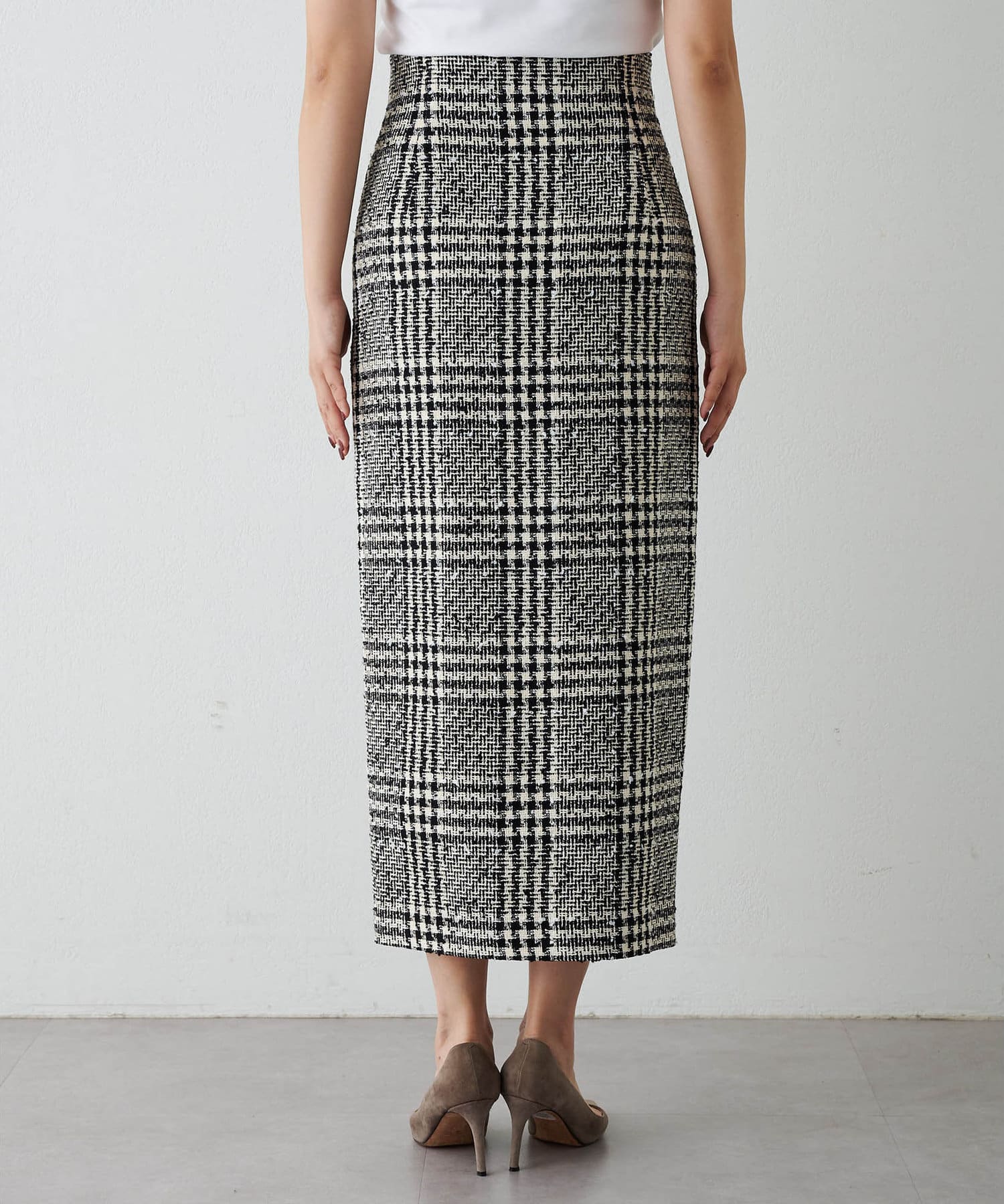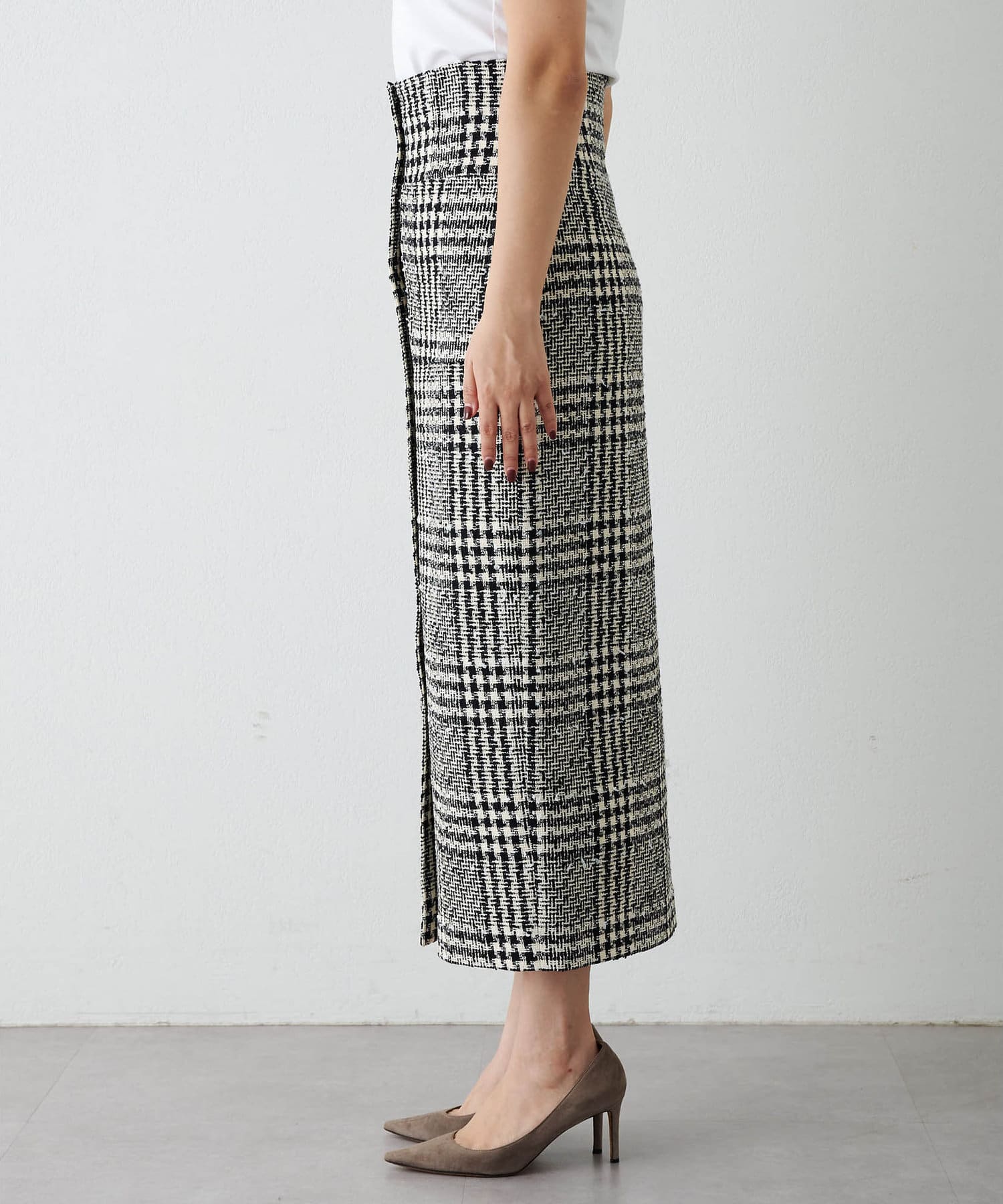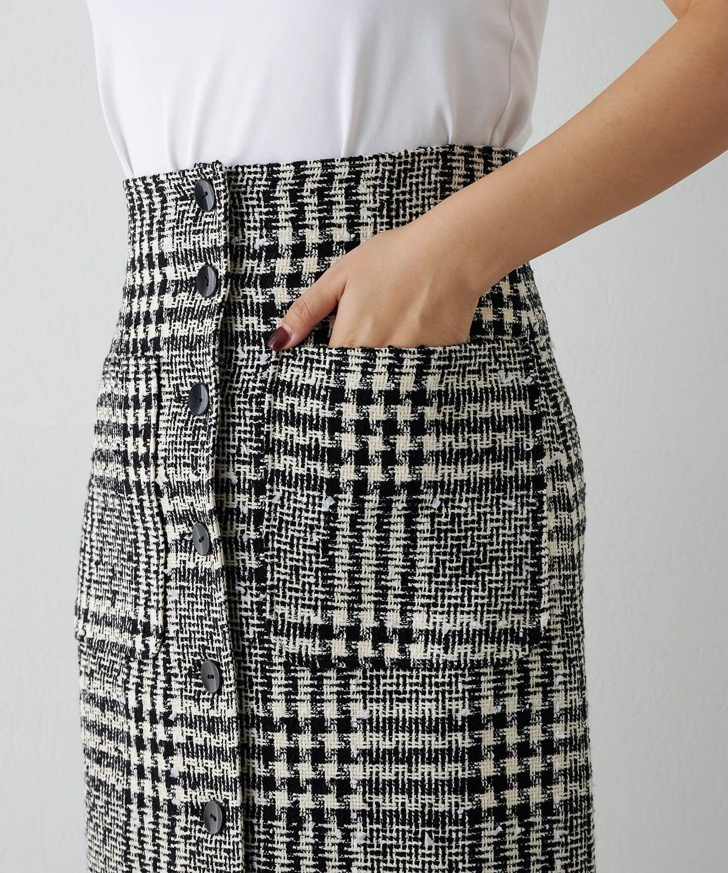 オフホワイト:繊細なチェックの編地が存在感のある白黒カラー。