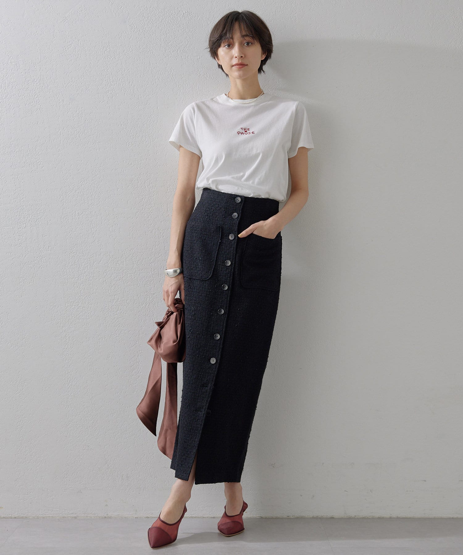 ■シンプルなカットソーやブラウスを合わせるだけでもスタイリングが決まりやすいアイテム。