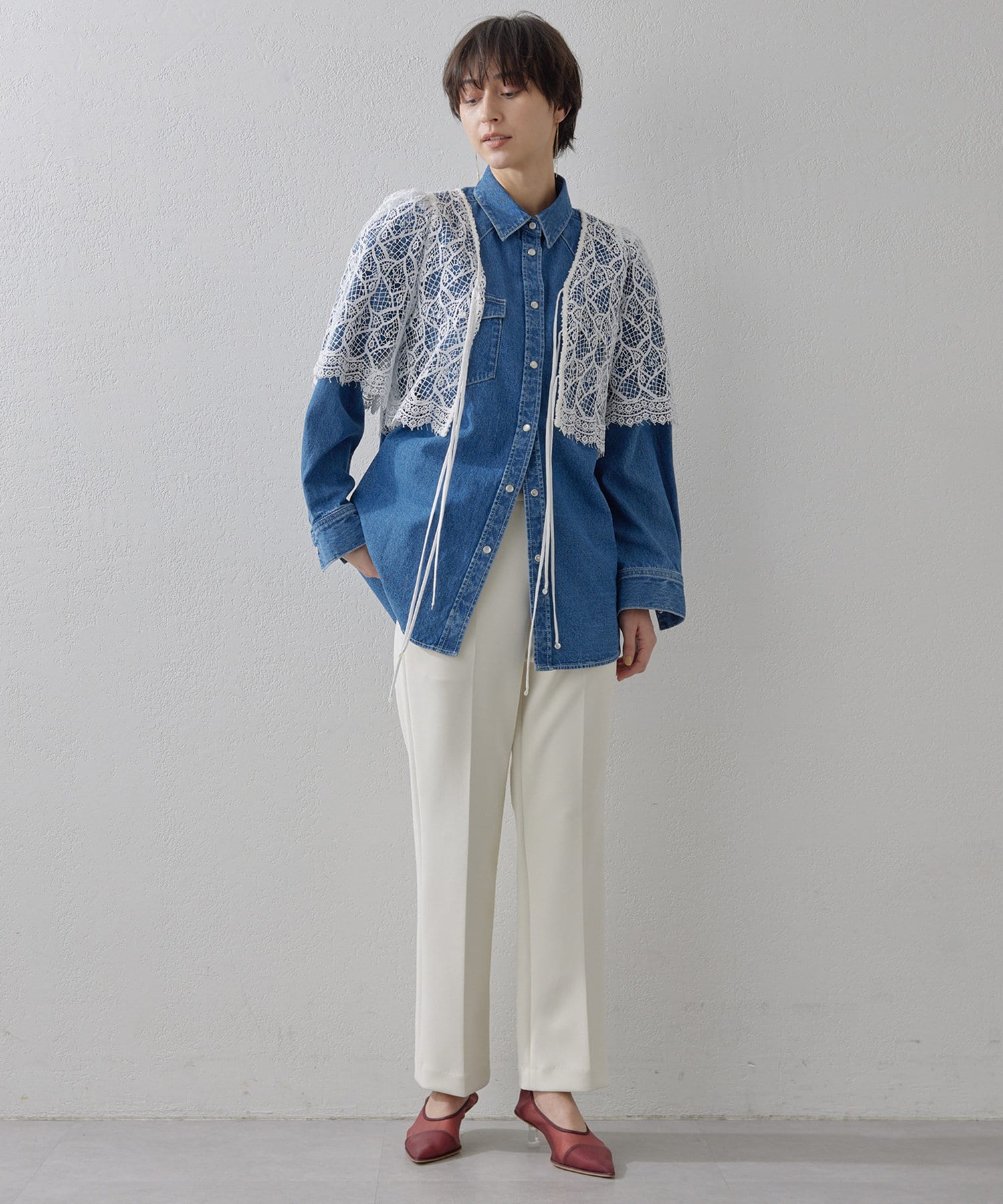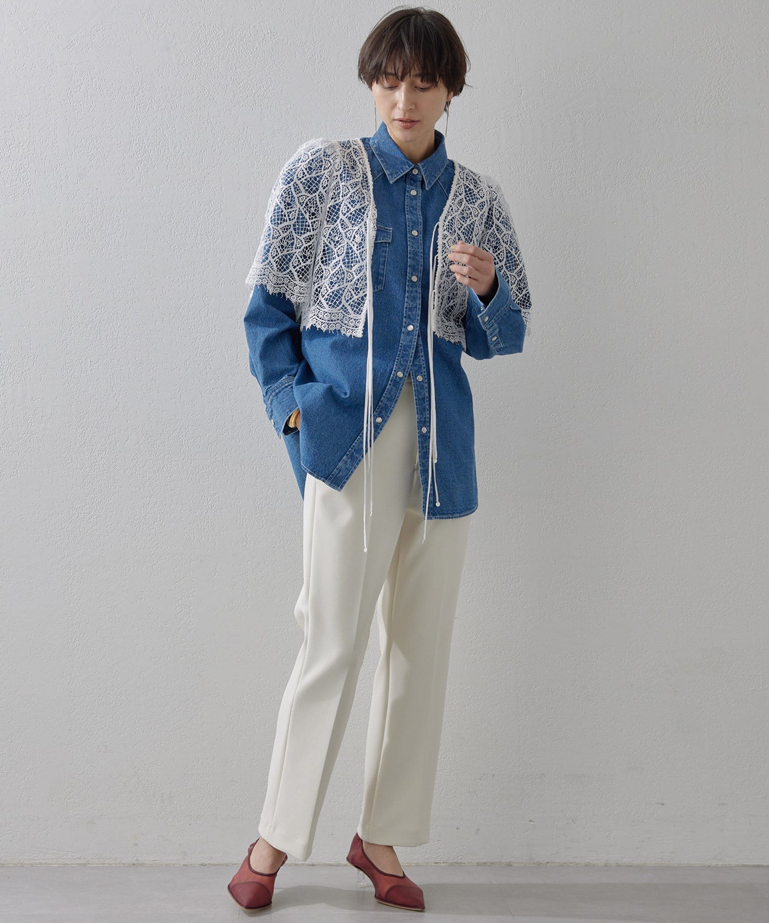 ■カジュアルなトップスに重ねたり、あえてジャケットなど辛めなアイテムにレイヤードするのもおすすめ。