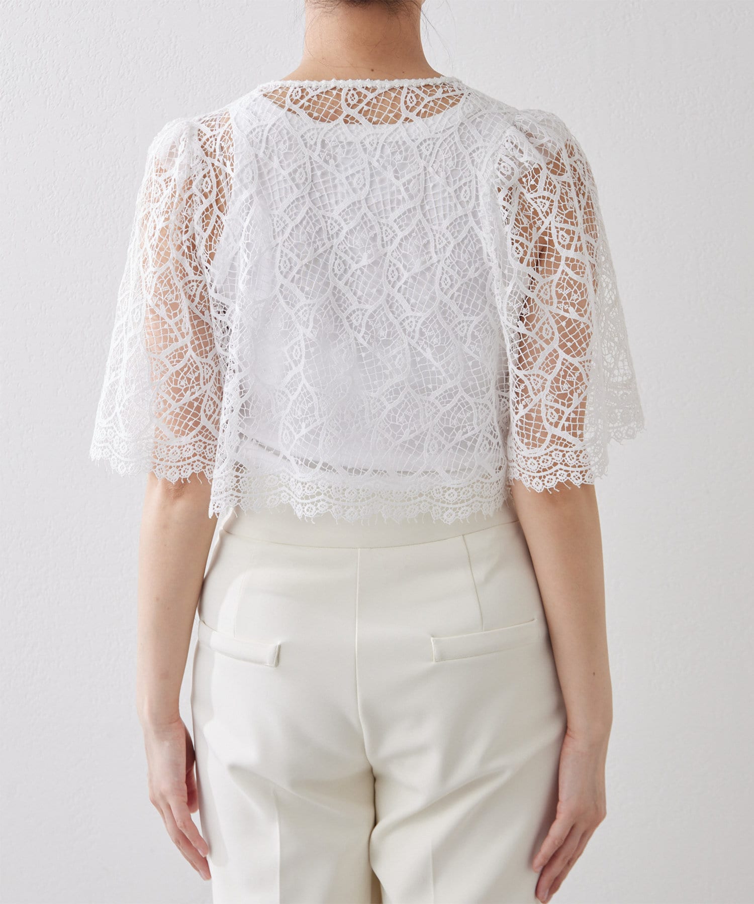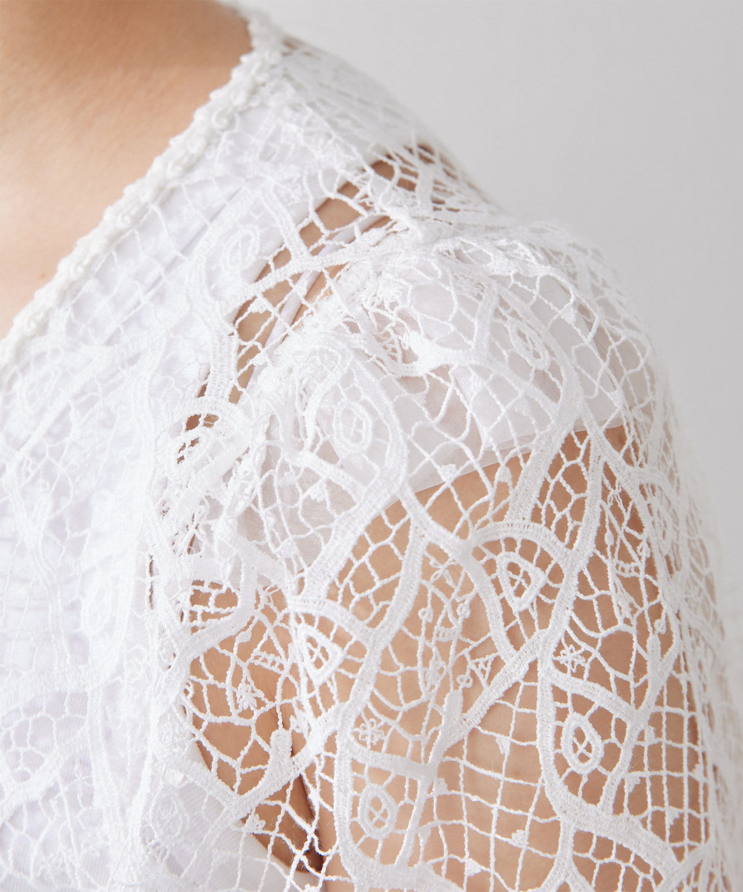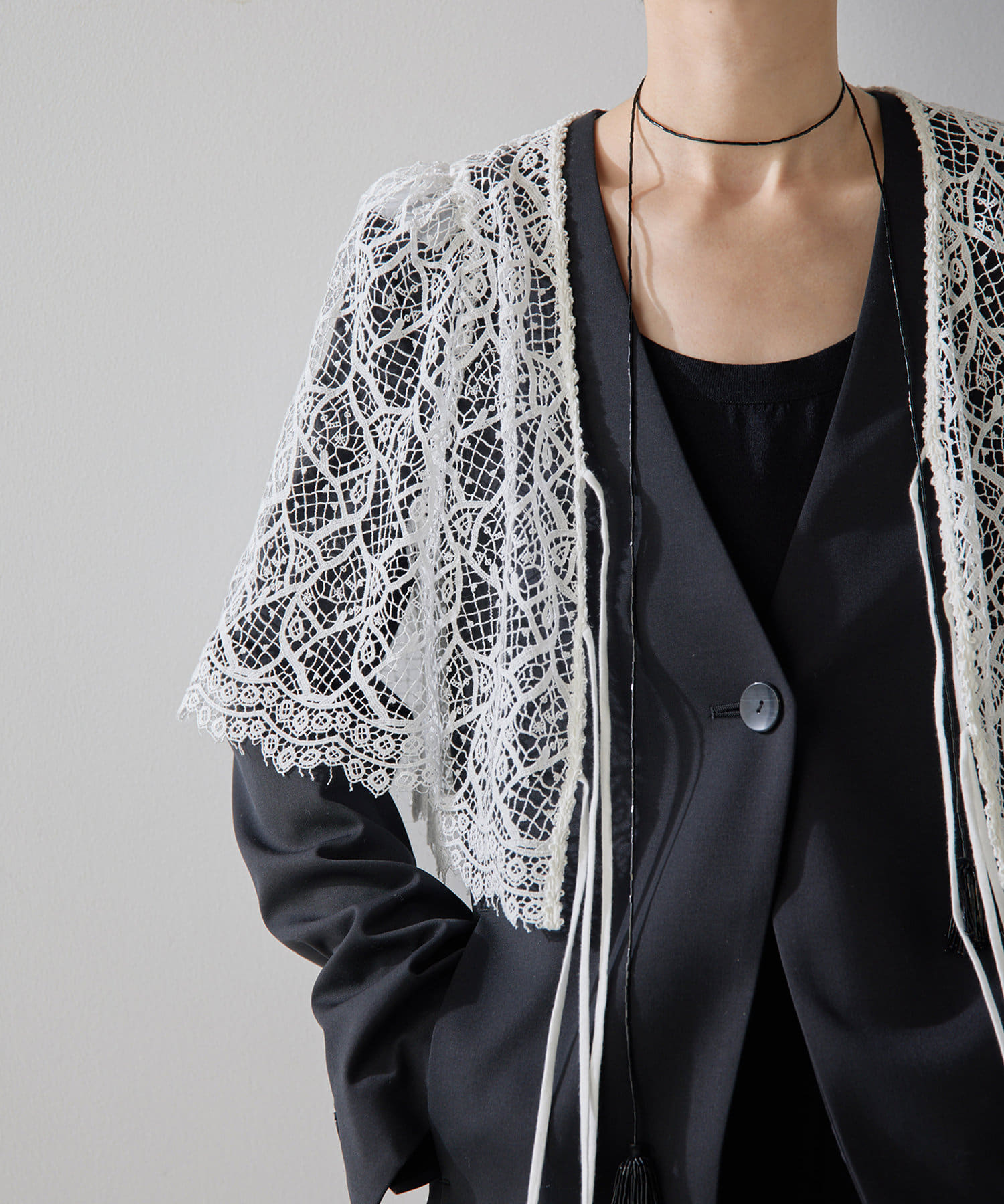 ■絶妙な透け感とヴィンテージ感のあるレース素材を使用したボレロ。