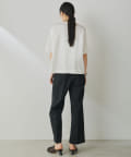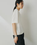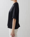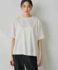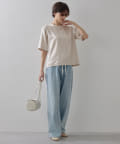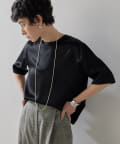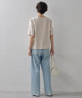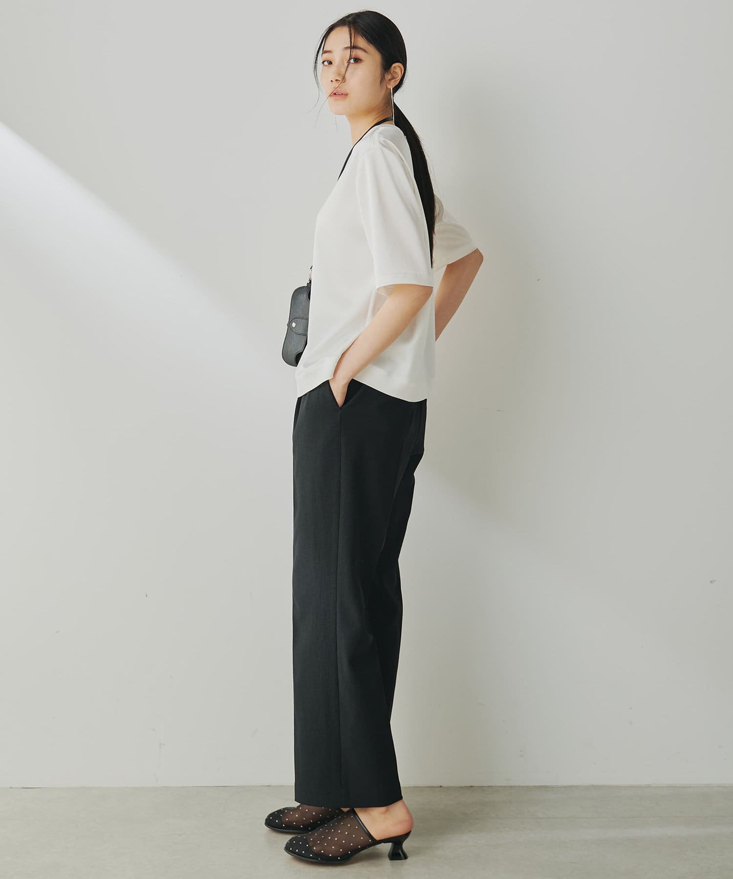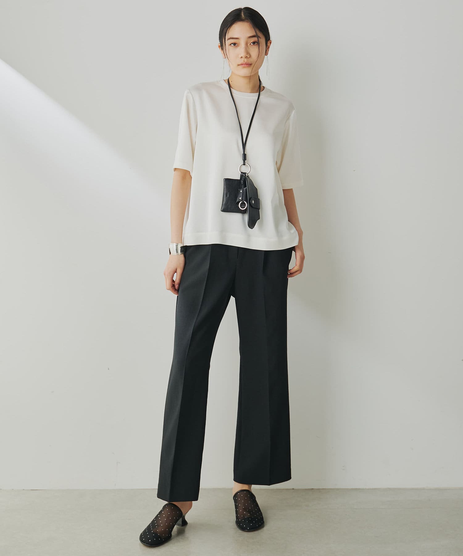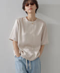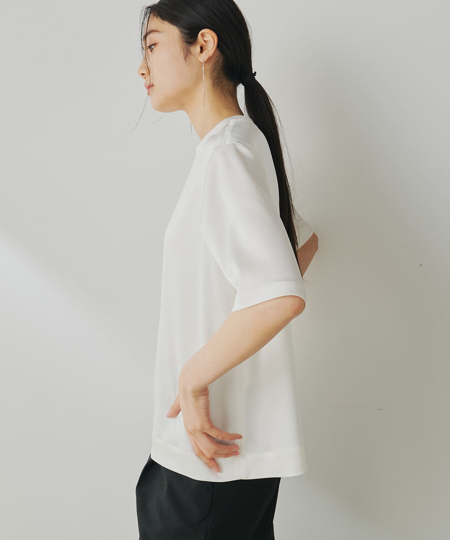 ■Tシャツのように楽しめるクルーネックの半袖ブラウス。