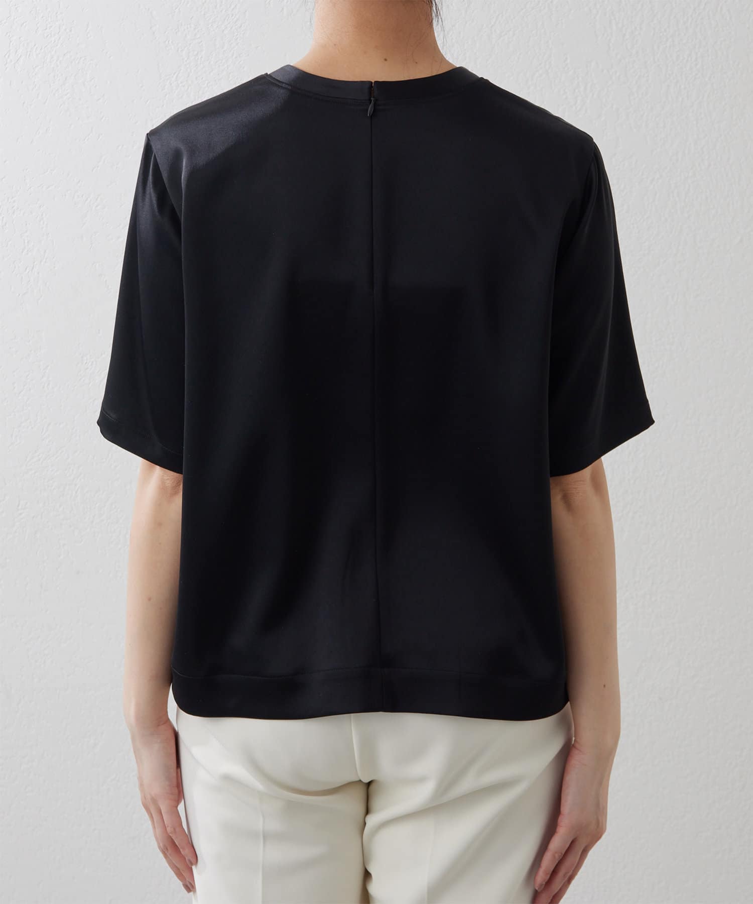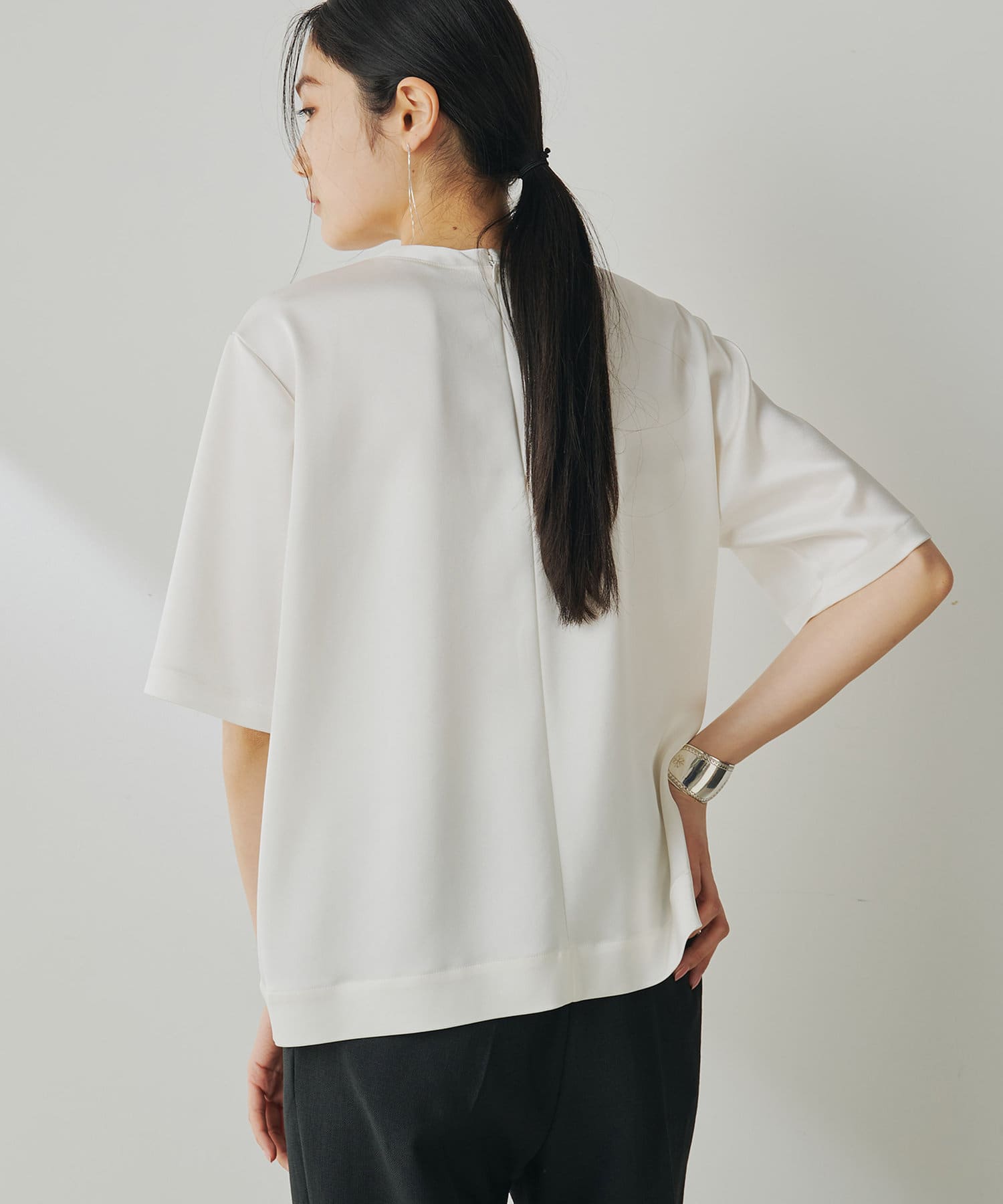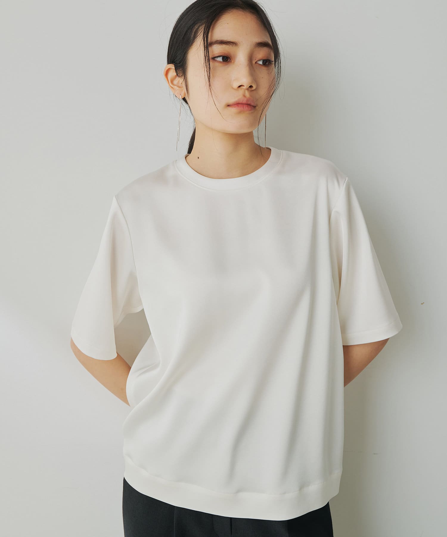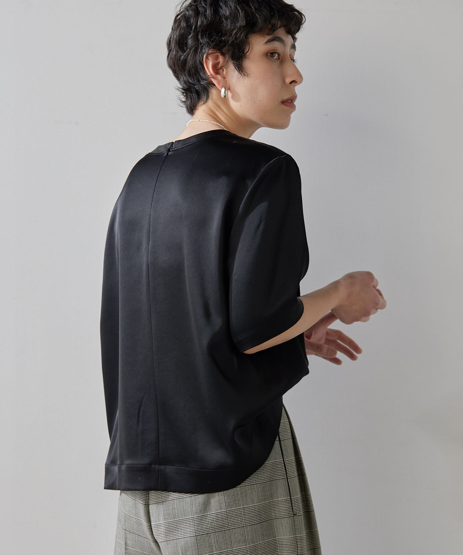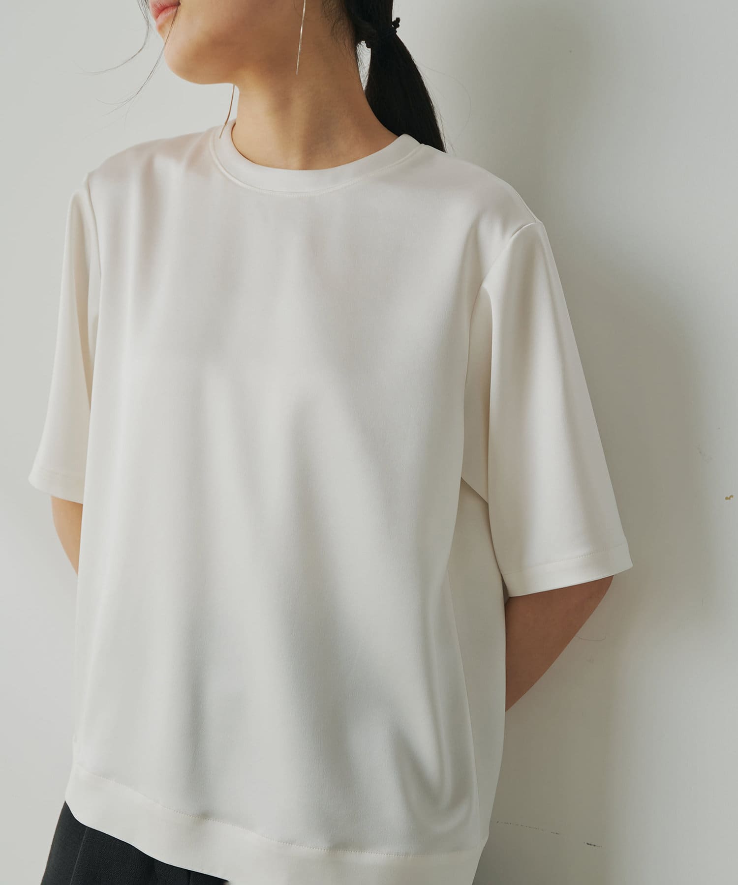 Tシャツ感覚で着たい、サテン素材の半袖TEEブラウス
