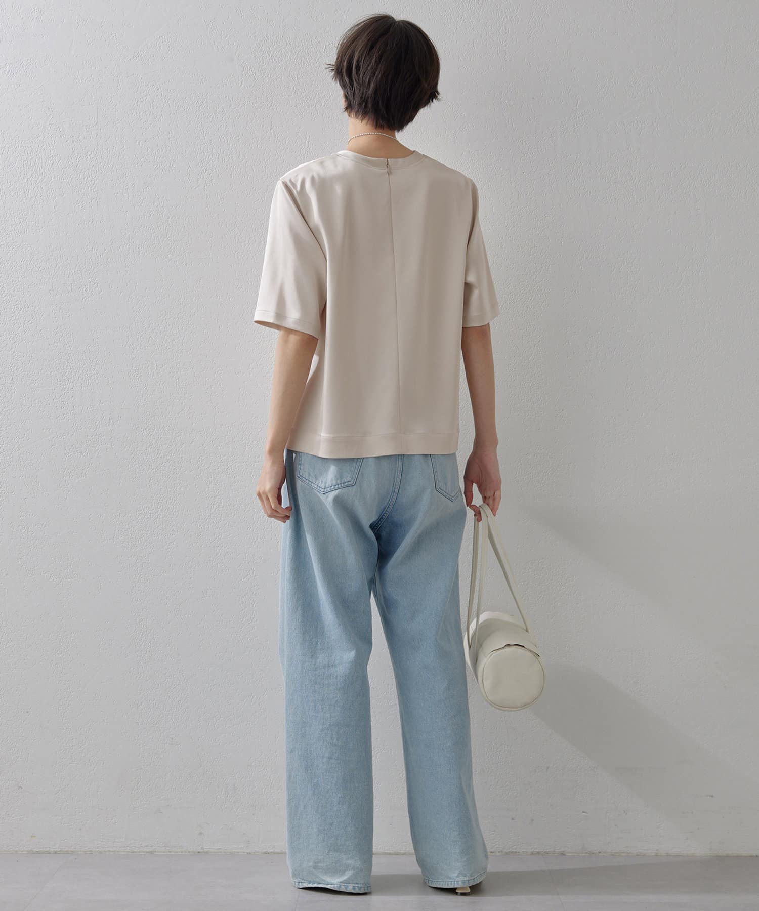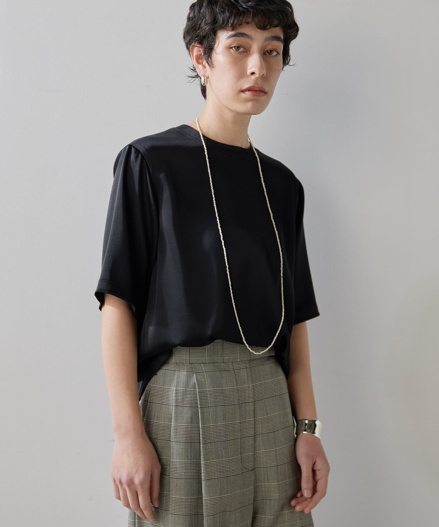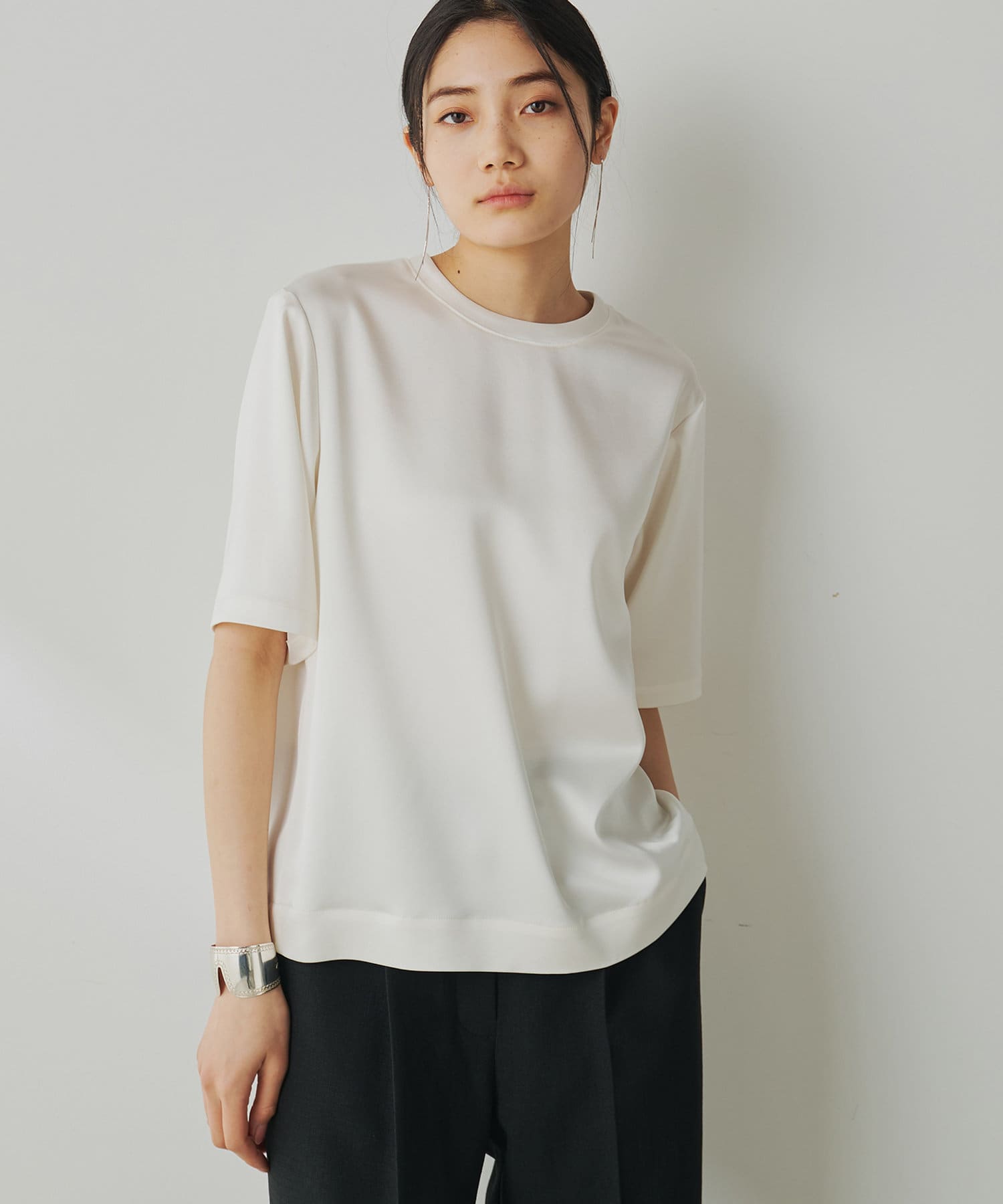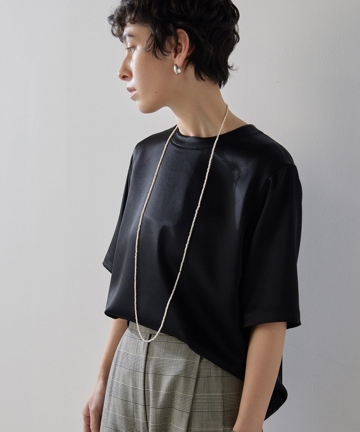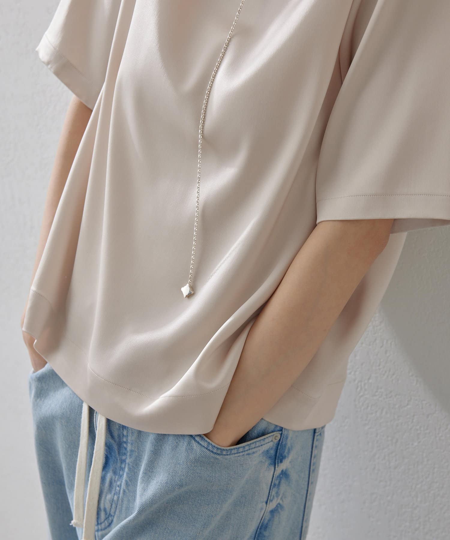Tシャツ感覚で着たい、サテン素材の半袖TEEブラウス