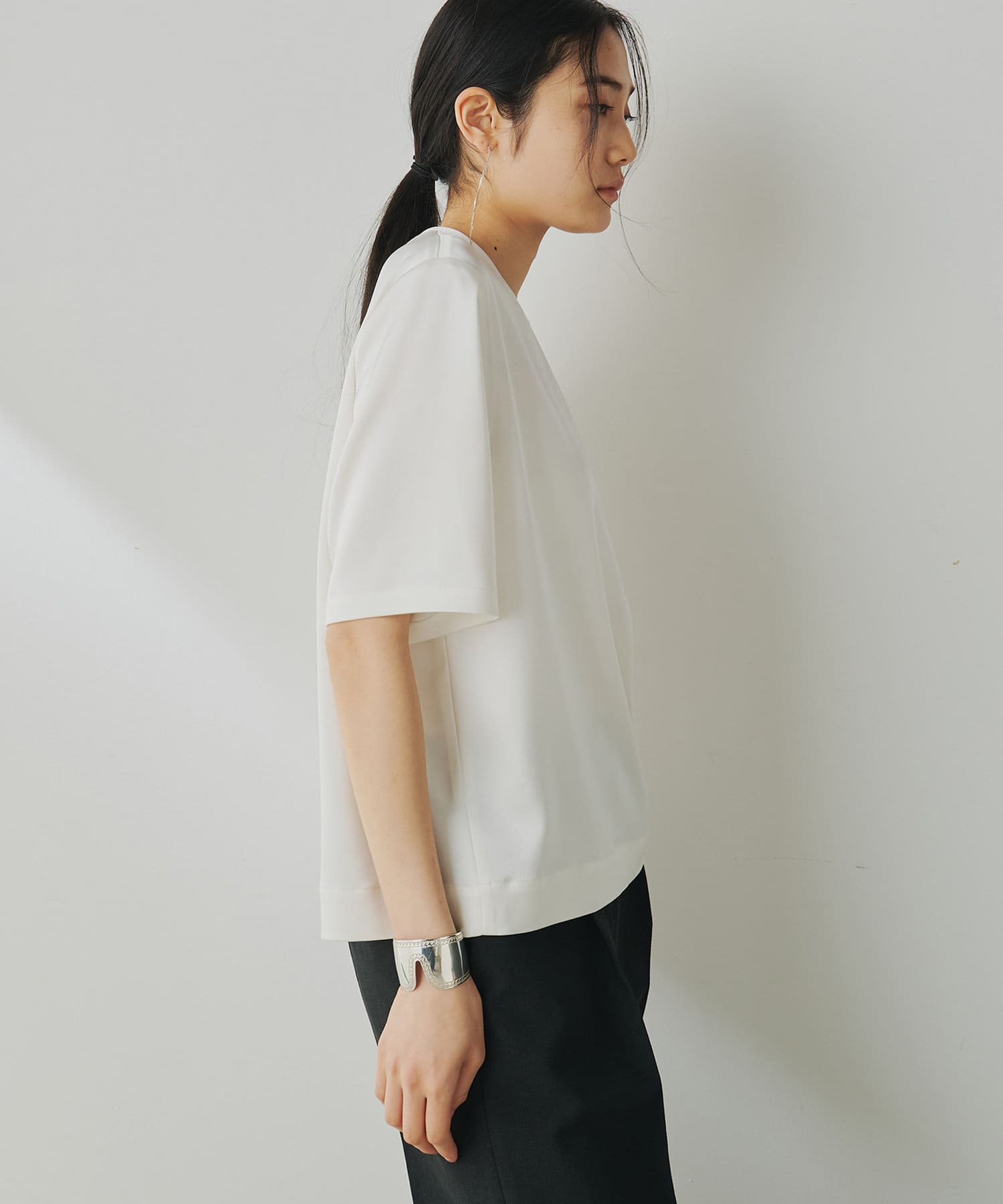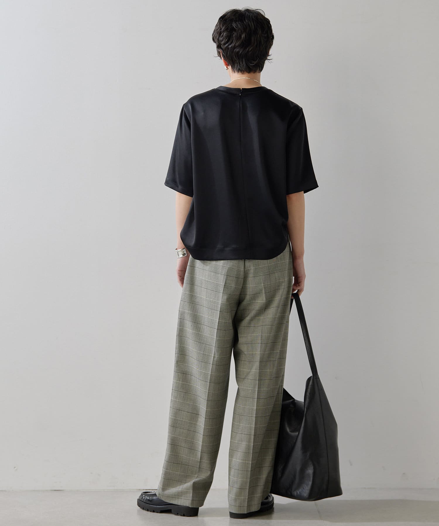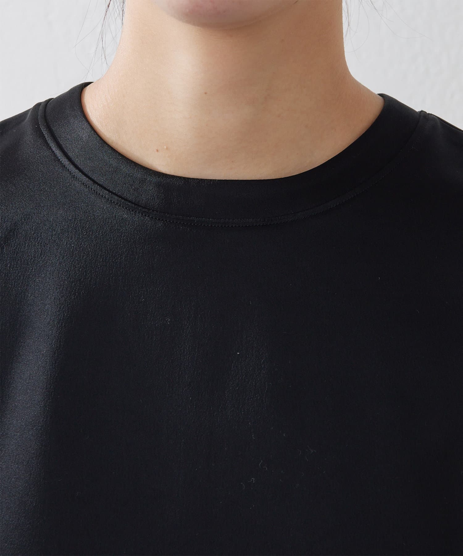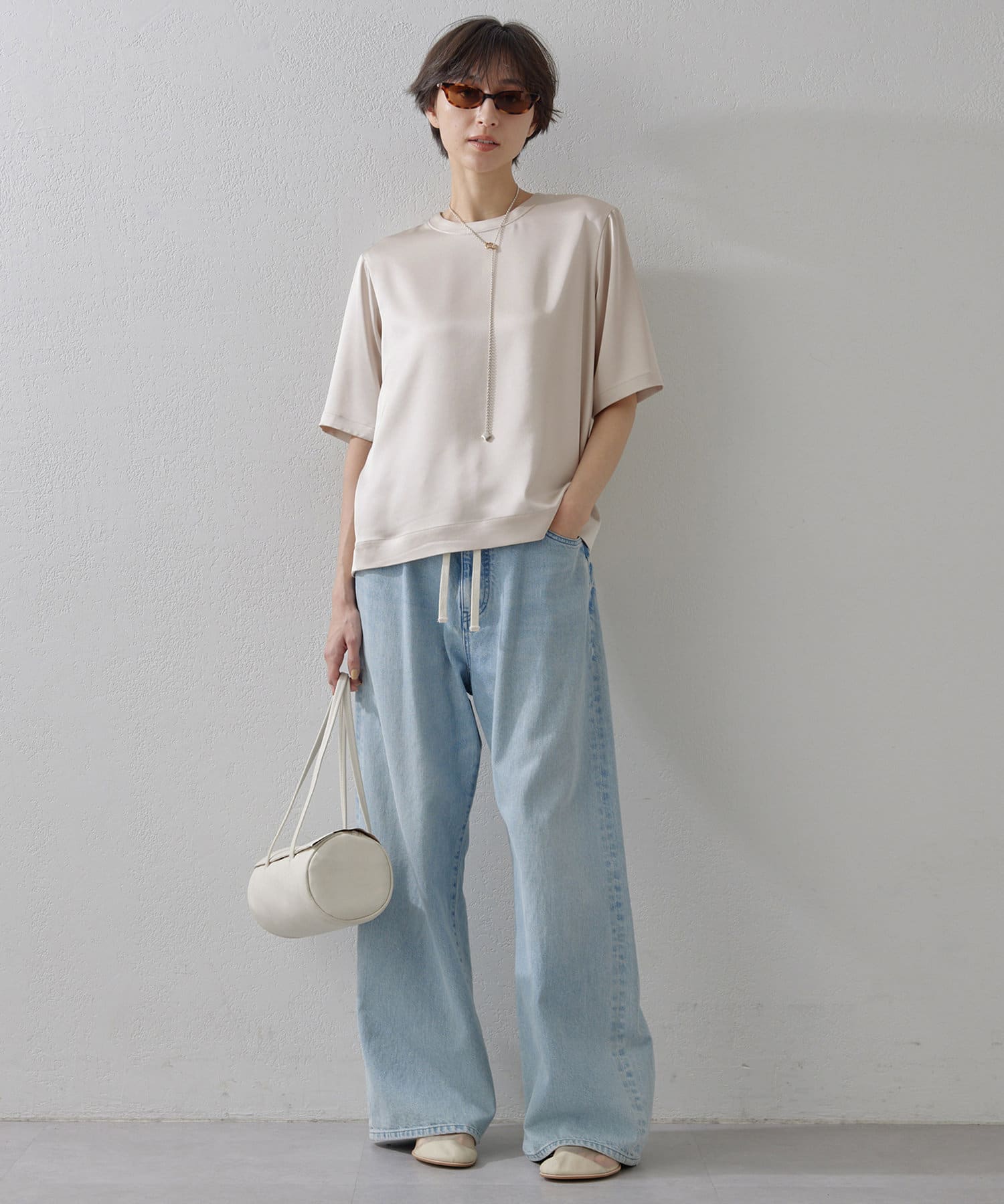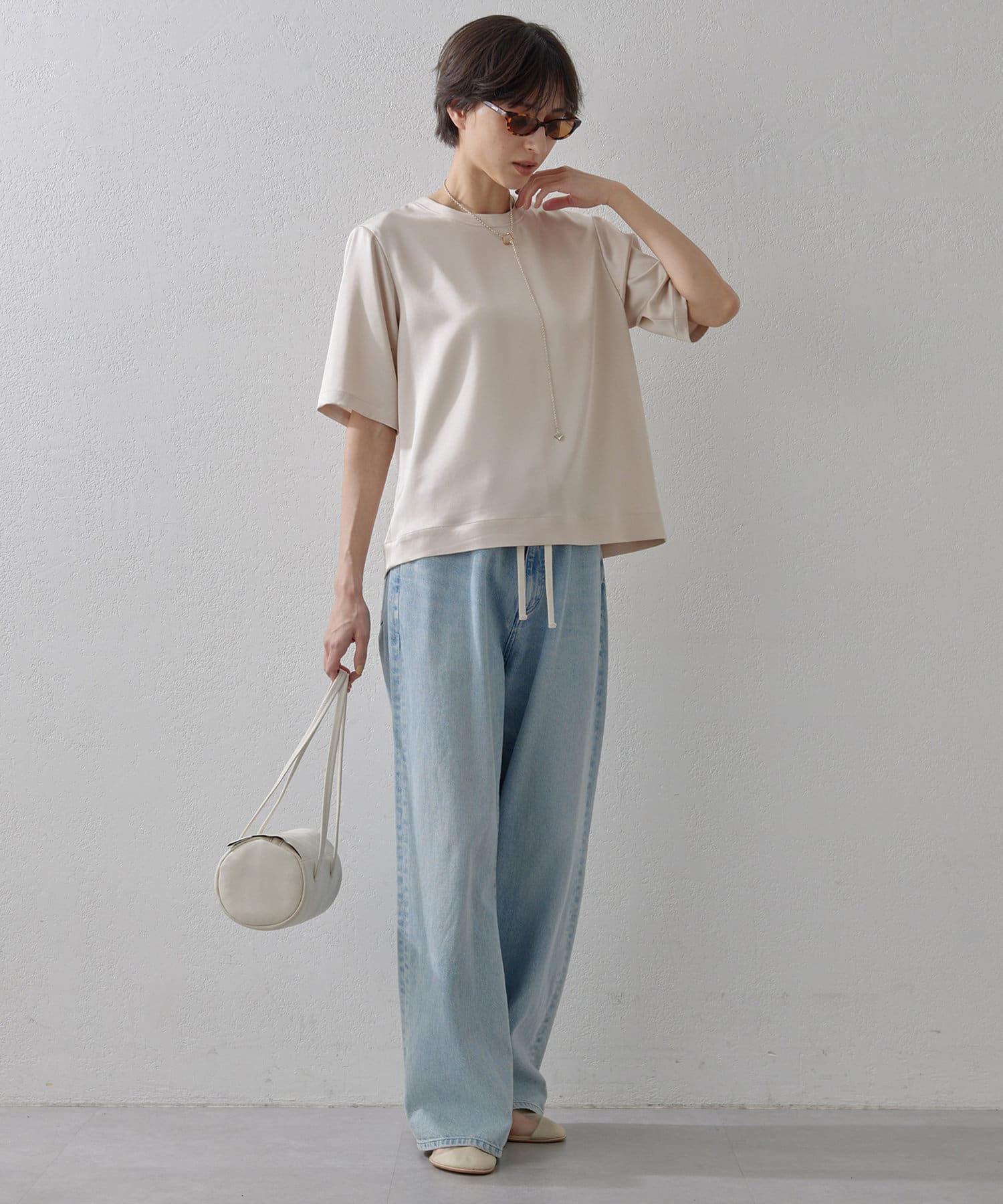 Tシャツ感覚で着たい、サテン素材の半袖TEEブラウス