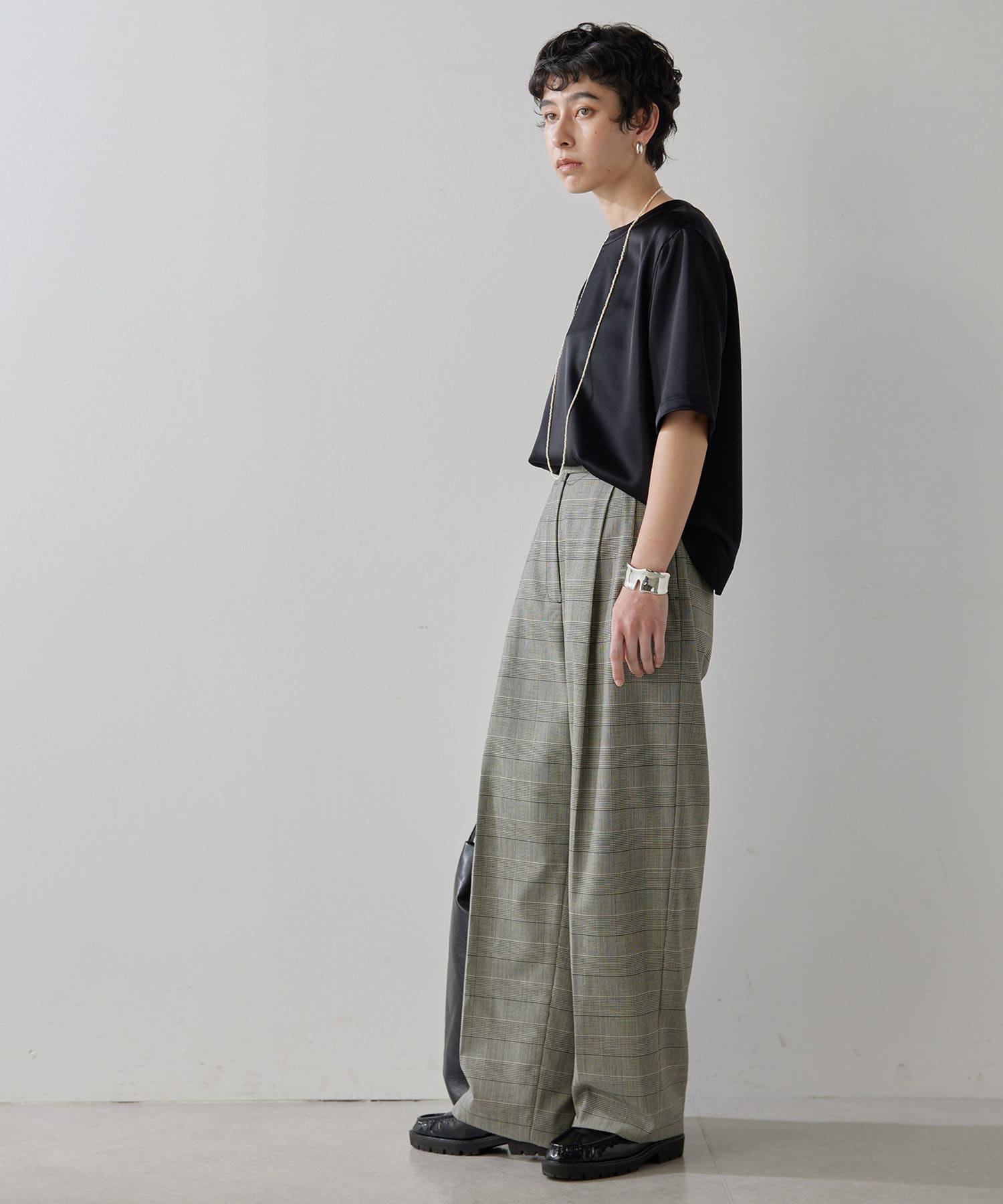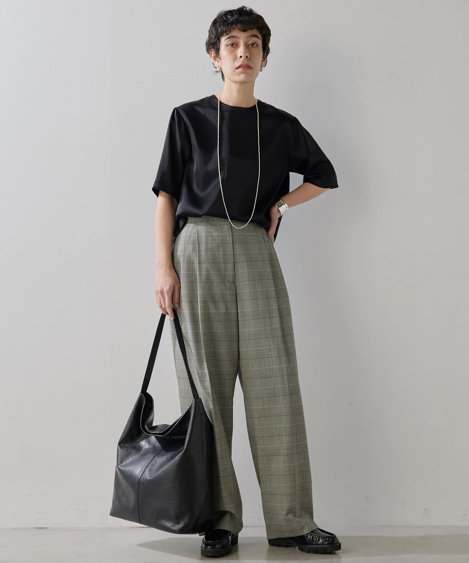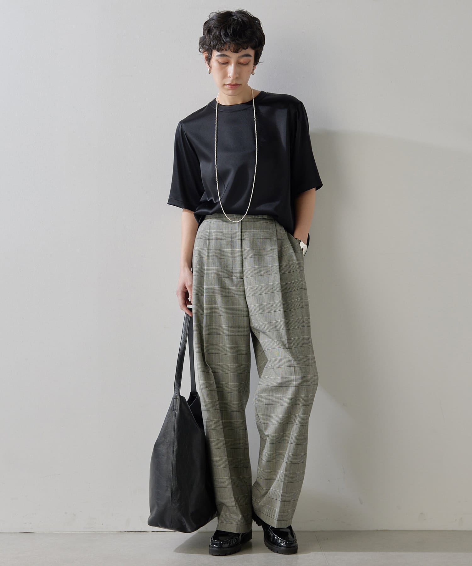 ■上品な光沢感やエフォートレスなシルエットが大人の女性にぴったりな一枚。