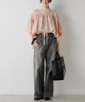 ■ゆったりとしたボディとボリューム袖のデザインでリラックスムード漂う雰囲気に。