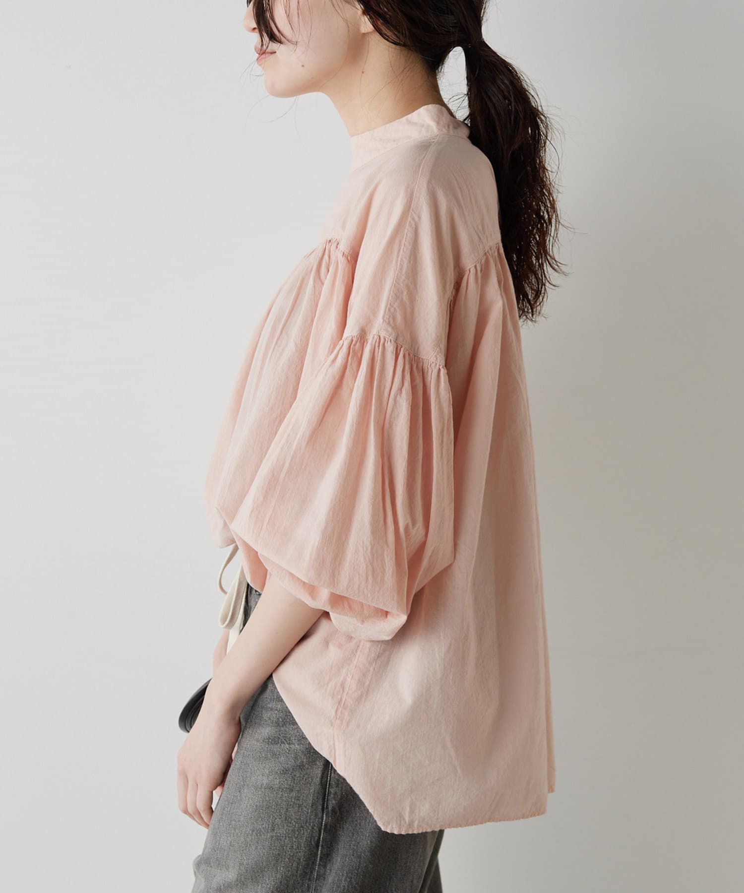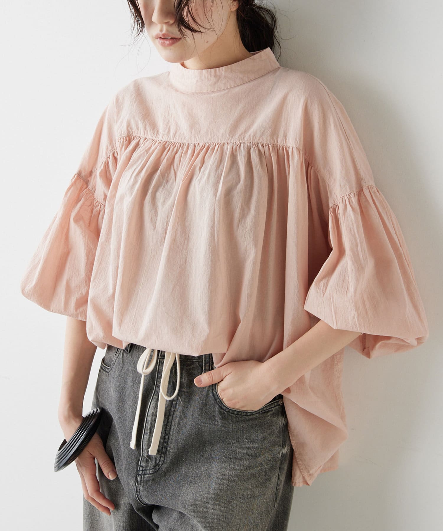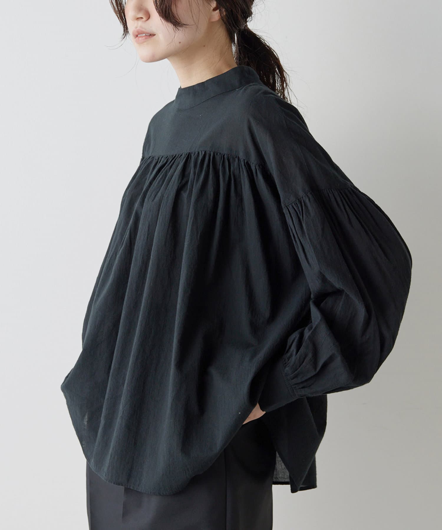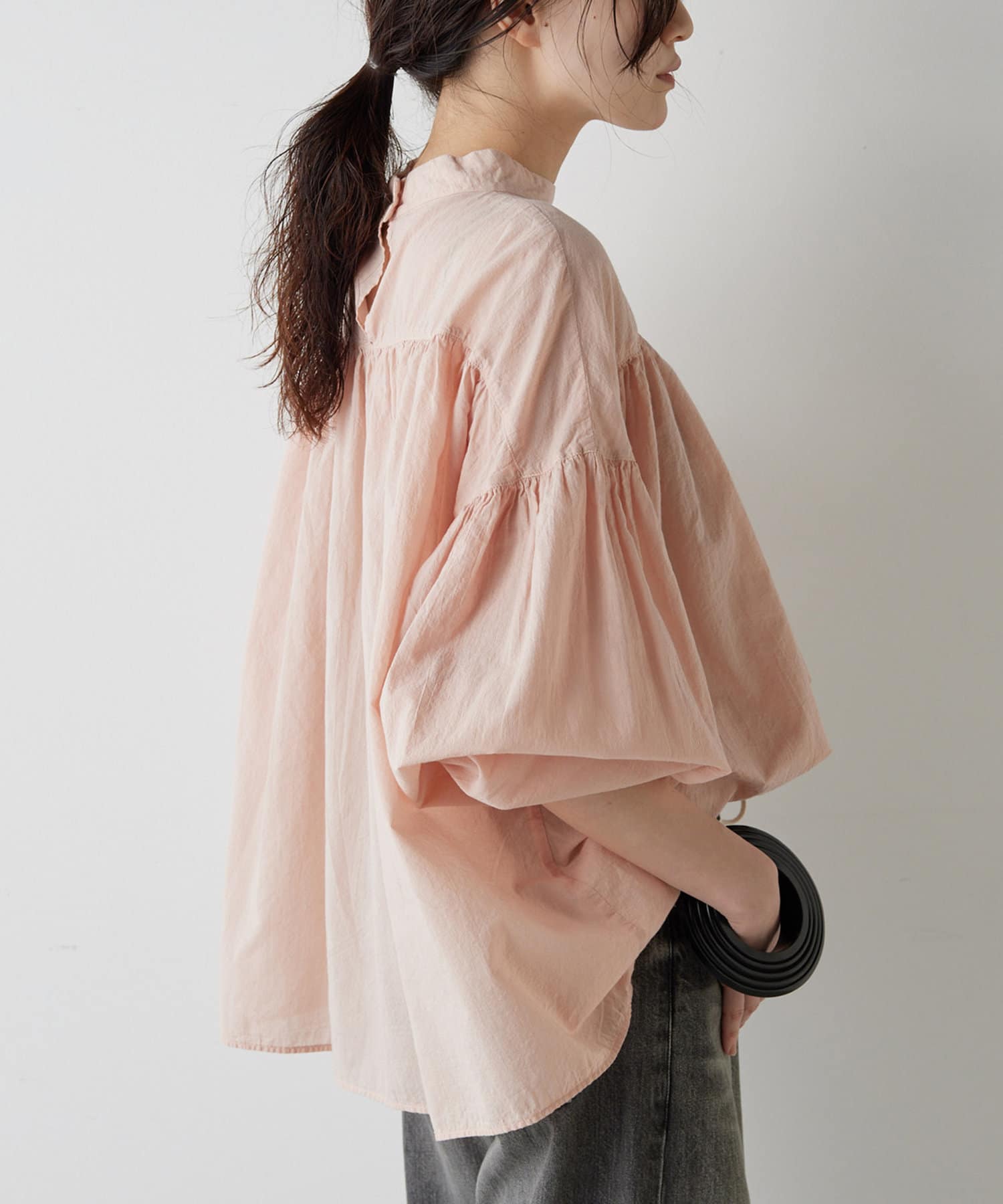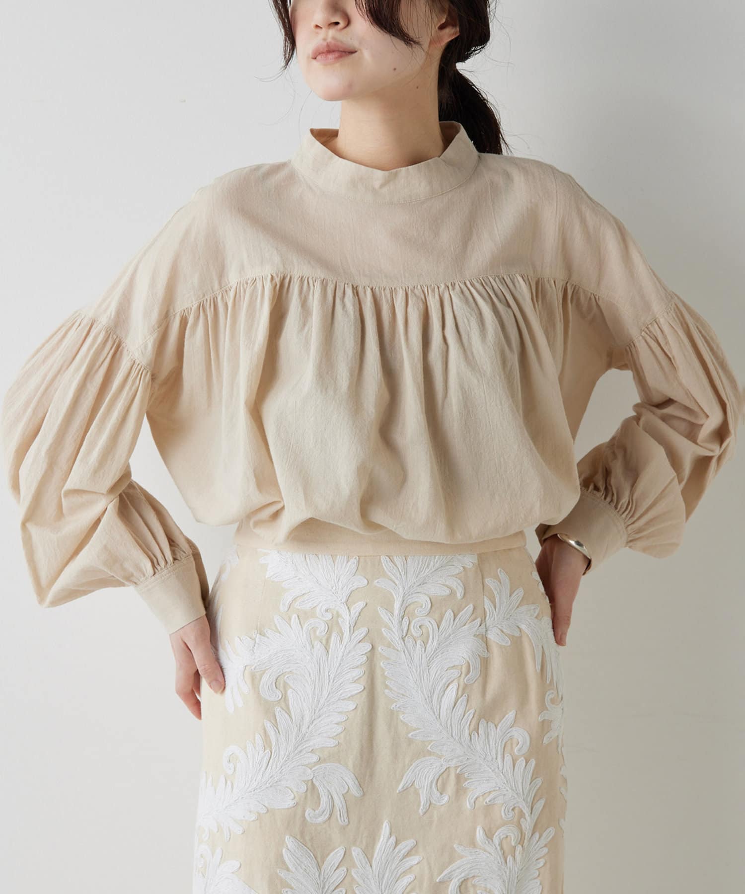 ■袖と身頃にたっぷりとギャザーを入れることで、ボリュームがある女性らしいフォルムに仕上げた一枚。