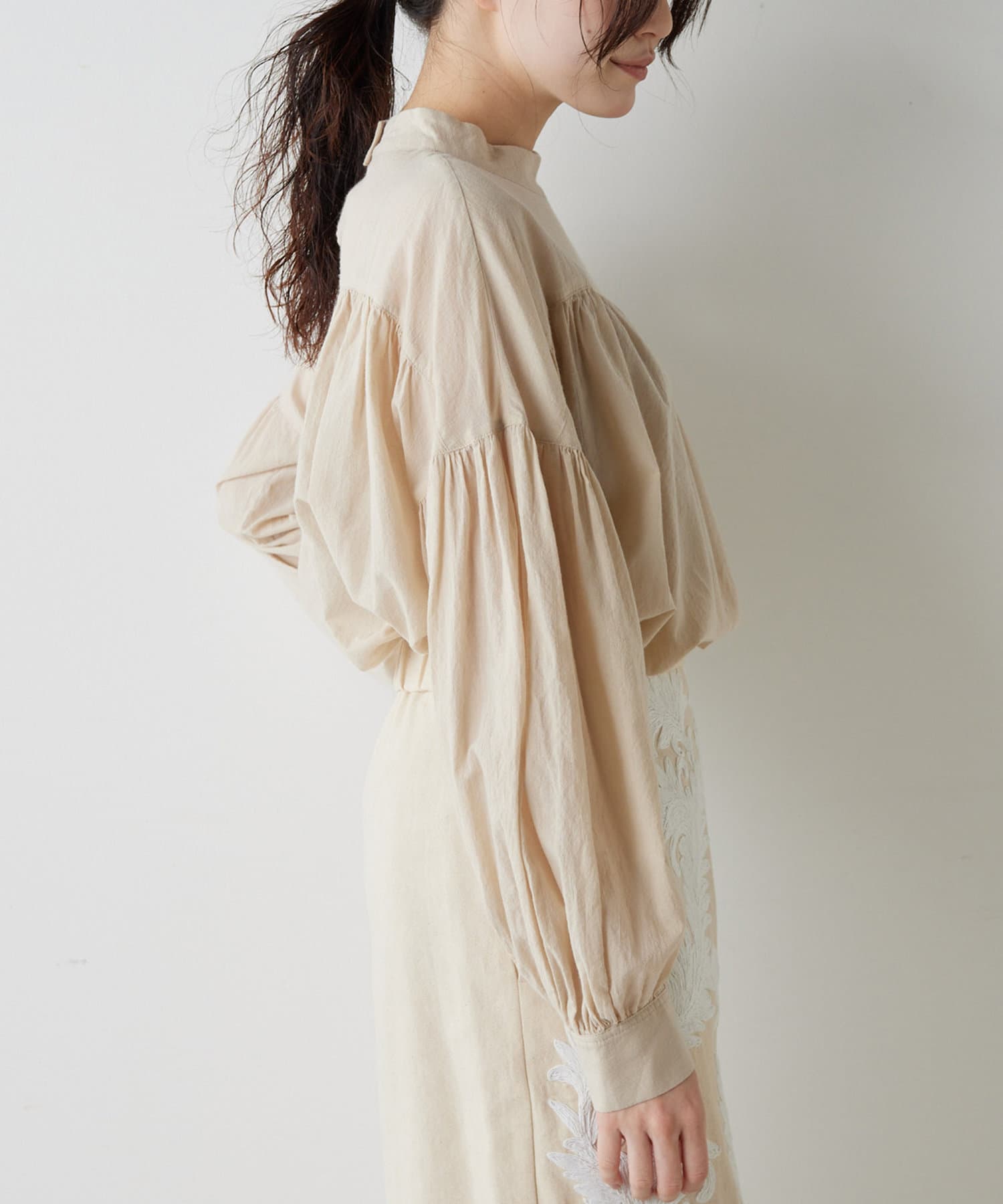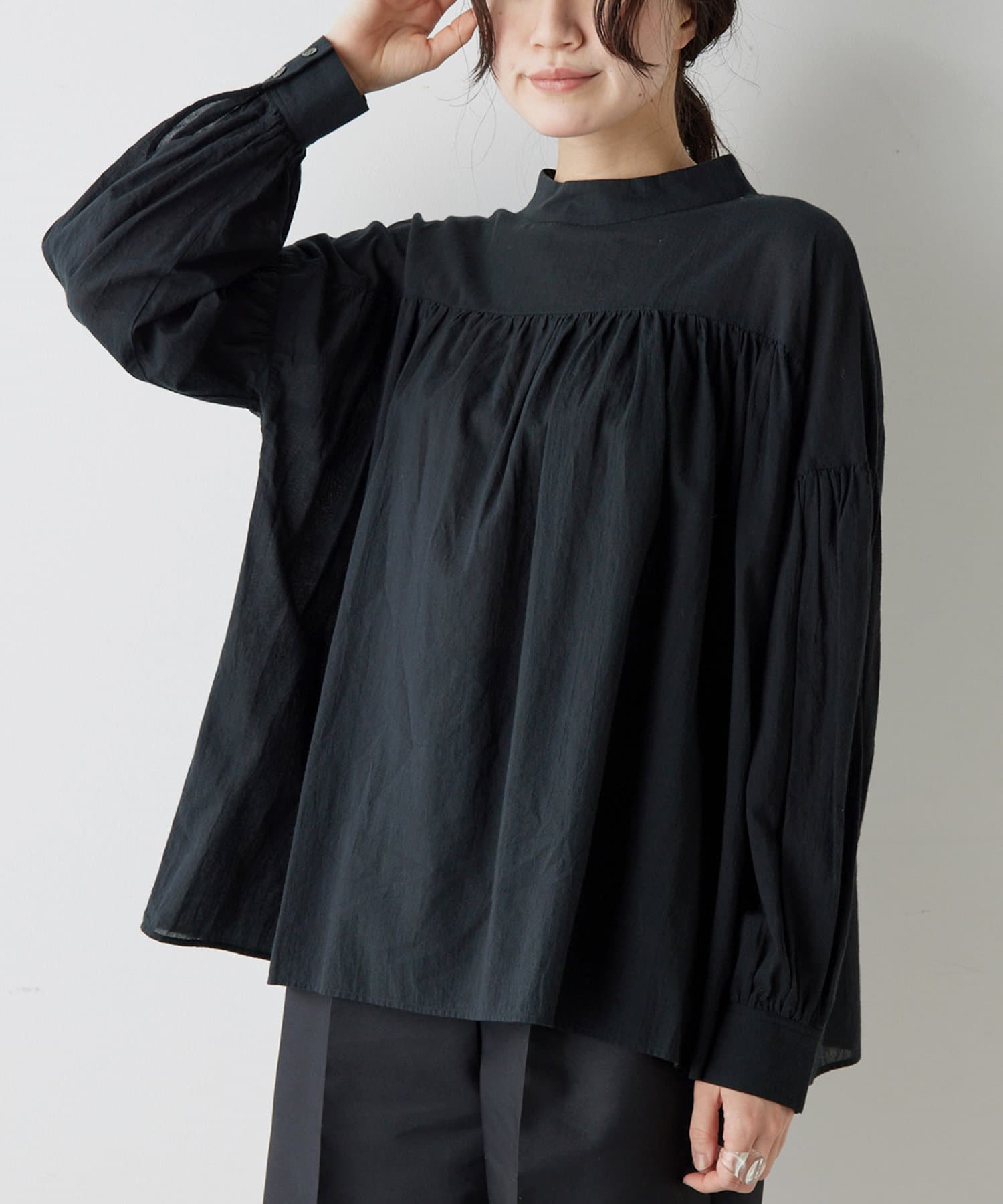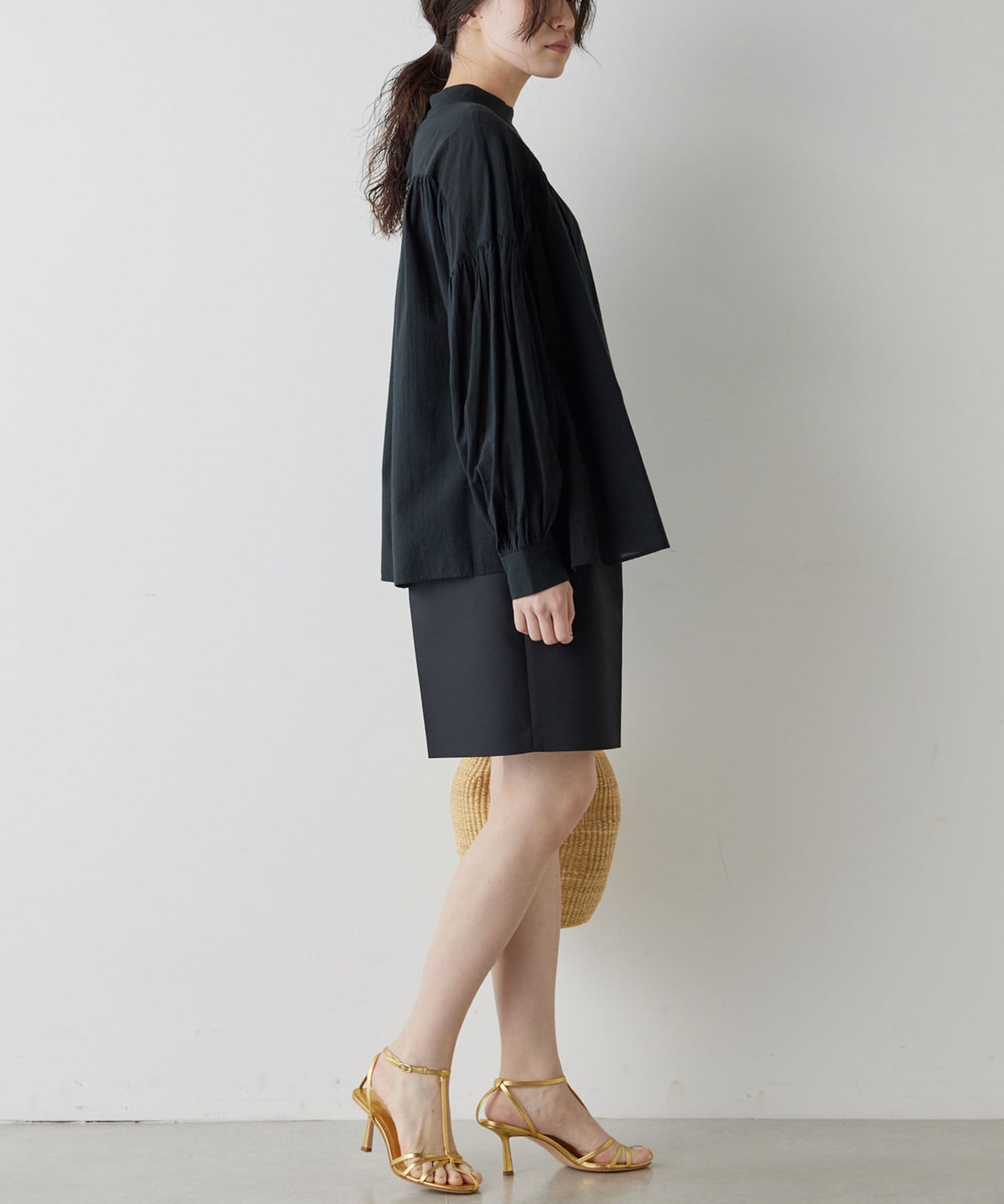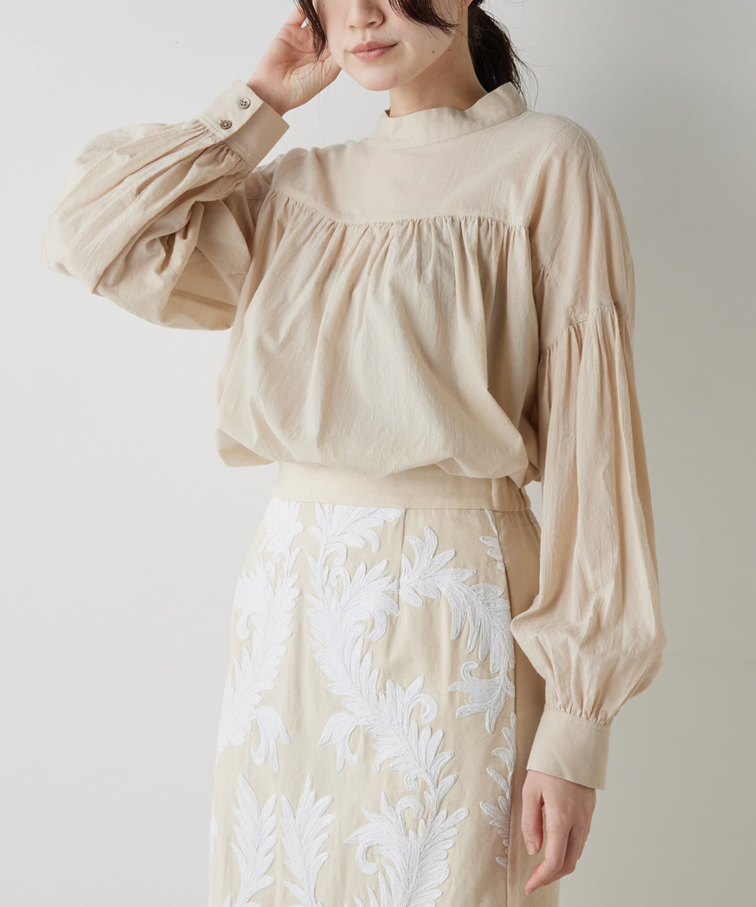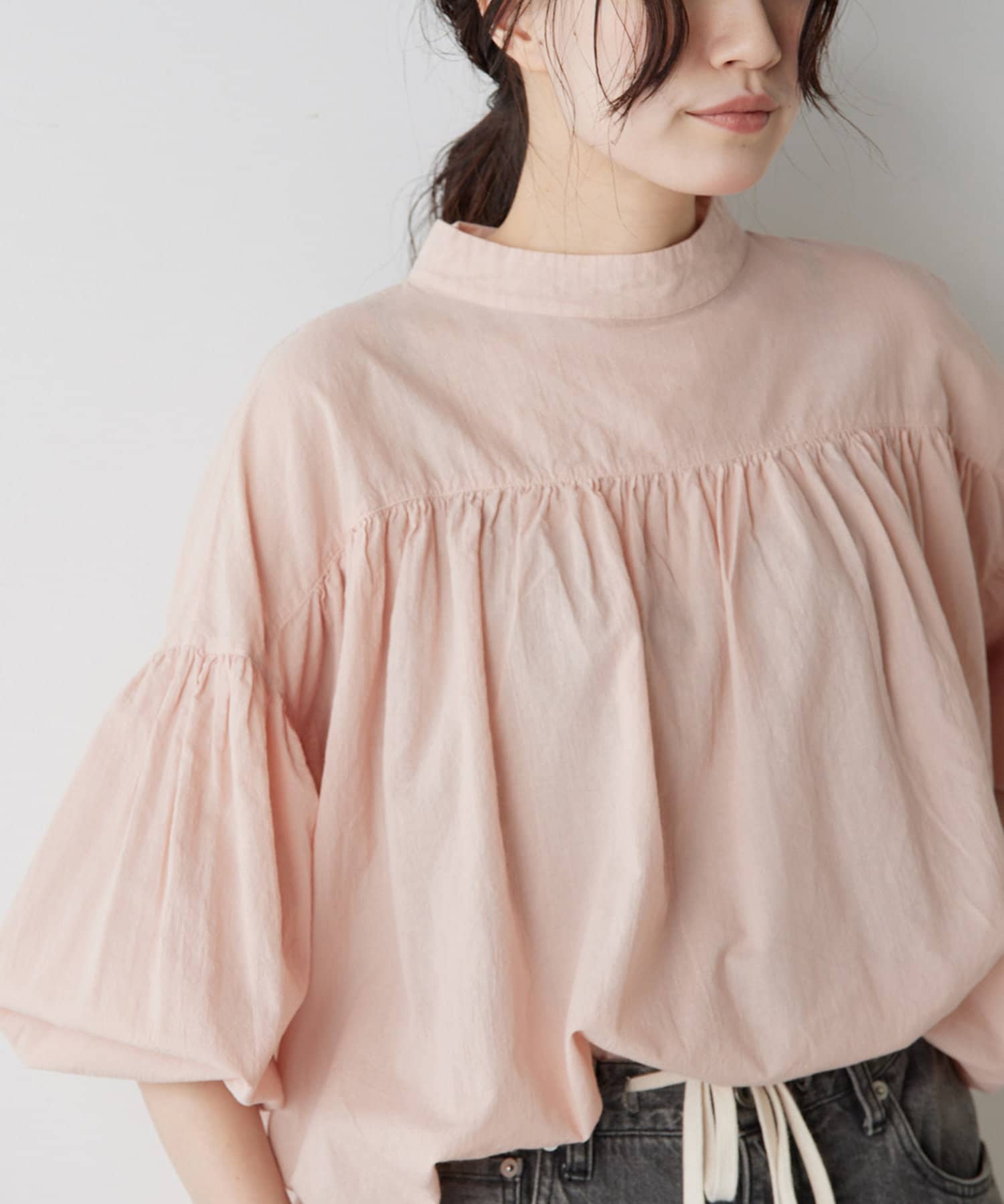 ■袖と身頃にたっぷりとギャザーを入れることで、ボリュームがある女性らしいフォルムに仕上げた一枚。