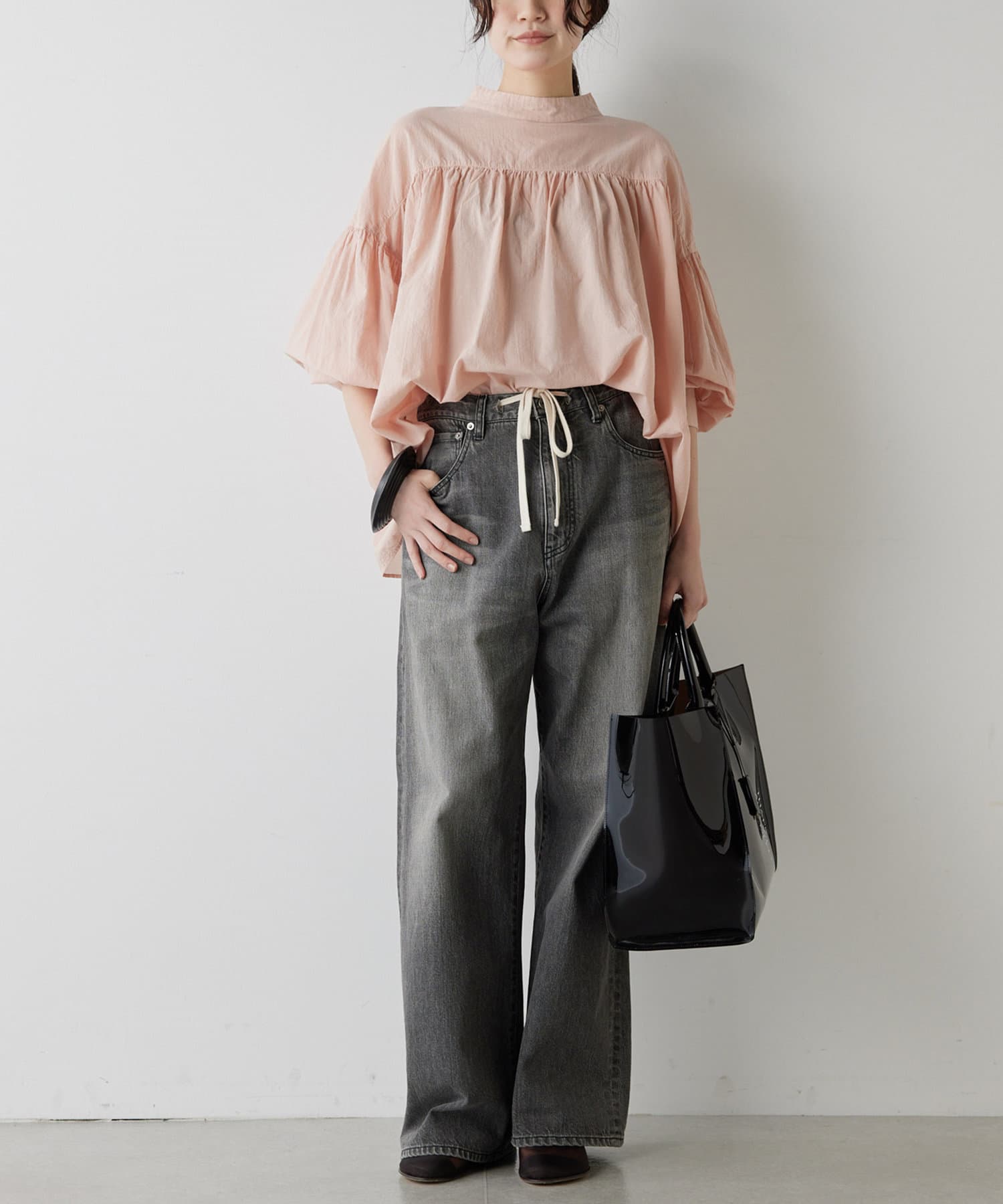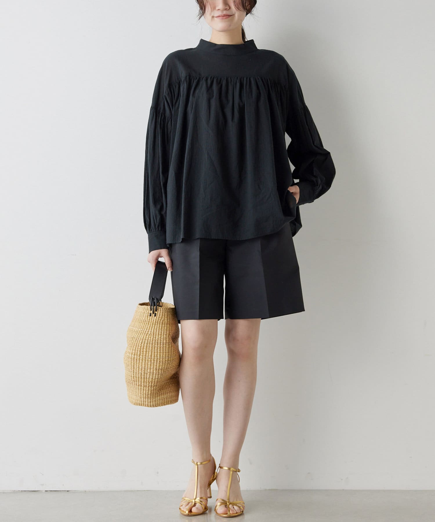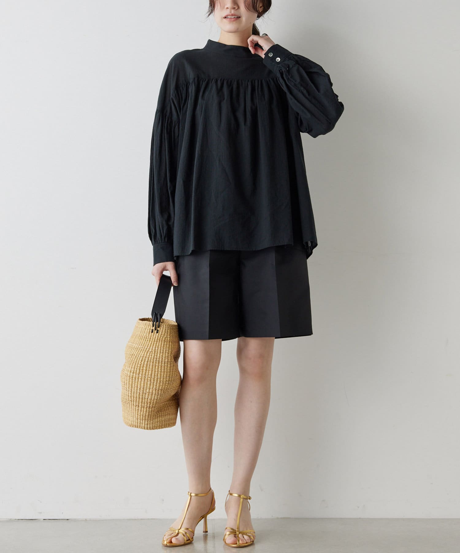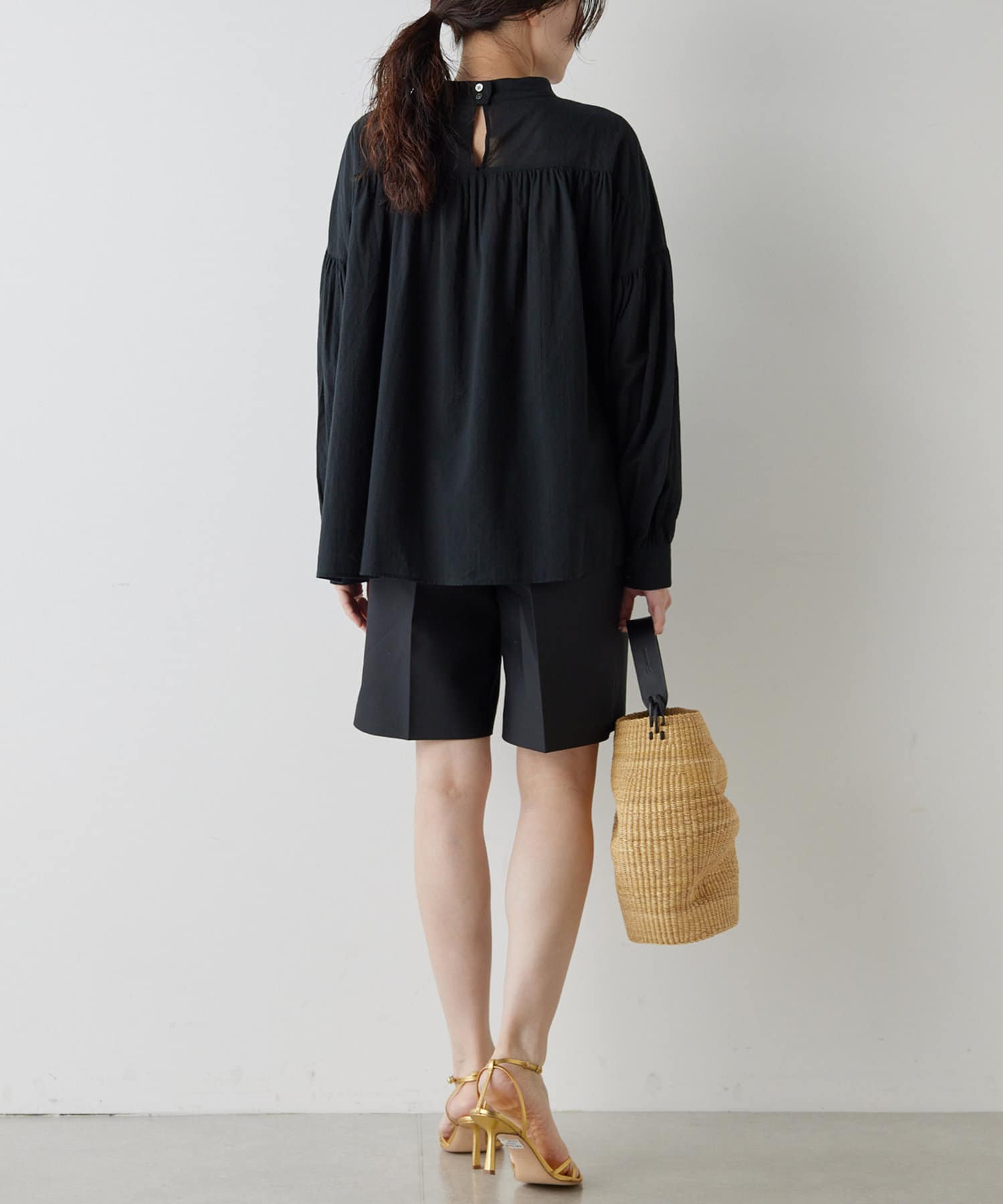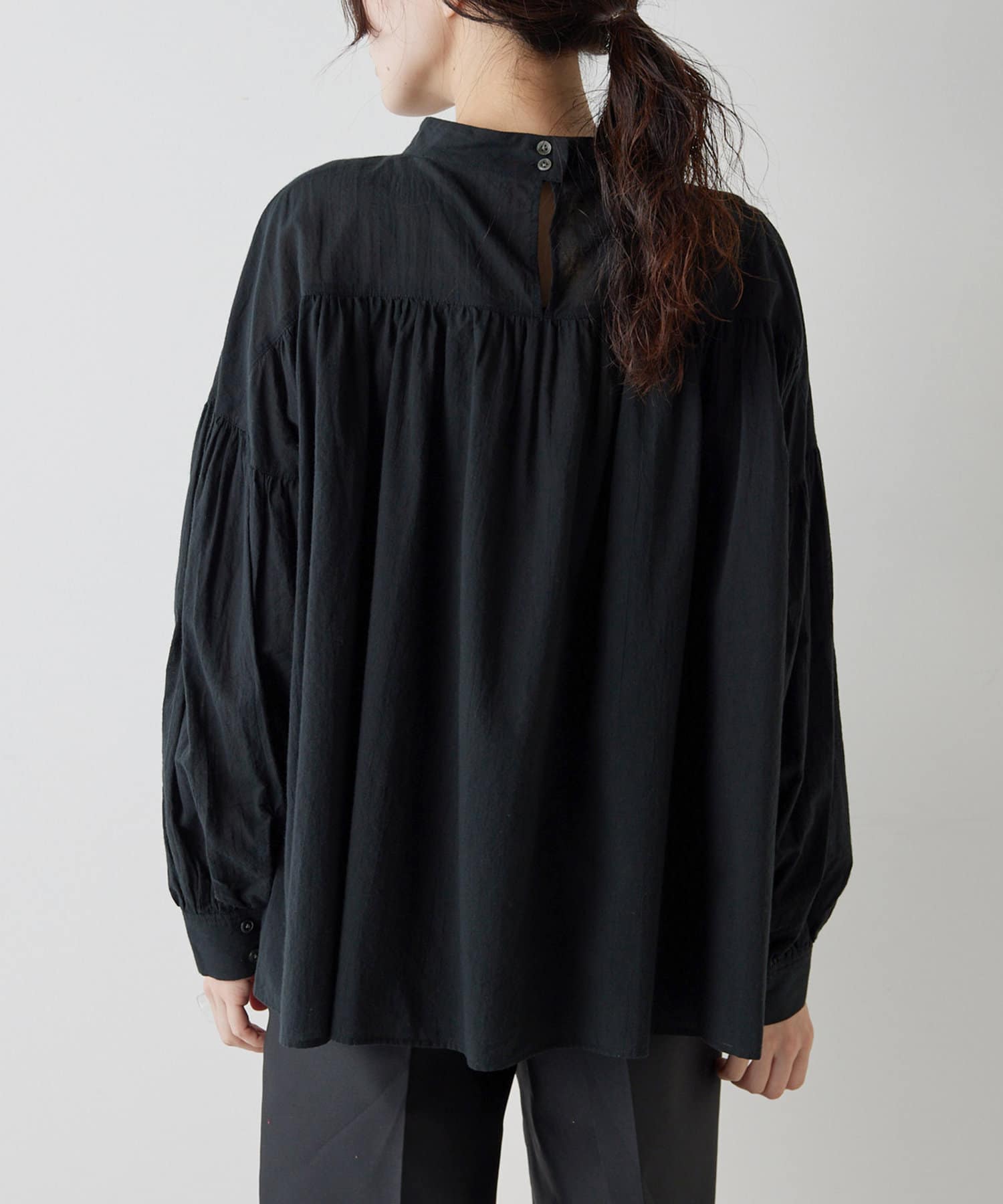 ■袖と身頃にたっぷりとギャザーを入れることで、ボリュームがある女性らしいフォルムに仕上げた一枚。