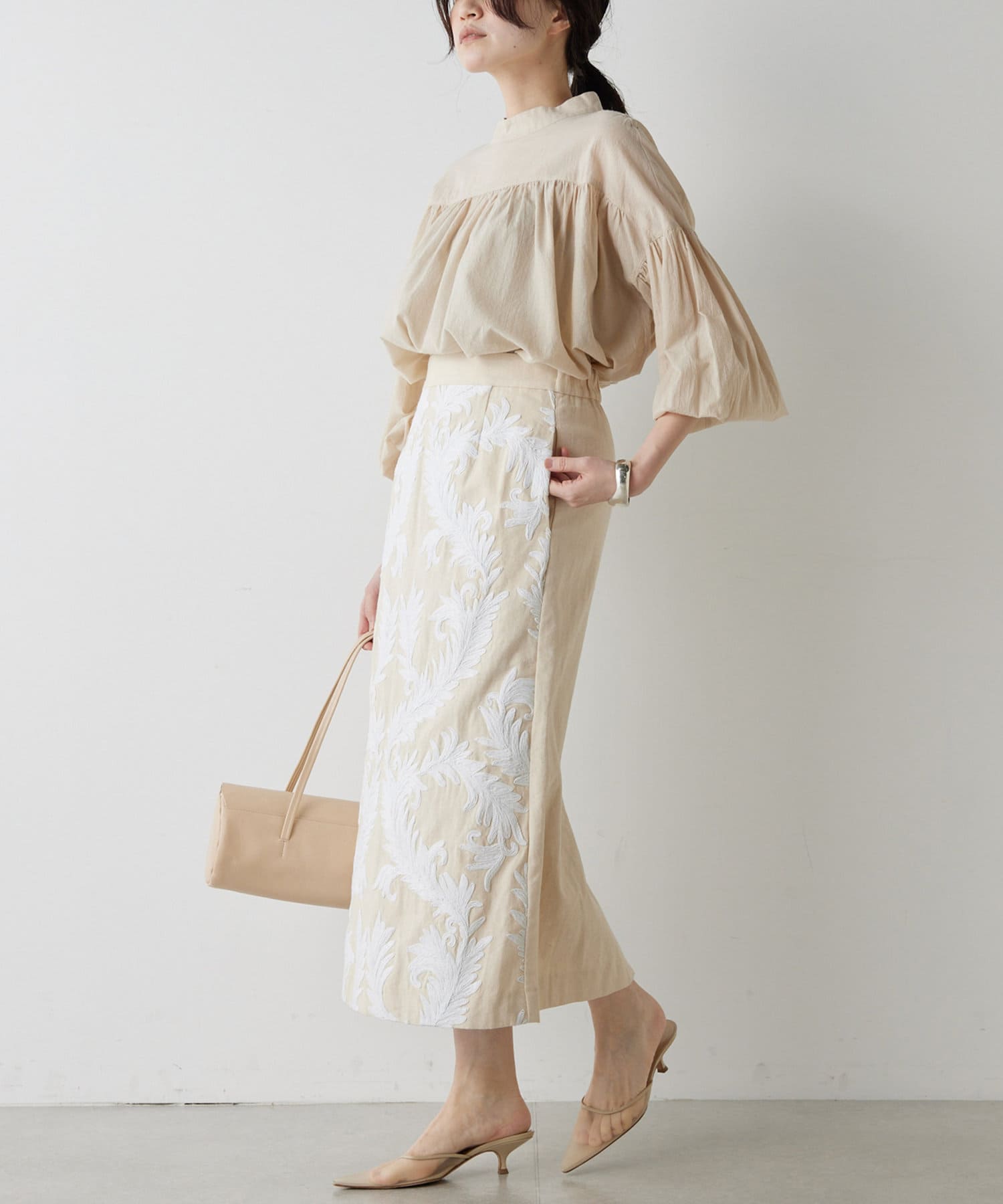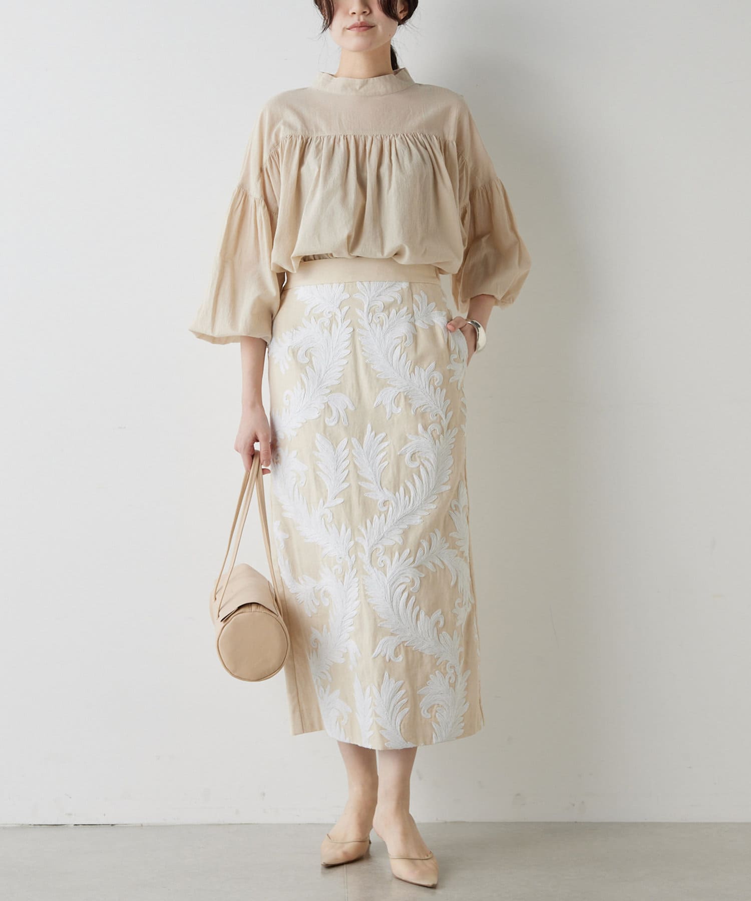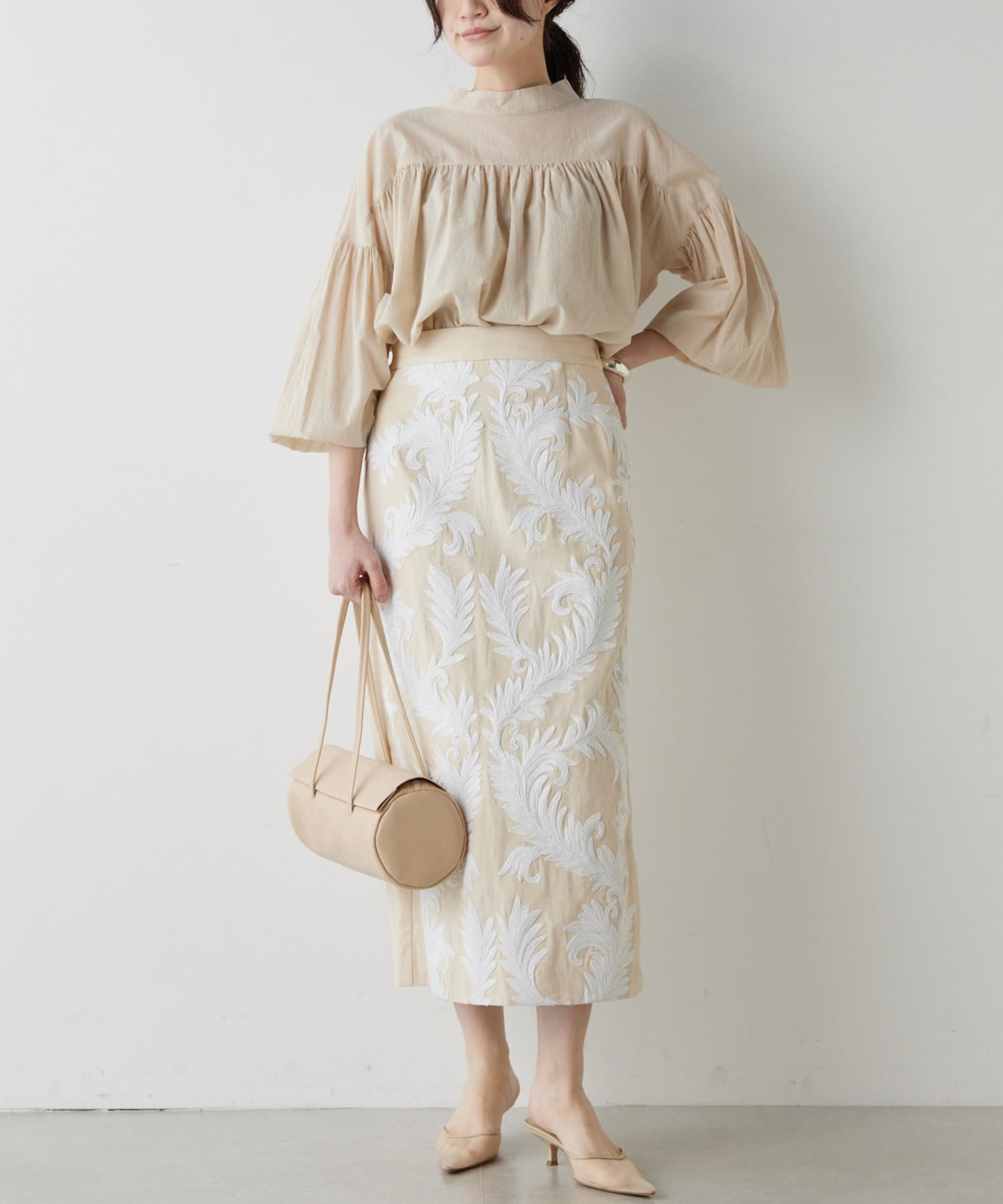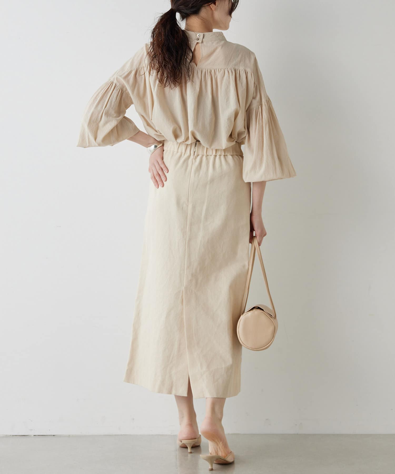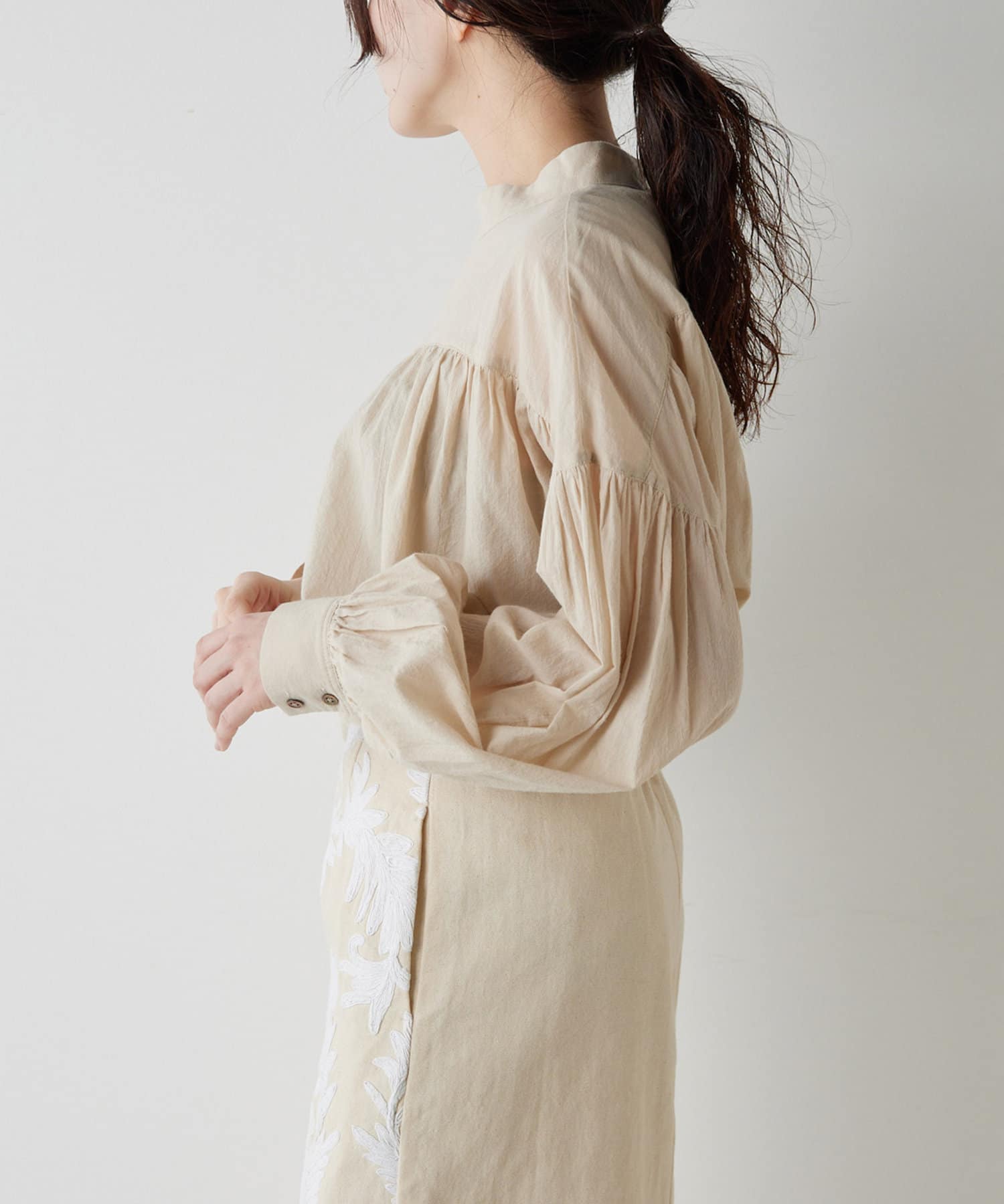 ■袖と身頃にたっぷりとギャザーを入れることで、ボリュームがある女性らしいフォルムに仕上げた一枚。