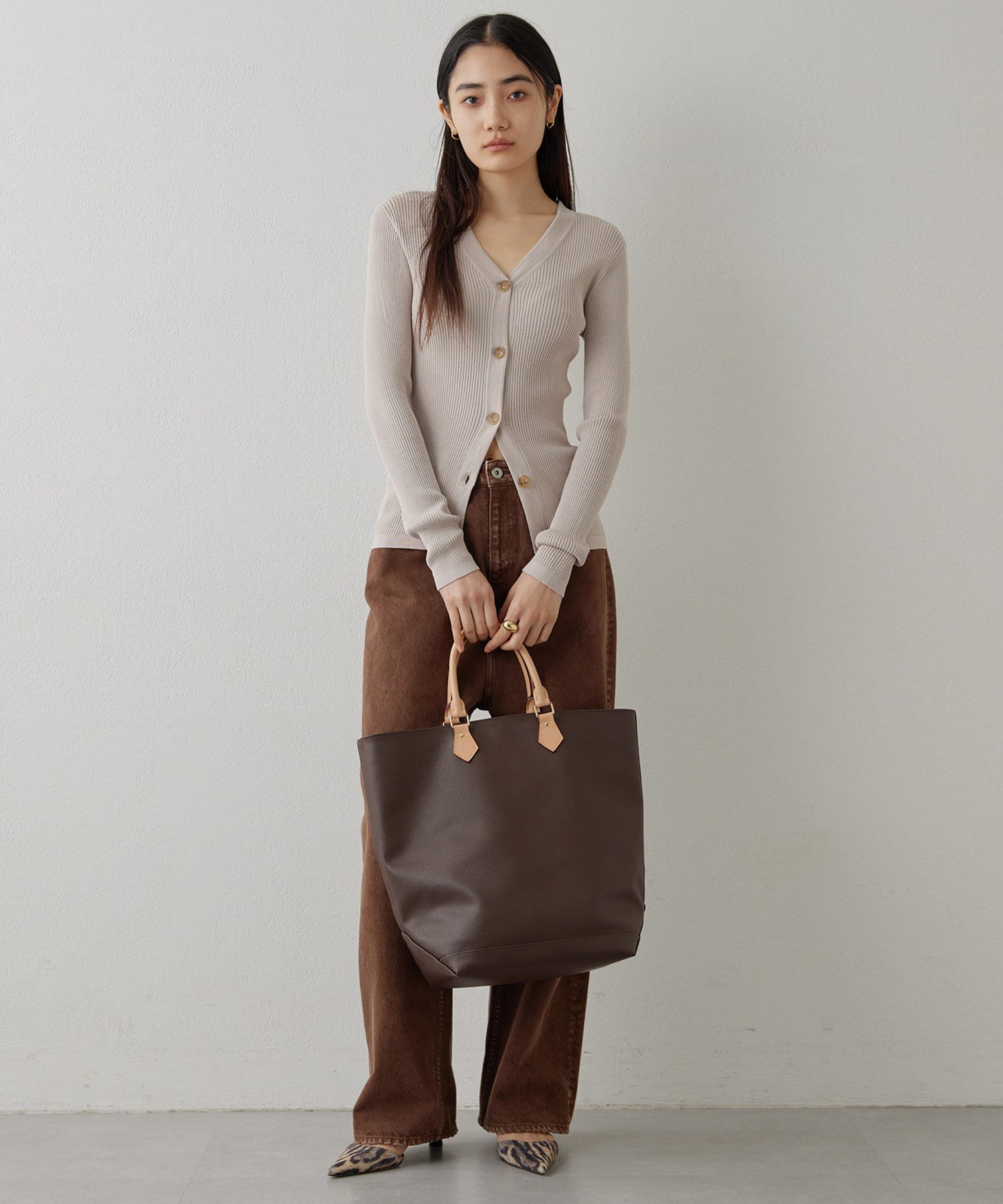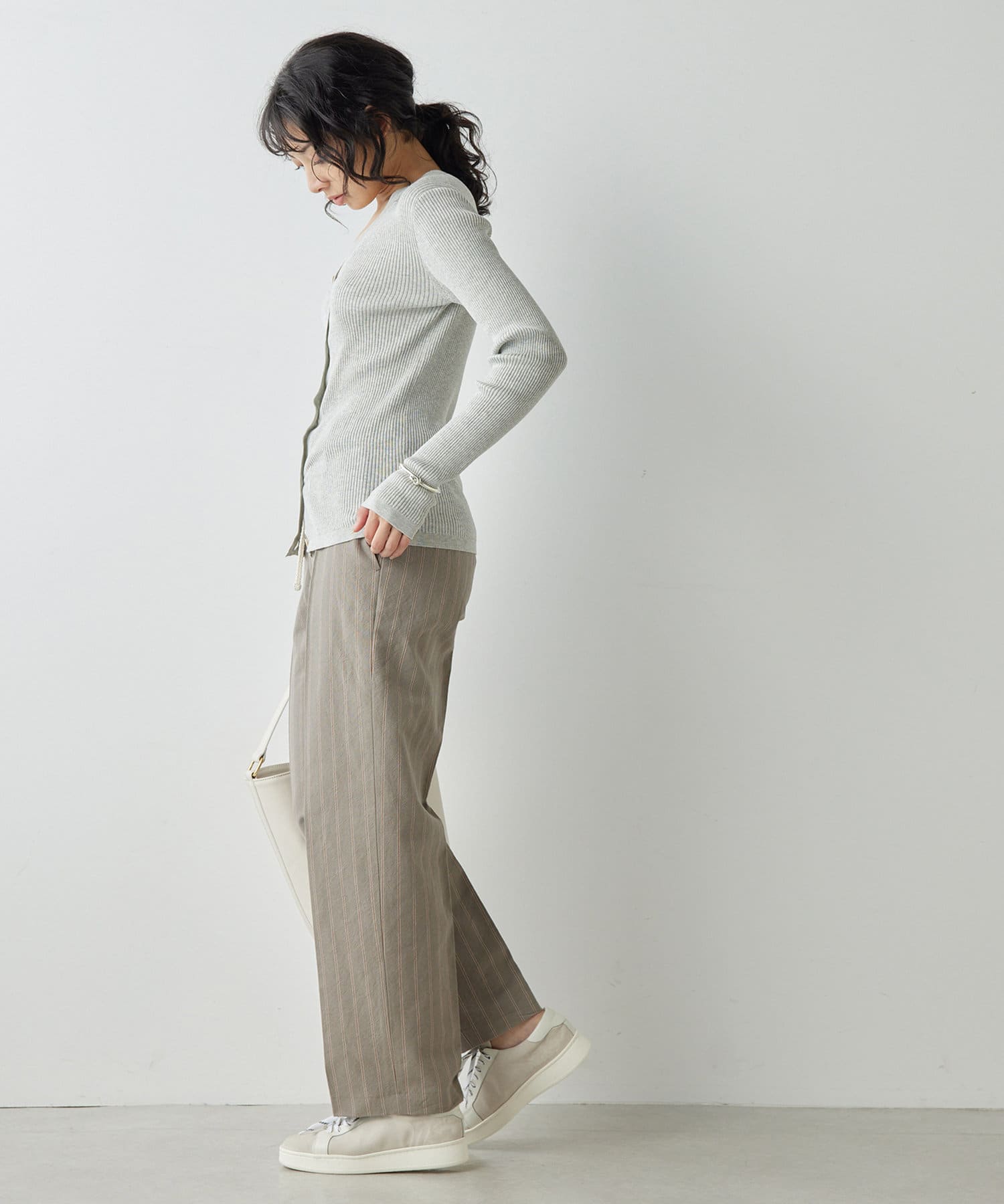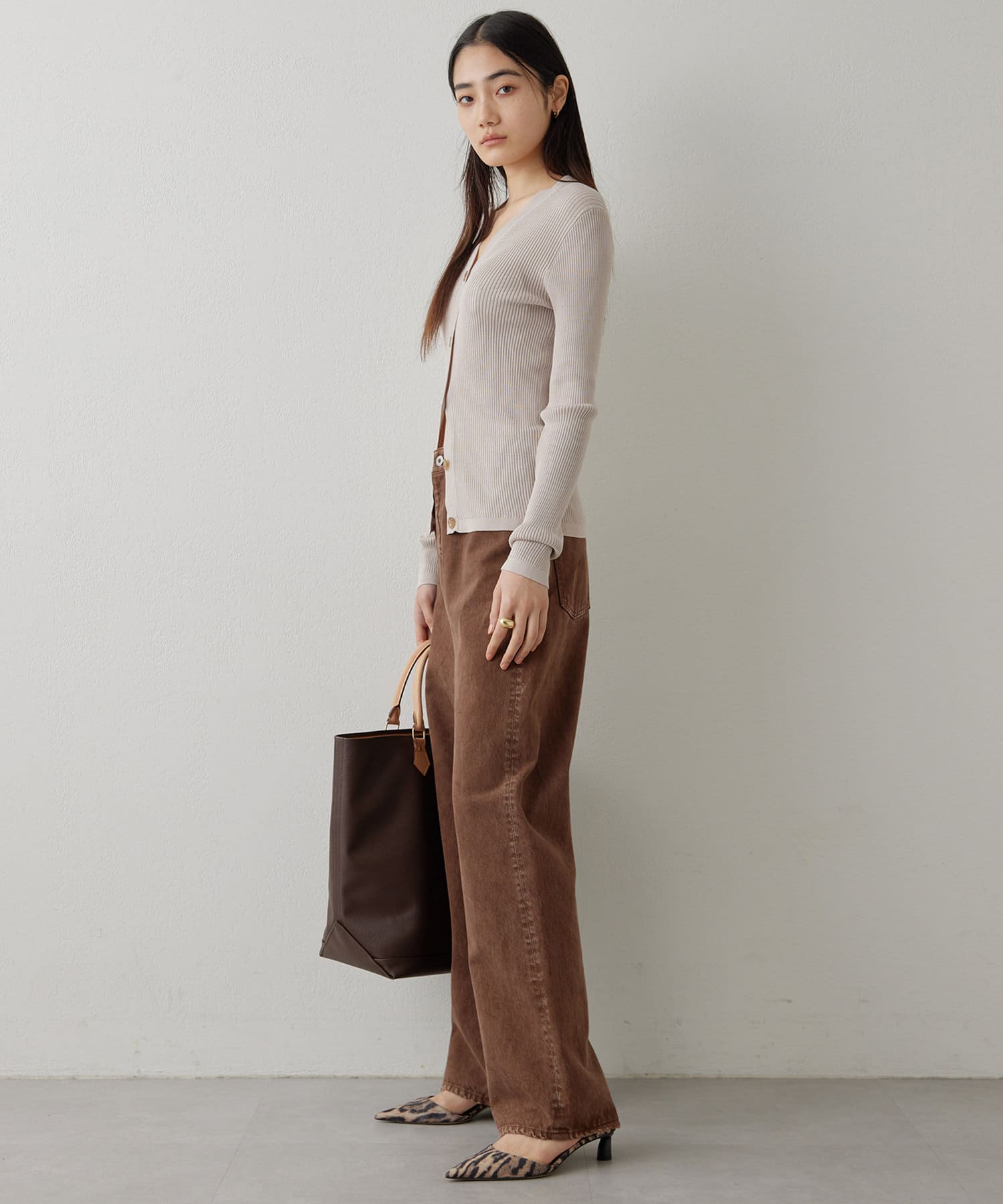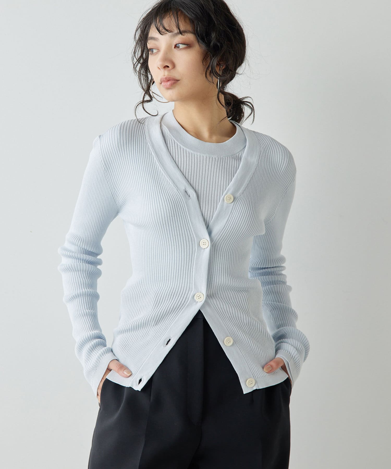 ■女性らしいシルエットのVネックリブニットカーディガン。