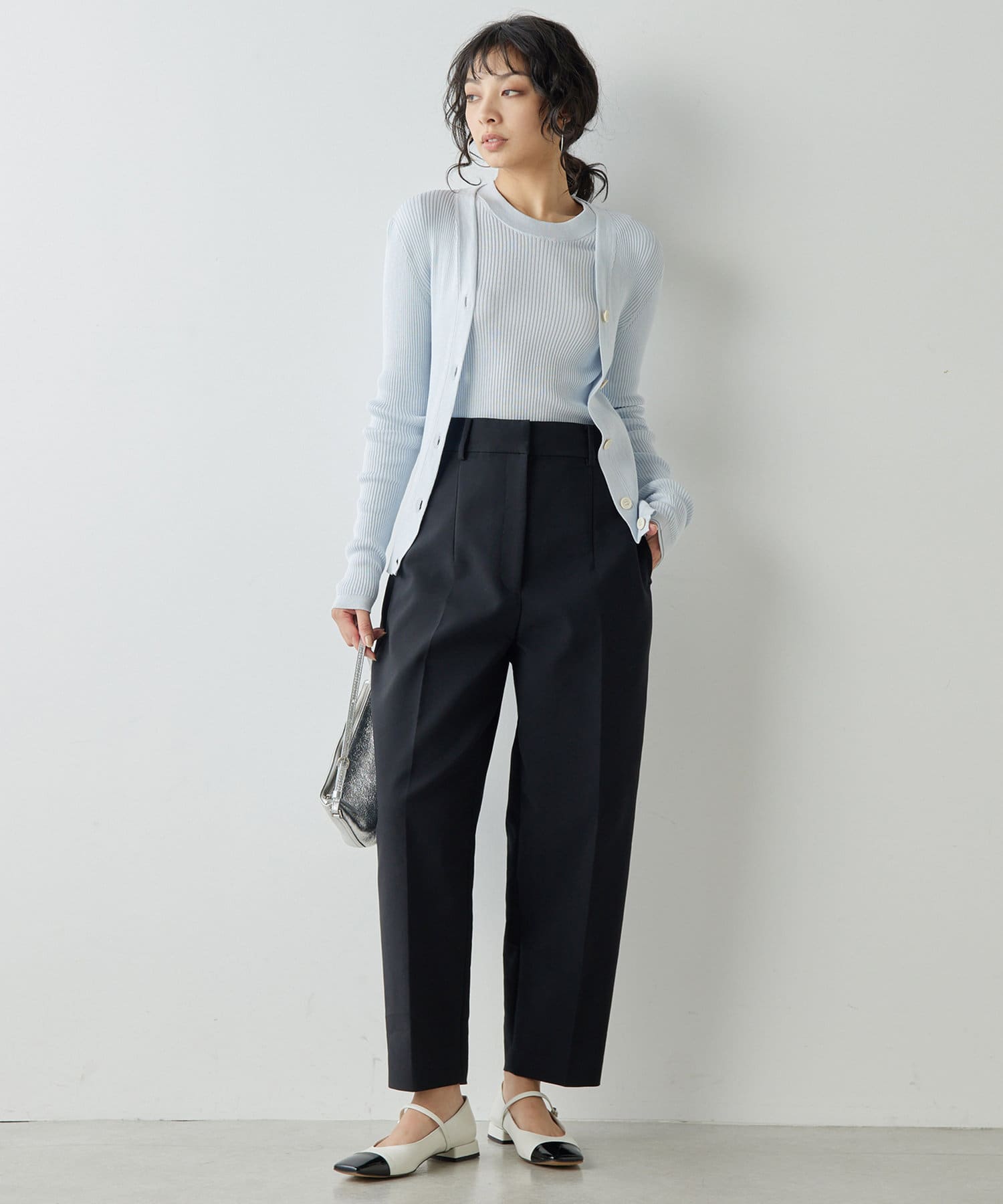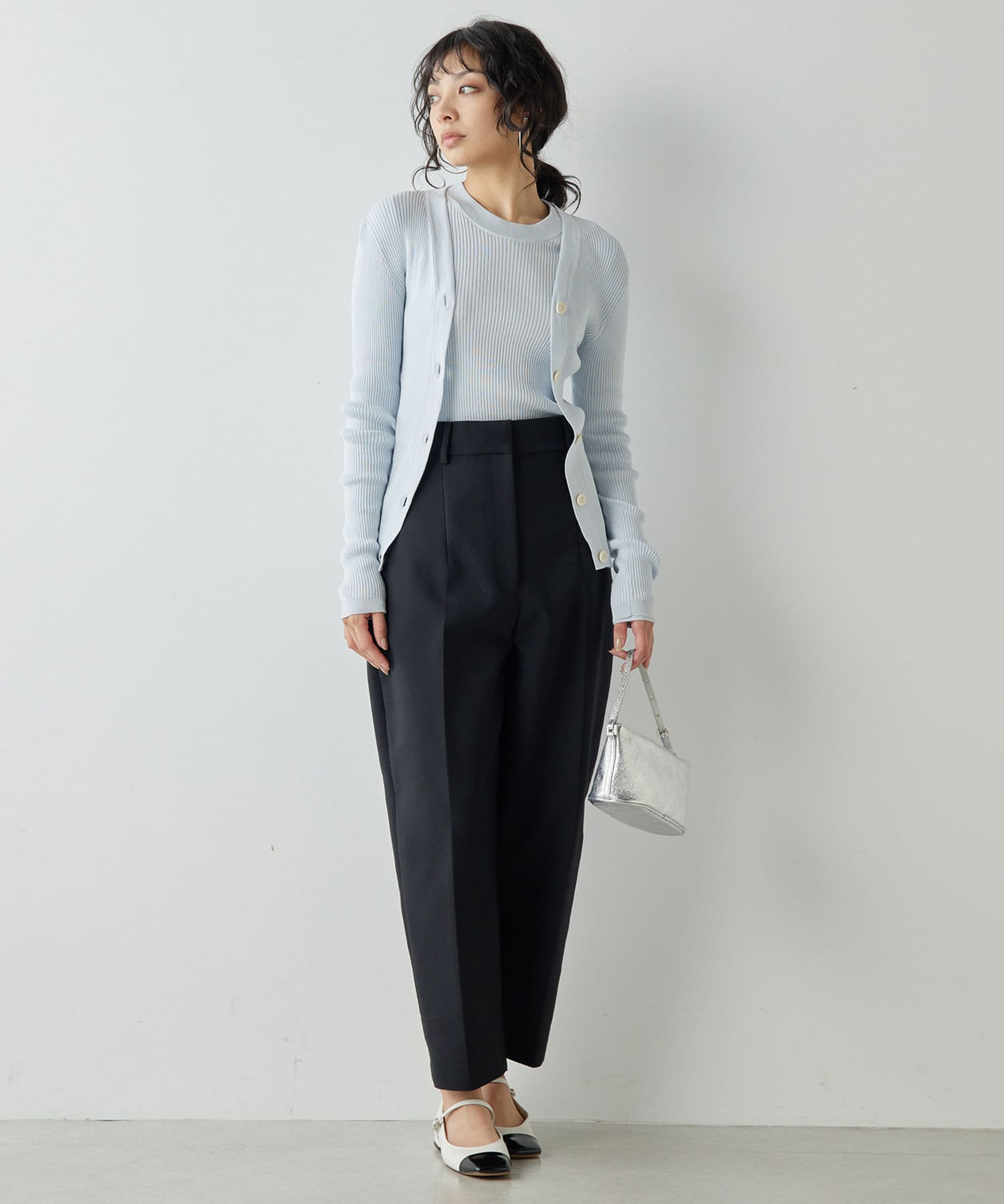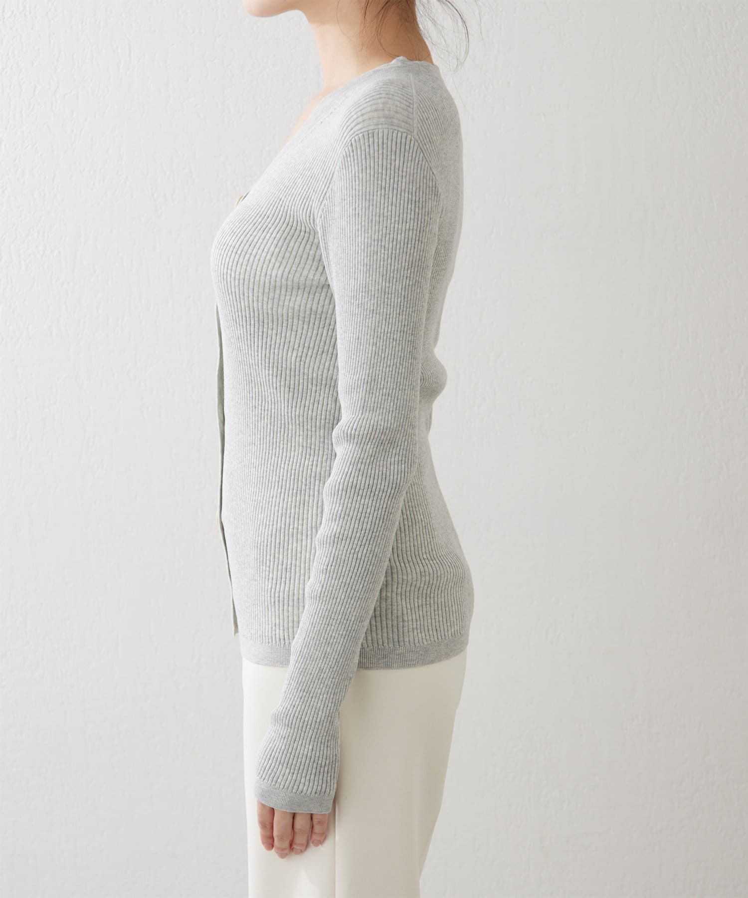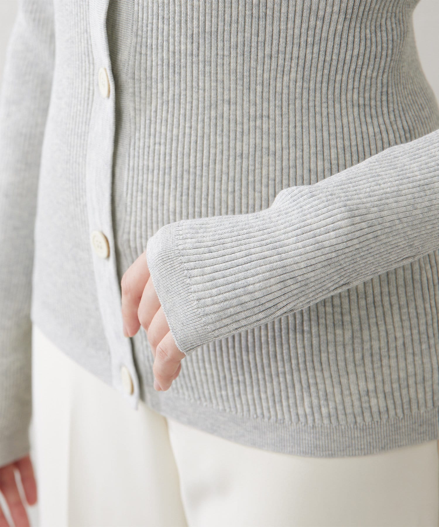 コンパクトなシルエットが上品な、大人のリブカーディガン