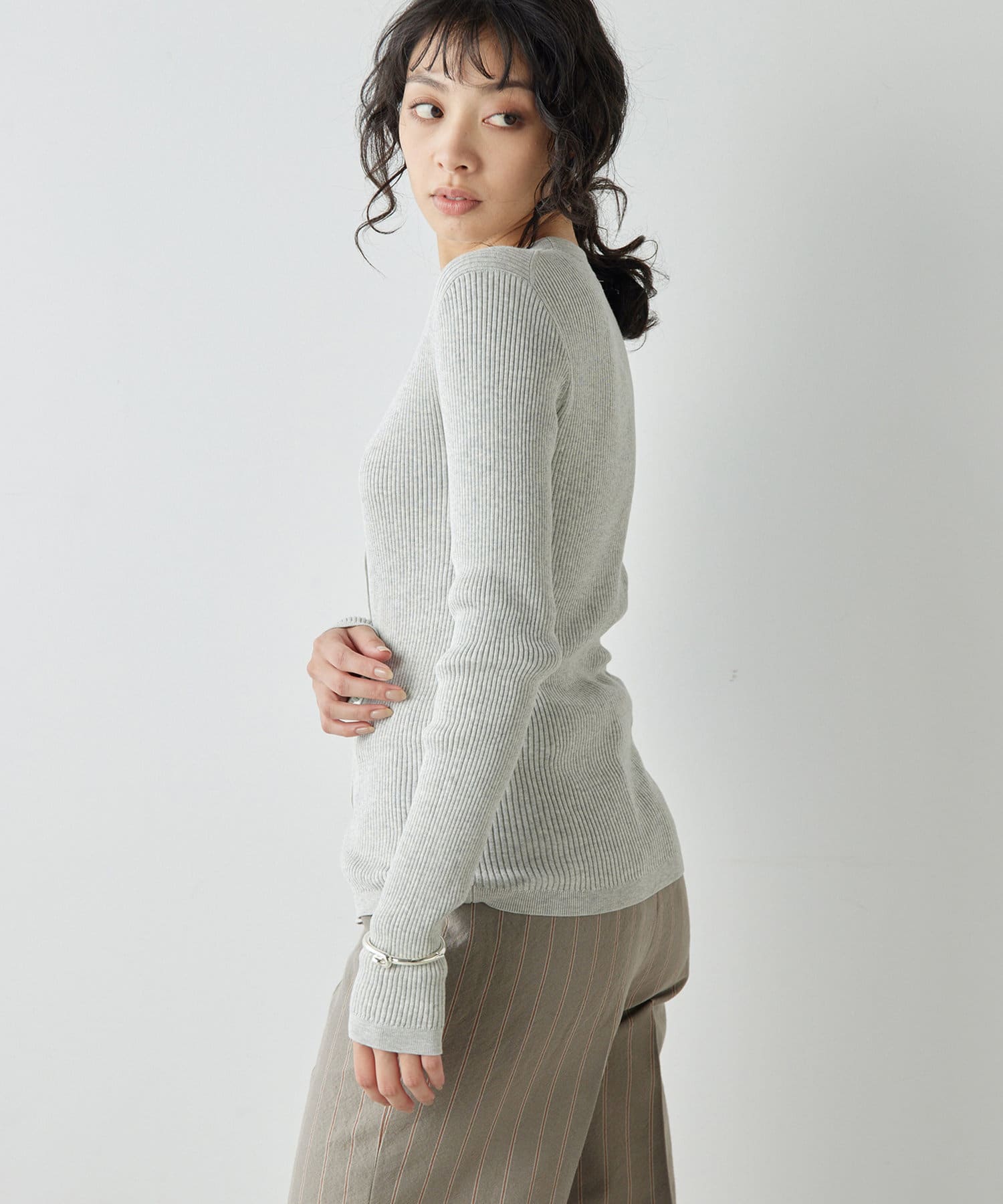 ■程よい肉感のリブ編みにして、身体のラインをスッキリ見えるタイトなラインに。