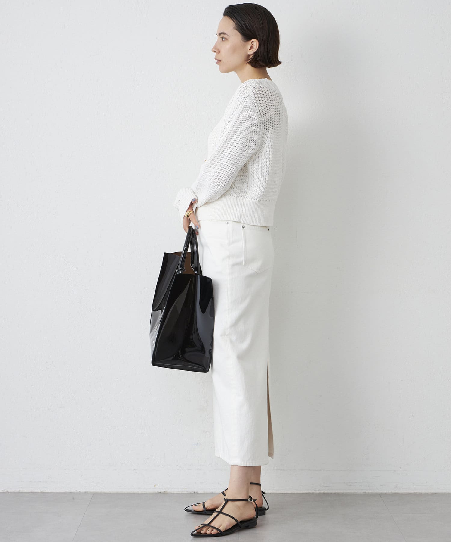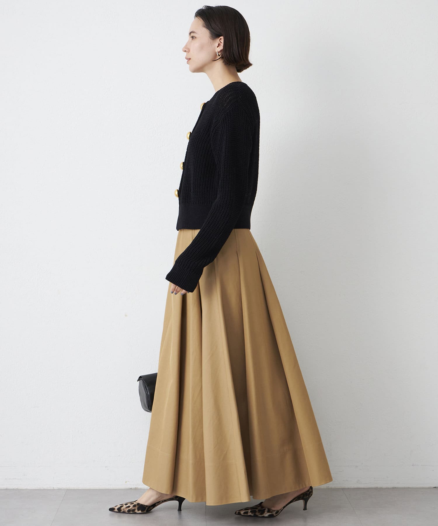 ■すっきりとしたシルエットでワイドボトムやボリュームスカートとも好相性。